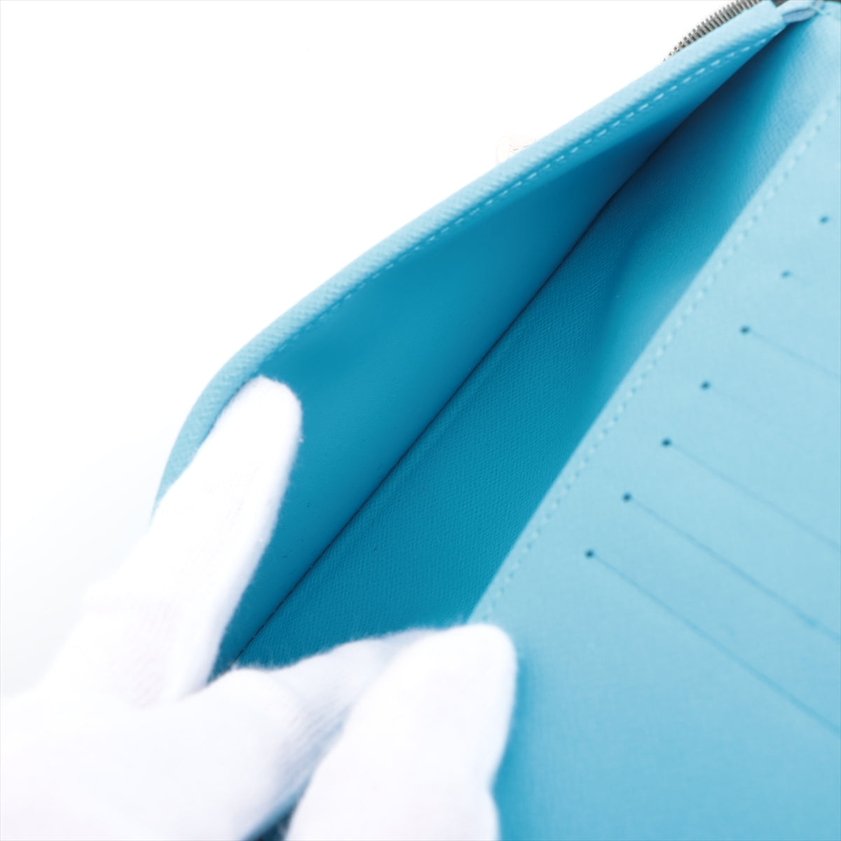 Inside, you’ll discover a thoughtfully organized interior with multiple card slots, a bill compartment, and a secure zippered coin pocket. This layout keeps your essentials neatly arranged and easily accessible. The wallet’s elegant silver zip-around closure not only adds a touch of sophistication but also ensures the safety of your valuables. Craftsmanship is evident in every detail, from the precise stitching to the high-quality leather lining.