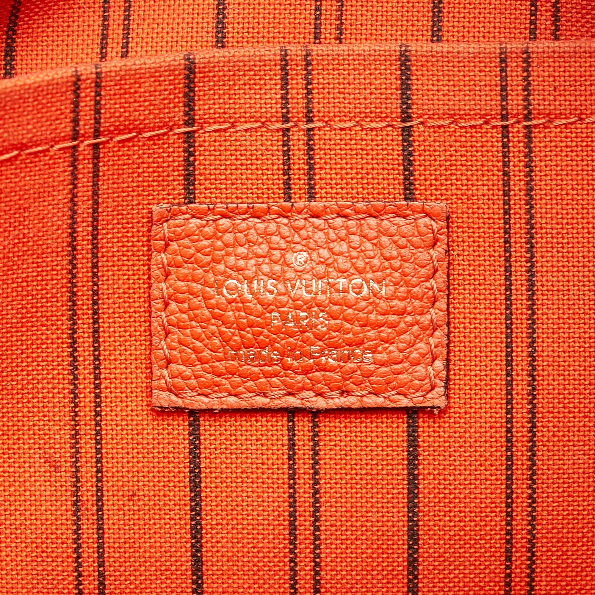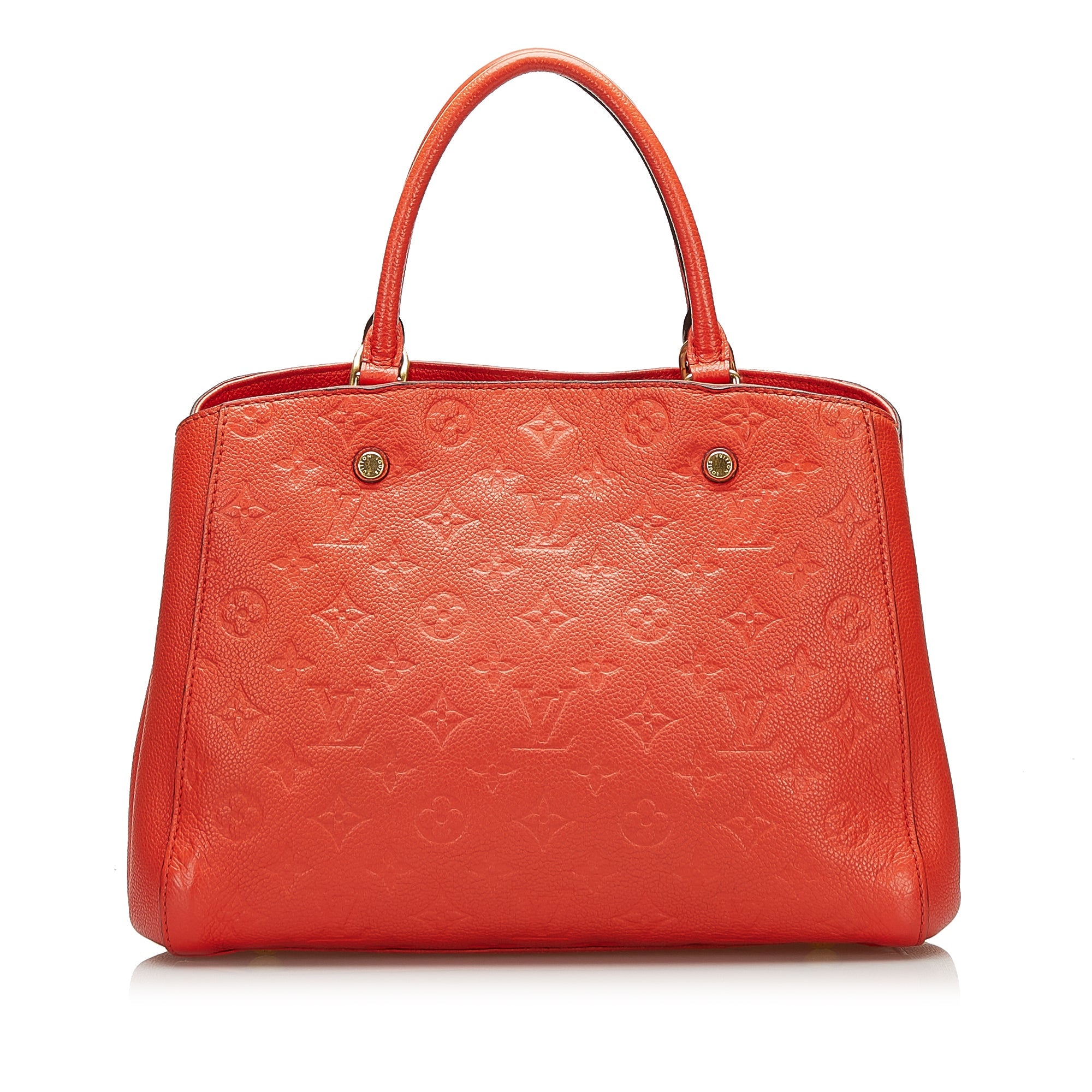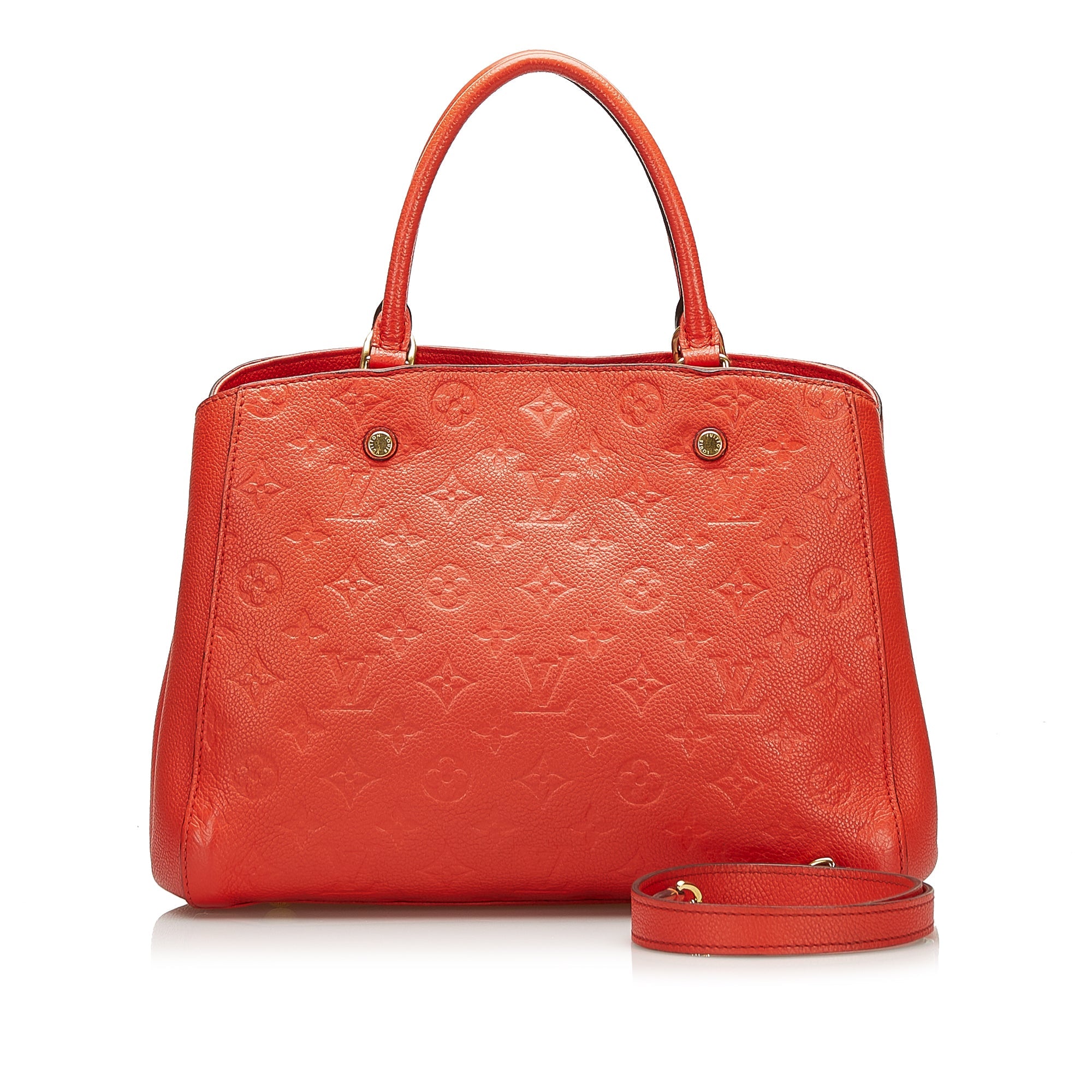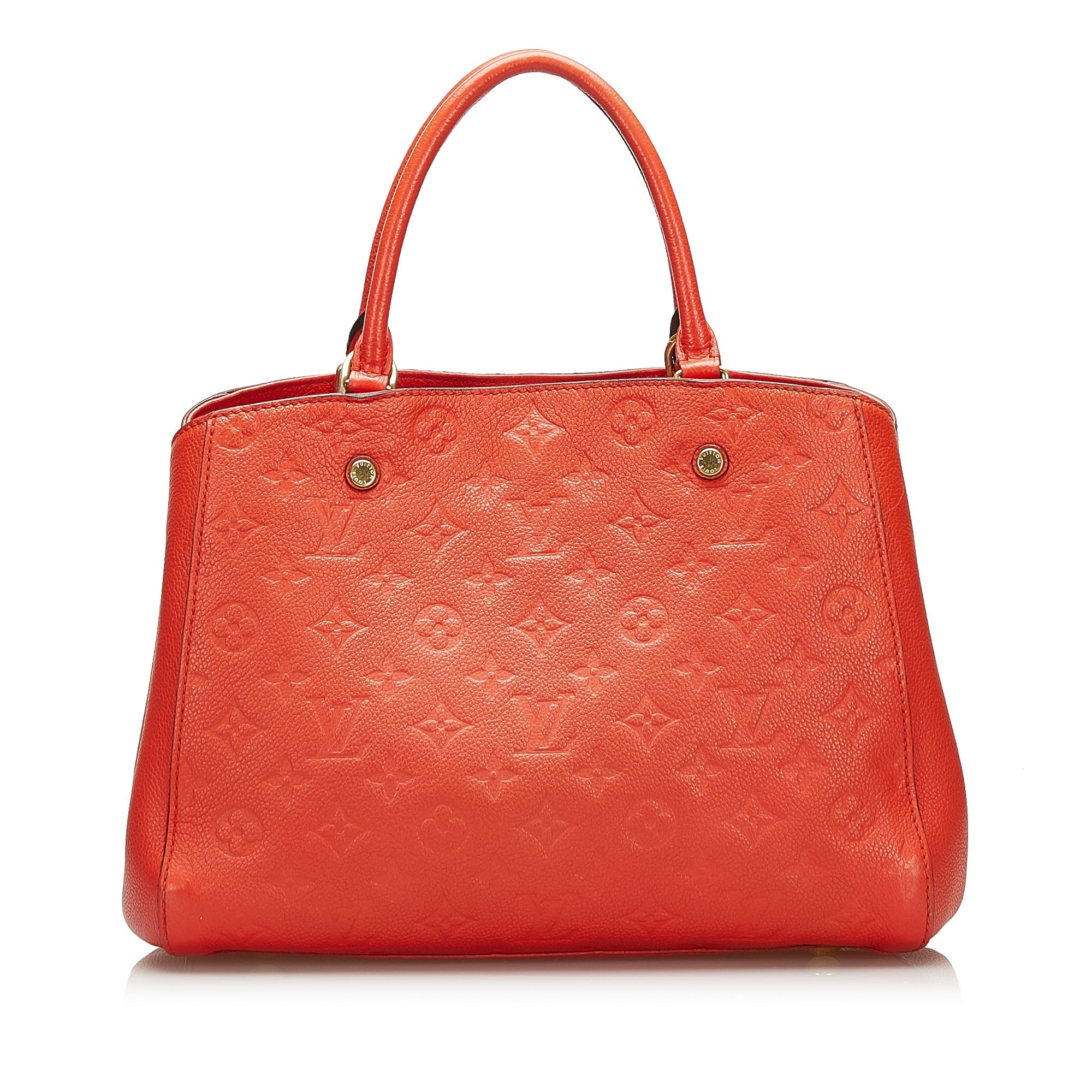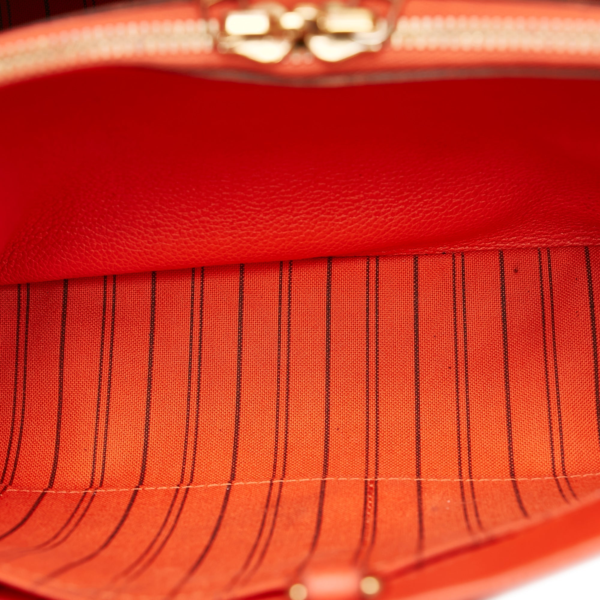 Die LV Montaigne Handtasche wurde nach einer prachtvollen Einkaufsstrasse in Paris benannt. Dieses Modell wurde aus luxuriösem Rindsleder in Orange gefertigt und wird mit goldener Hardware ergänzt. Leicht eingefallene Seiten und ein schmalere Oberseite verleihen der Tasche eine souveräne Eleganz. Das Innenleben ist mit gestreiftem Textilfutter ausgekleidet und präsentiert sich äusserst vielfältig. Es verfügt über ein mittleres Reissverschlussfach, ein grösseres offenes Fach und 2 kleinere offene Fächer. Die Tasche ist mit zwei Griffen an der Oberseite sowie einem abnehmbaren Schulterriemen versehen, wodurch sie unterschiedliche Tragemöglichkeiten bietet und perfekt für den Alltag geeignet ist.