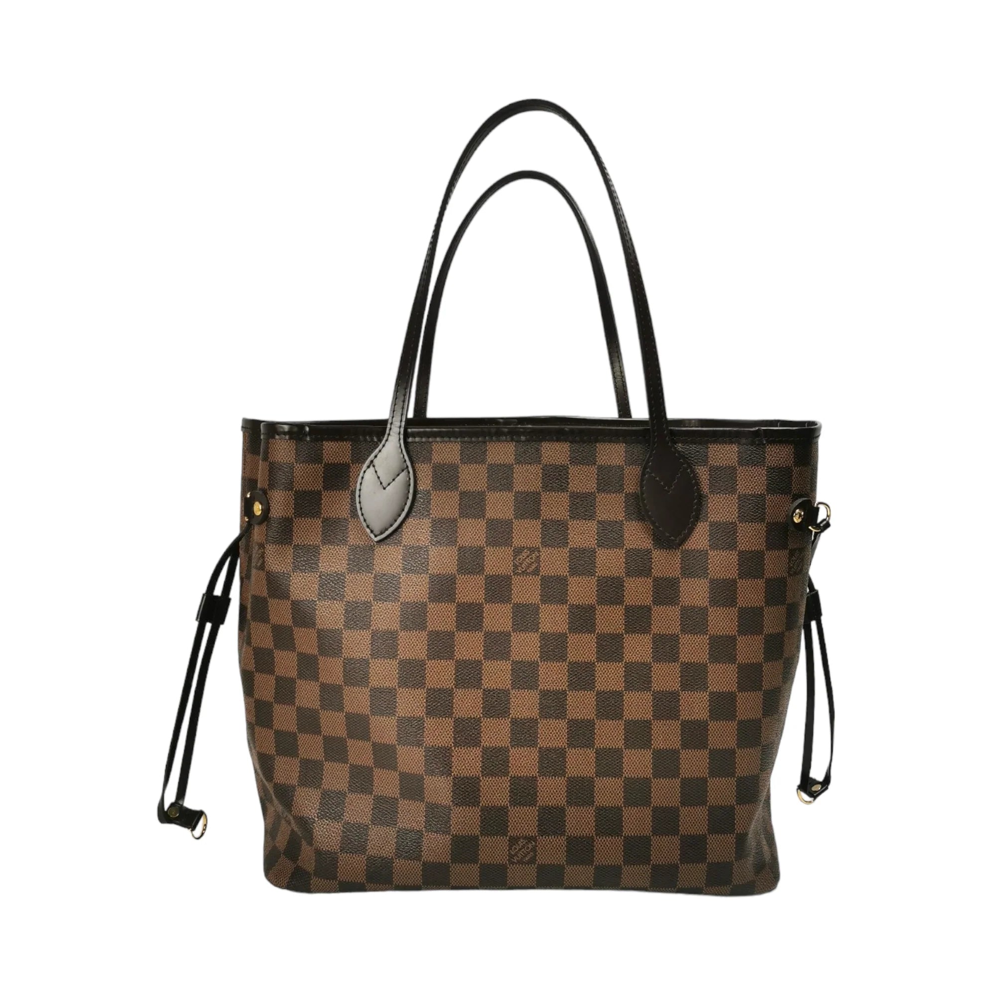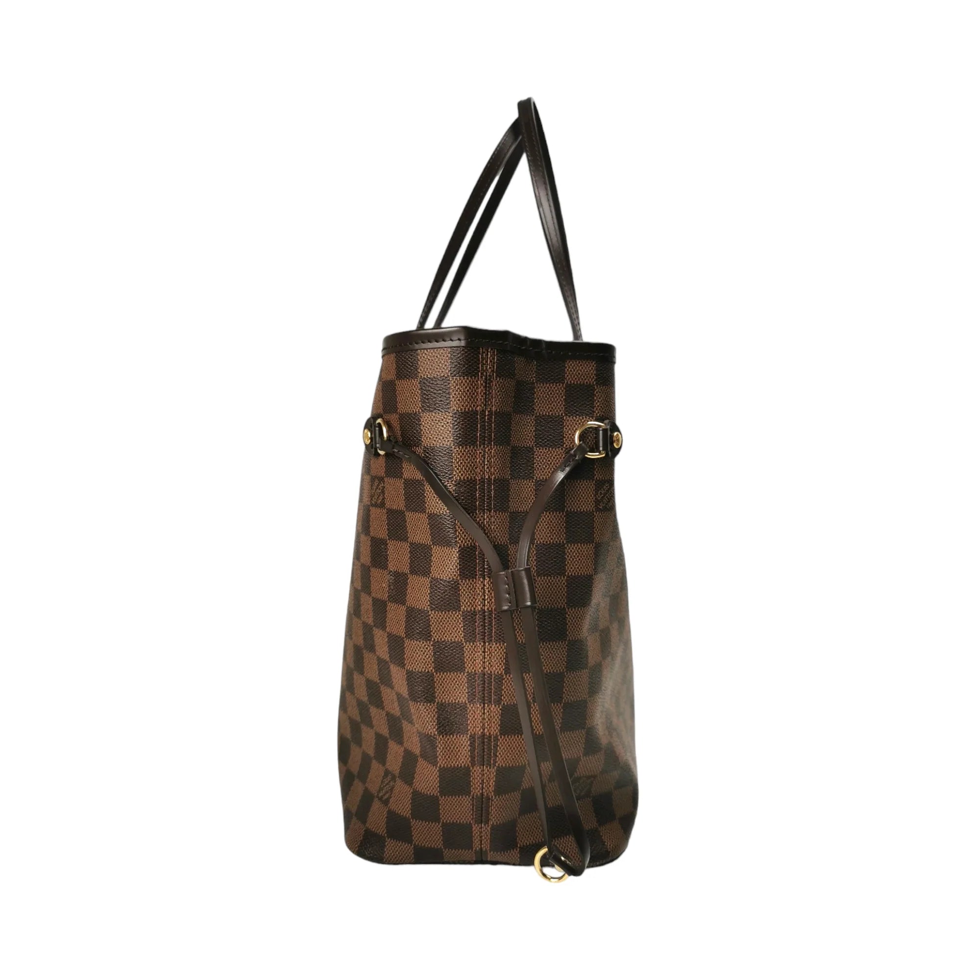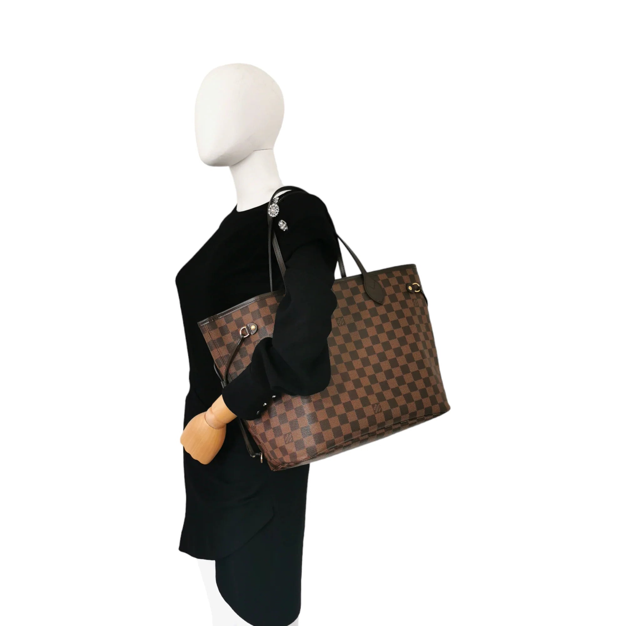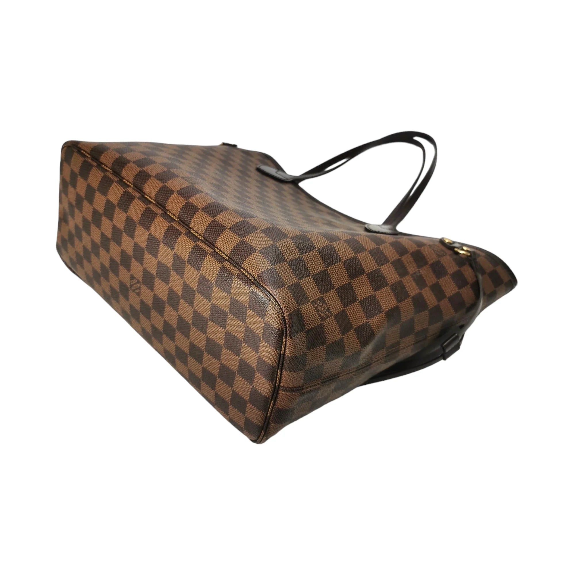 This super beautiful LV Neverfull MM tote bag is made of the famous Damier Ebene Canvas. The main access has a gold-tone buckle closure. Inside this spacious Bag is a zippered compartment embedded in the pink striped lining. With the double straps, the Bag comfortably worn over the shoulder. Probably one of the most popular bags ever, not without reason.