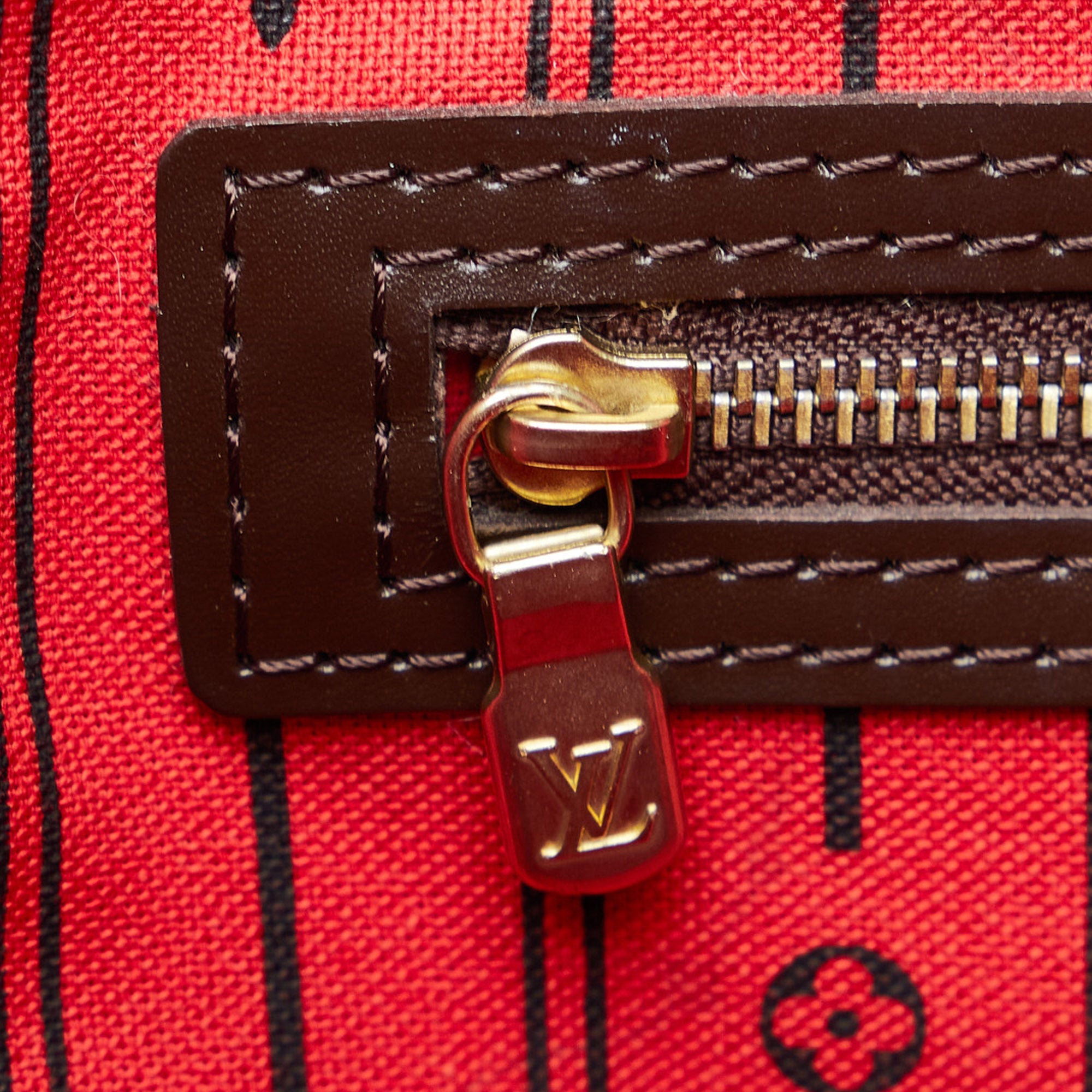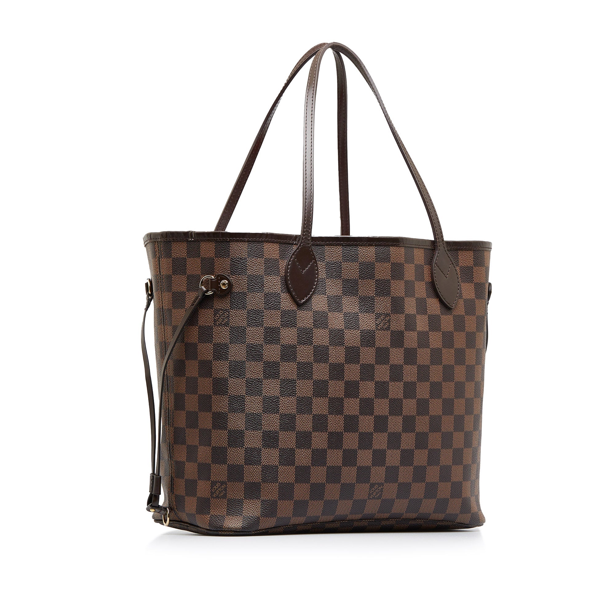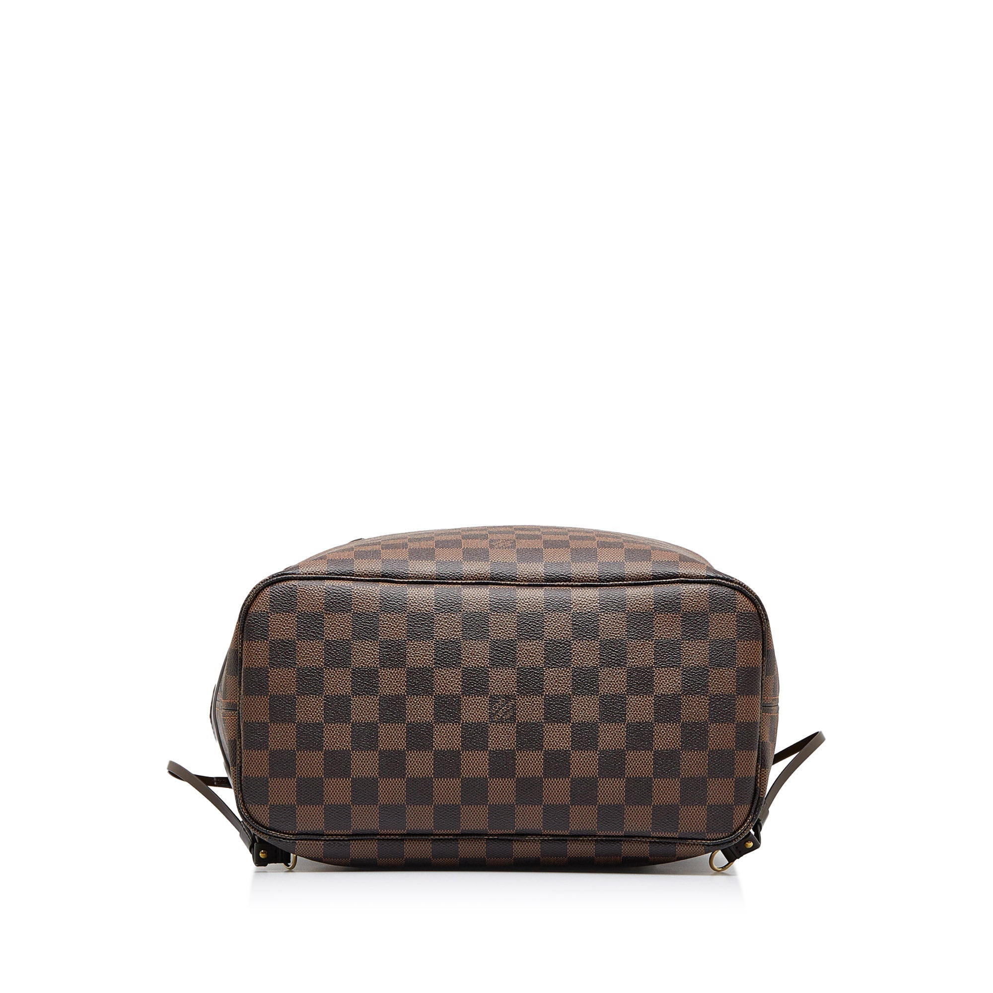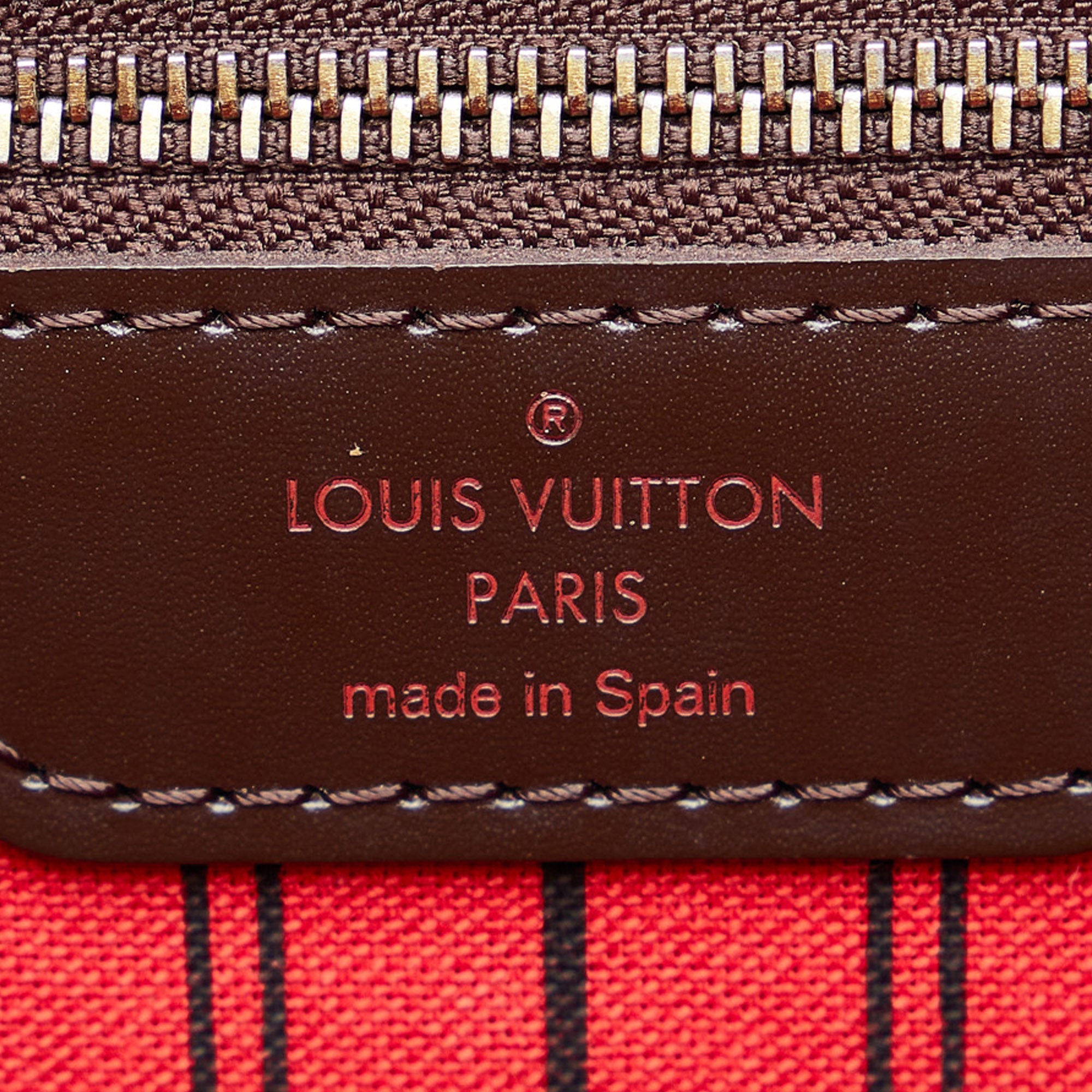 This super beautiful LV Neverfull MM tote bag is made of the famous Damier Ebene Canvas. The main access has a gold-tone buckle closure. Inside this spacious Bag is a zippered compartment embedded in the light brown striped lining. With the double straps, the Bag comfortably worn over the shoulder. Probably one of the most popular bags ever, not without reason.