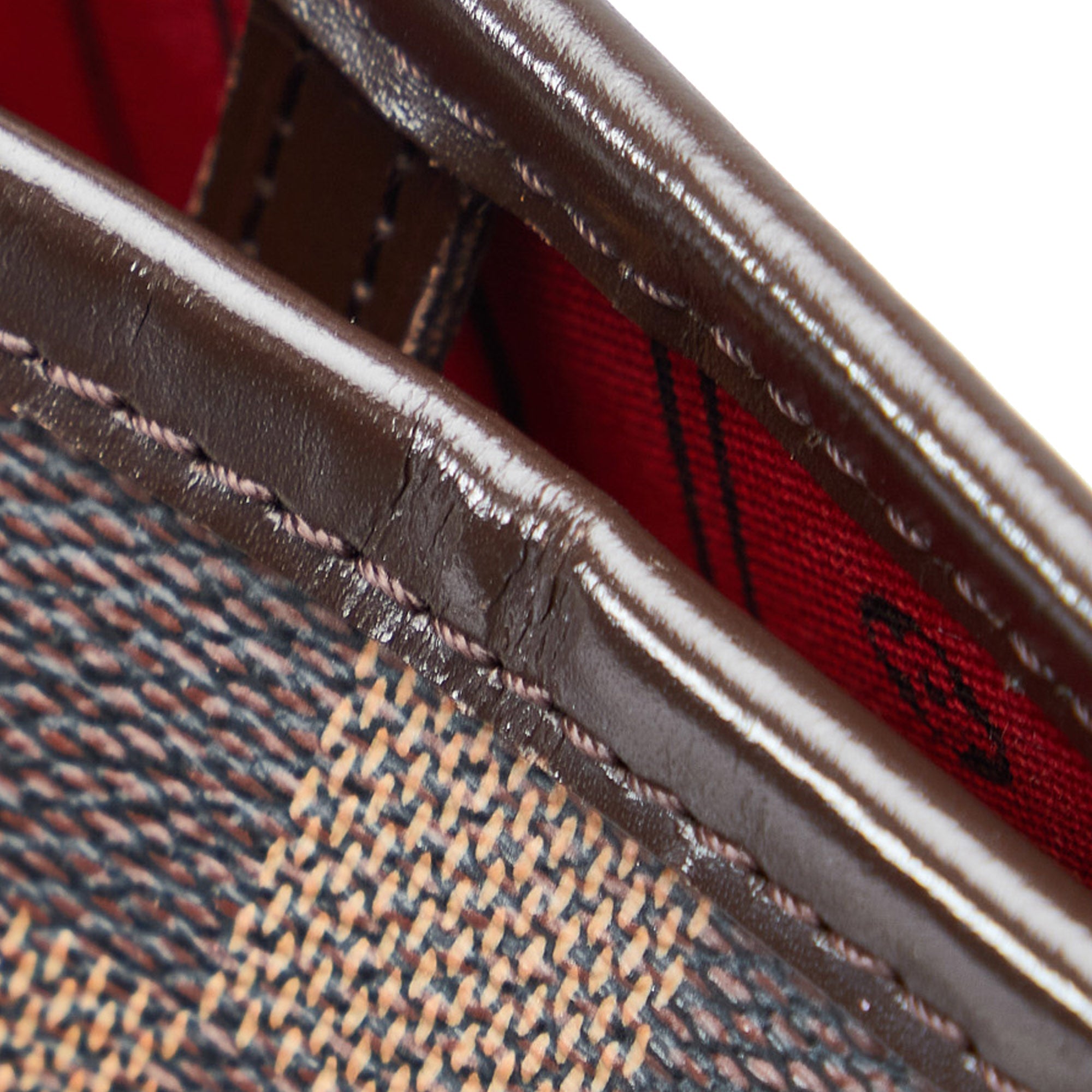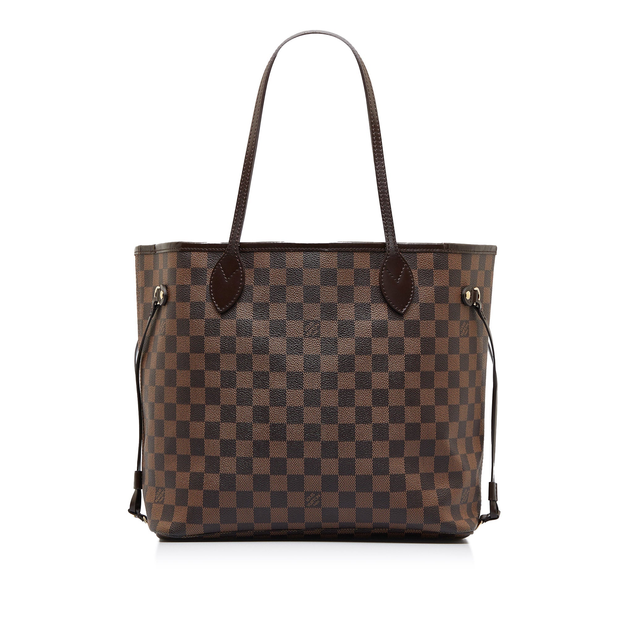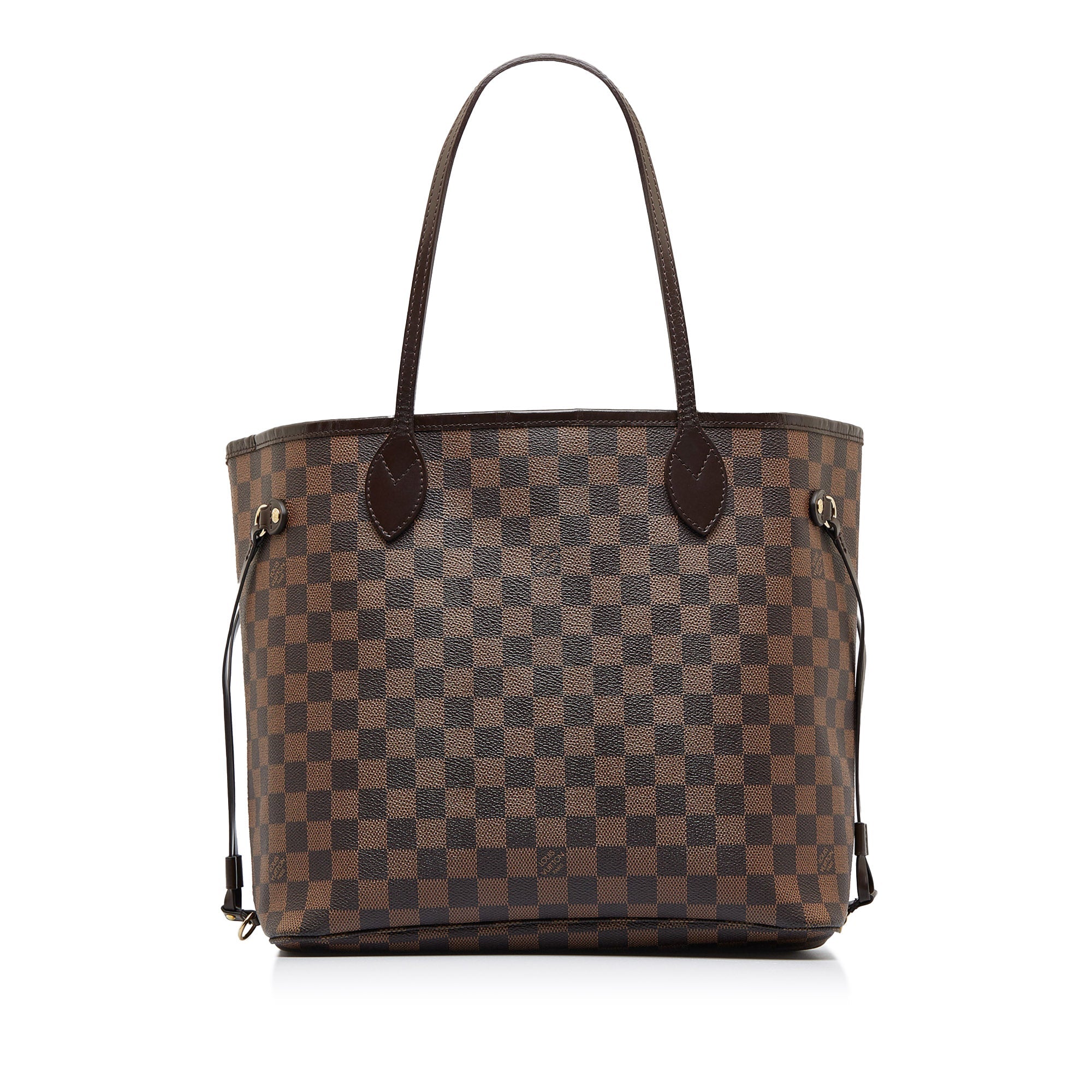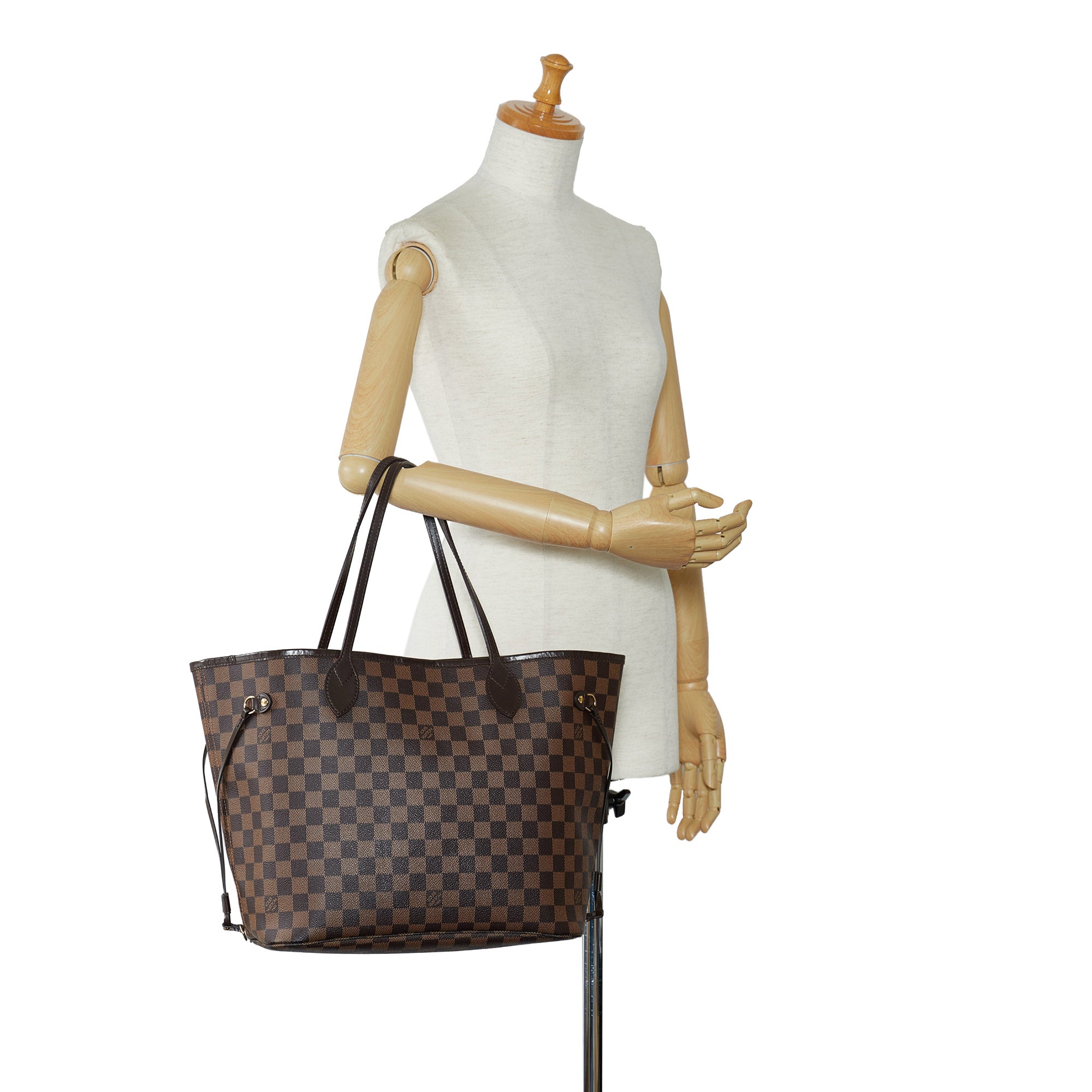 This super beautiful LV Neverfull MM tote bag is made of the famous Damier Ebene Canvas. The main access has a gold-tone buckle closure. Inside this spacious Bag is a zippered compartment embedded in the light brown striped lining. With the double straps, the Bag comfortably worn over the shoulder. Probably one of the most popular bags ever, not without reason.
