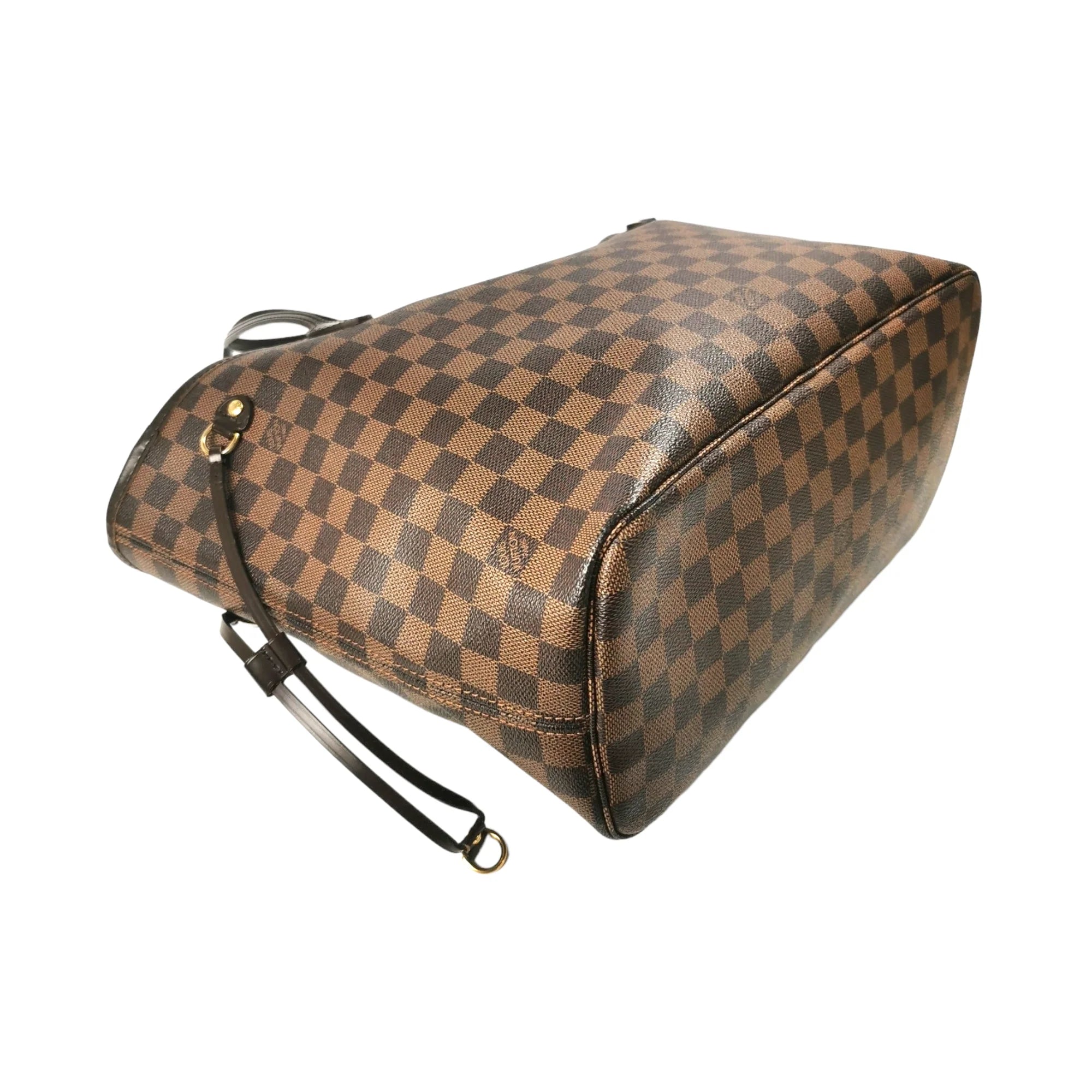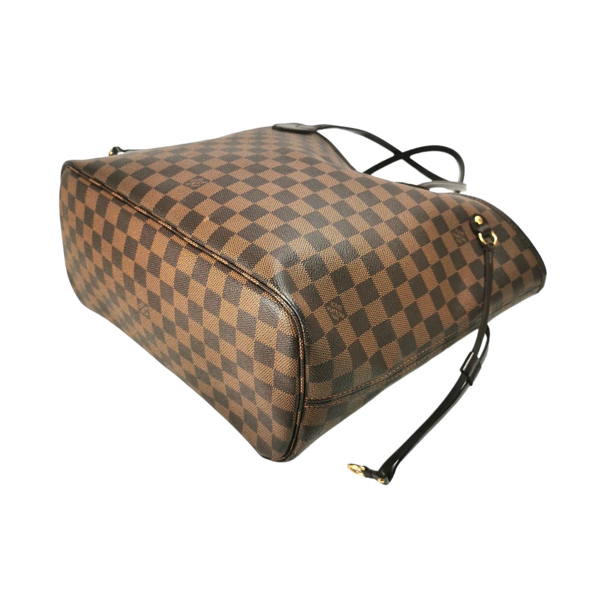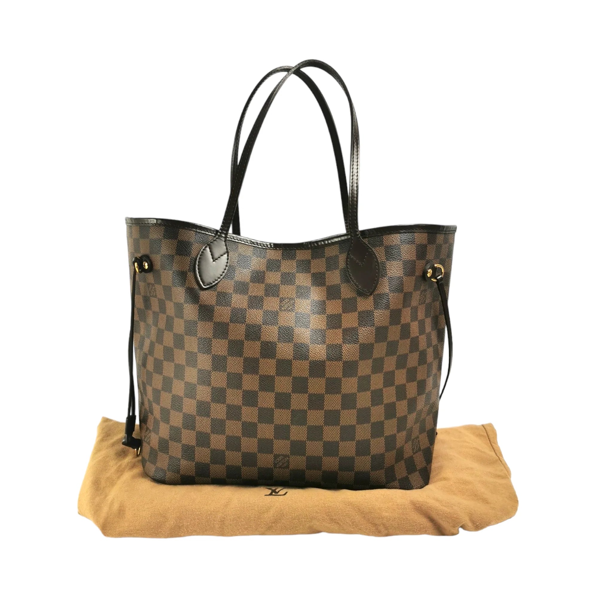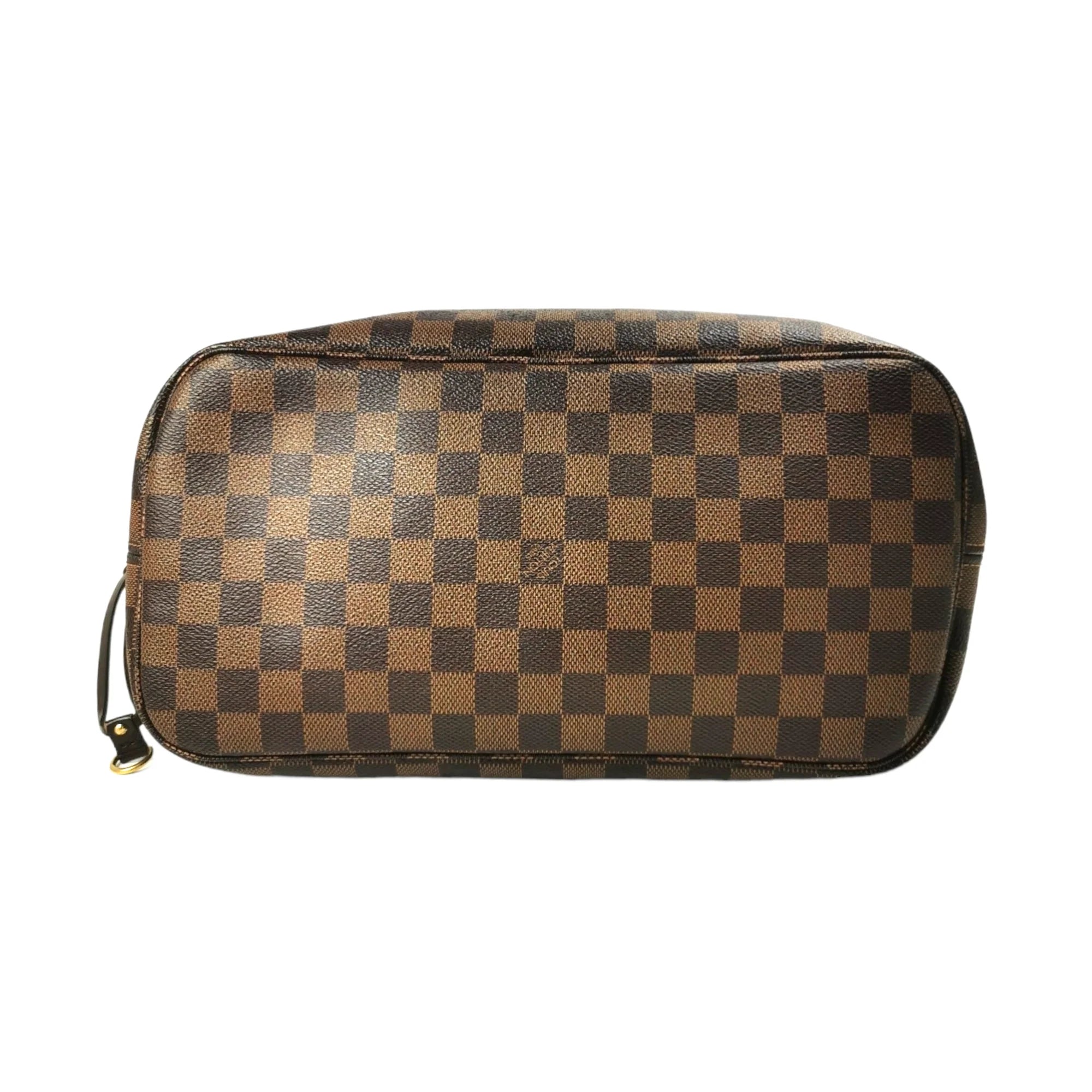This super beautiful LV Neverfull MM tote bag is made of the famous Damier Ebene Canvas. The main access has a gold-tone buckle closure. Inside this spacious Bag is a zippered compartment embedded in the light brown striped lining. With the double straps, the Bag comfortably worn over the shoulder. Probably one of the most popular bags ever, not without reason.