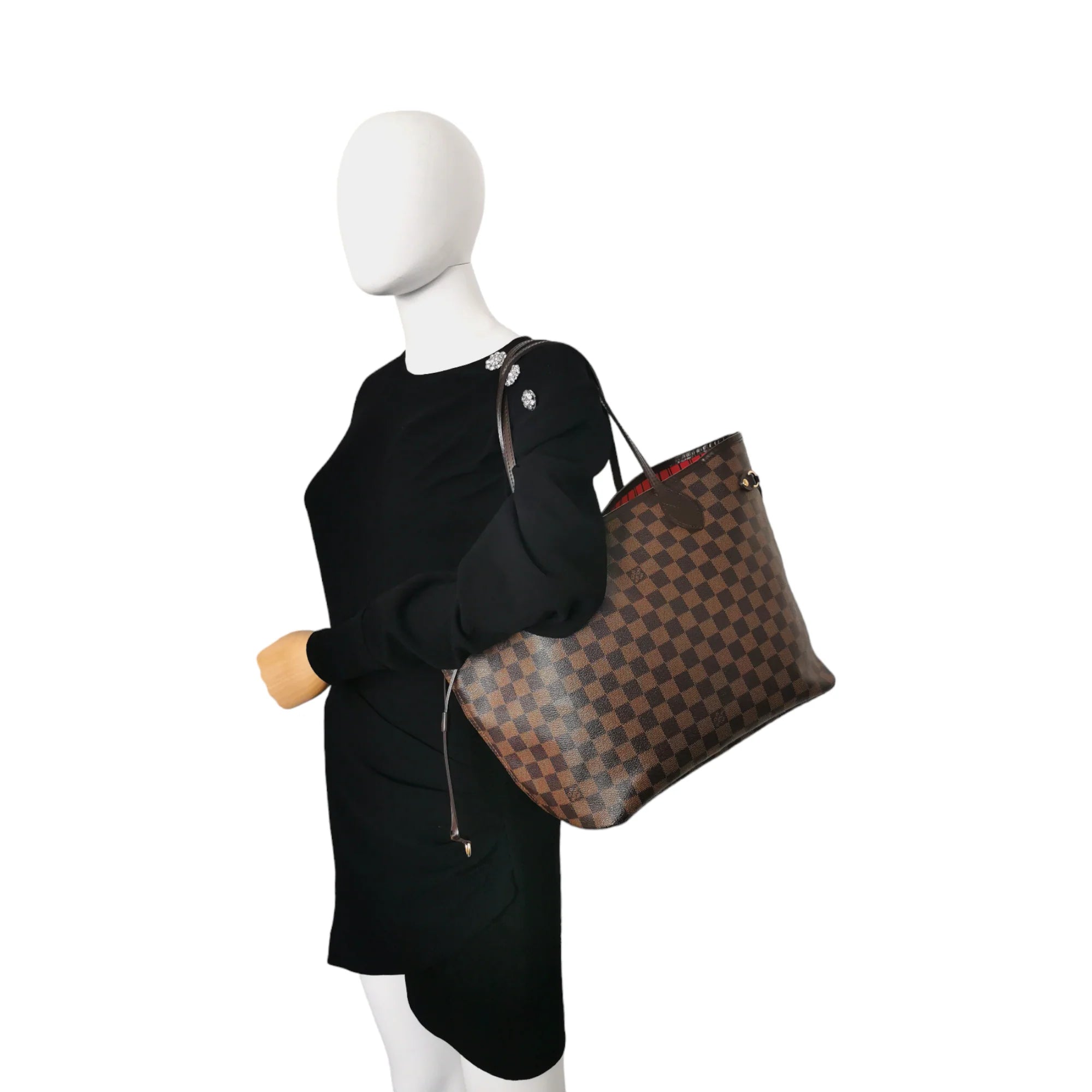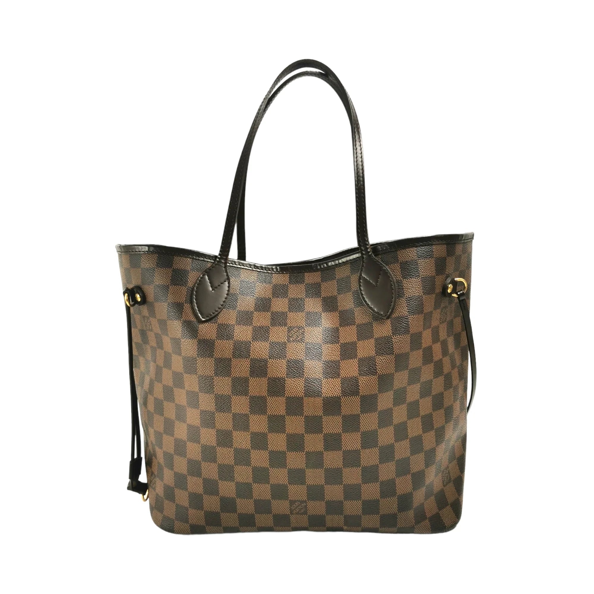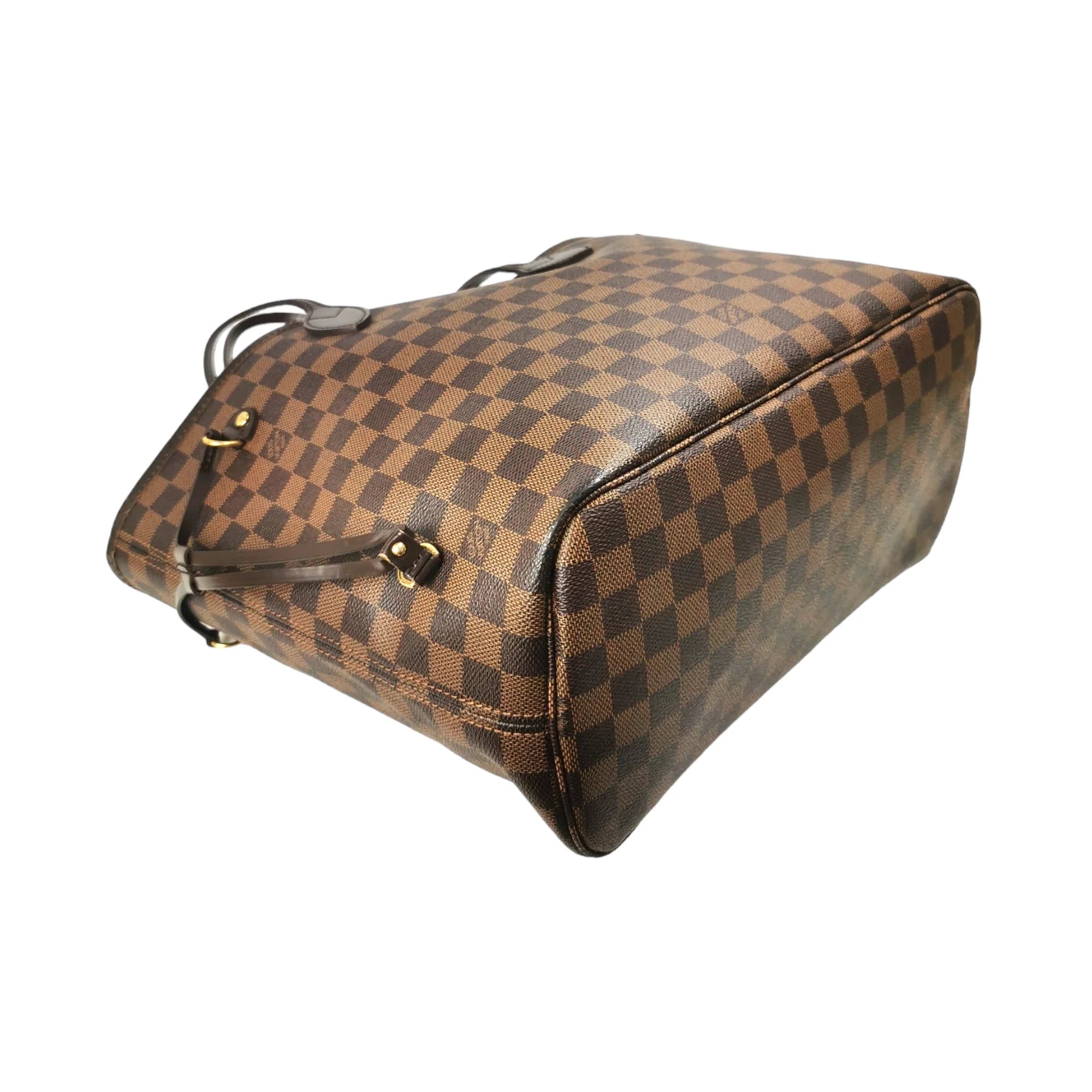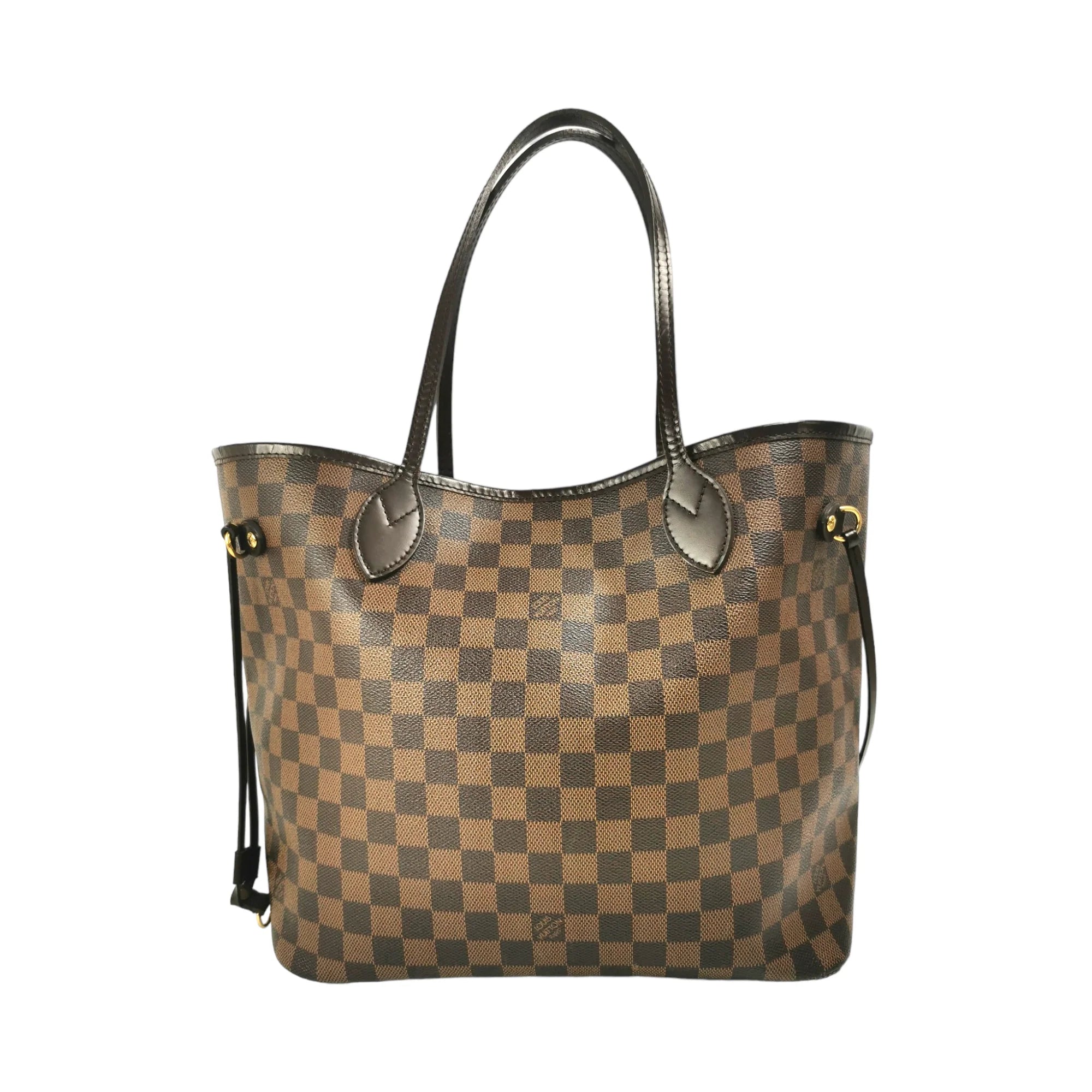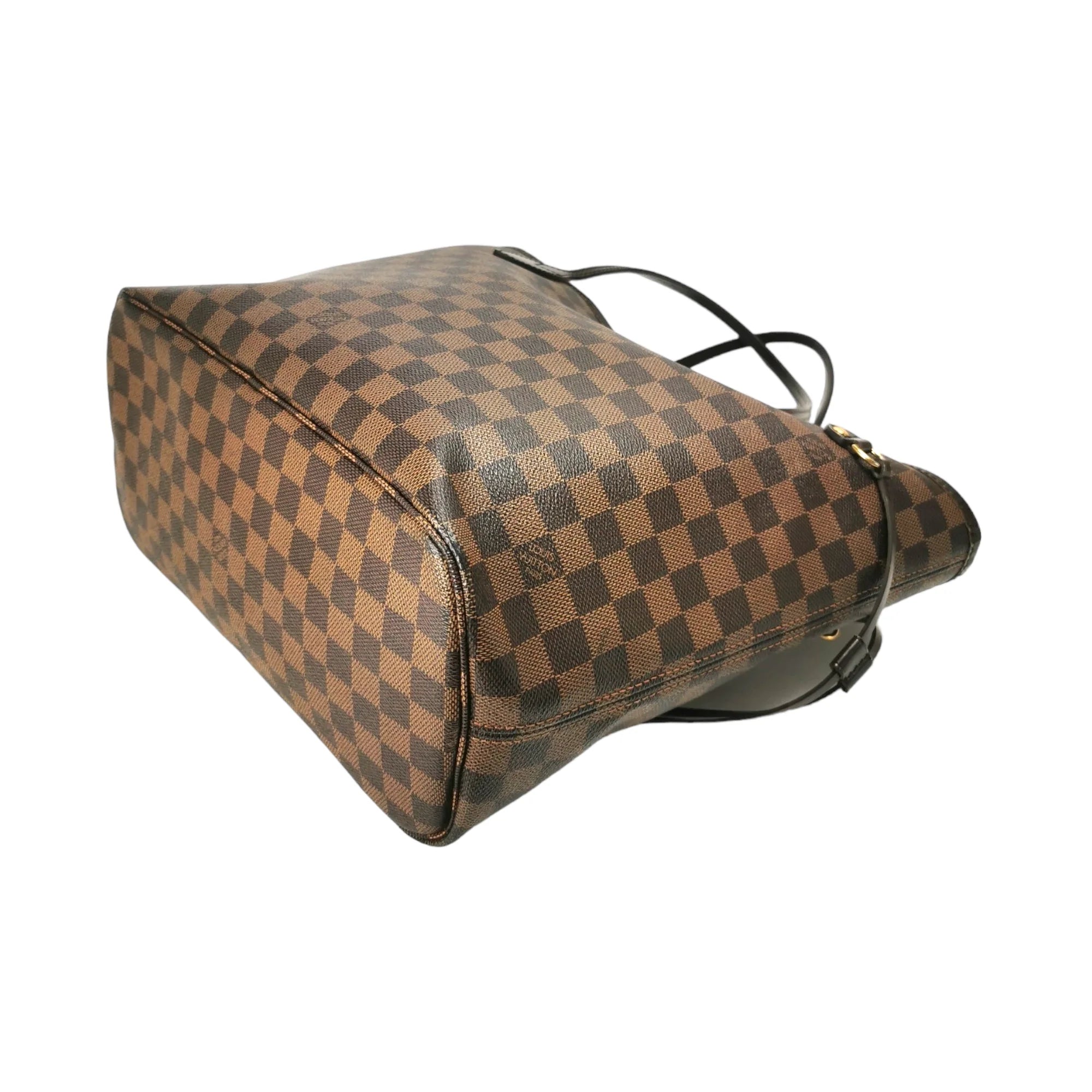 This super beautiful LV Neverfull MM tote bag is made of the famous Damier Ebene Canvas. The main access has a gold-tone buckle closure. Inside this spacious Bag is a zippered compartment embedded in the light brown striped lining. With the double straps, the Bag comfortably worn over the shoulder. Probably one of the most popular bags ever, not without reason.