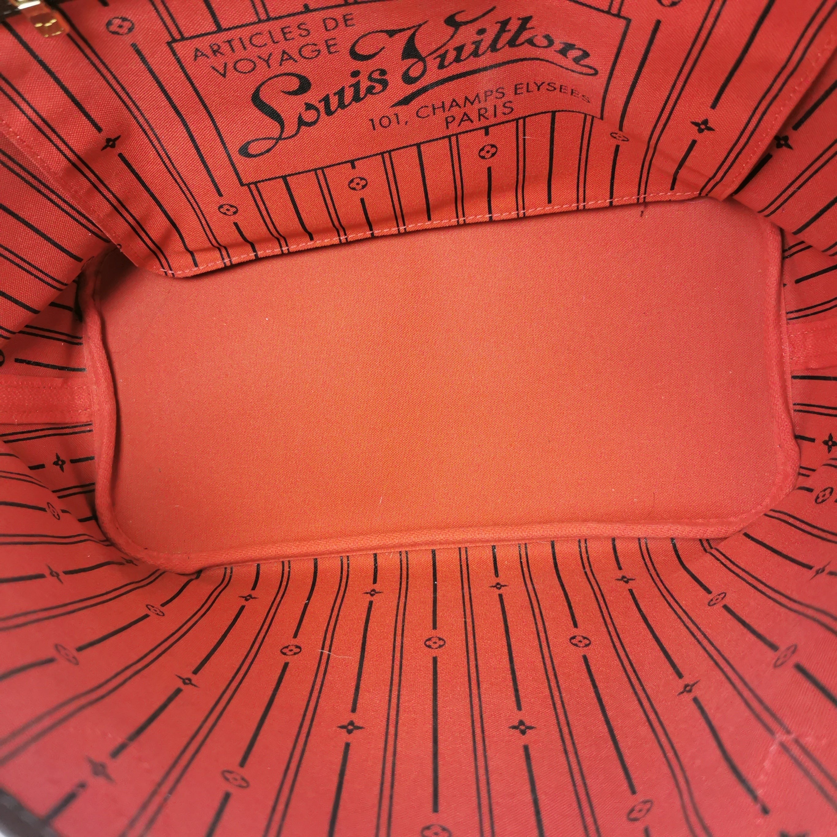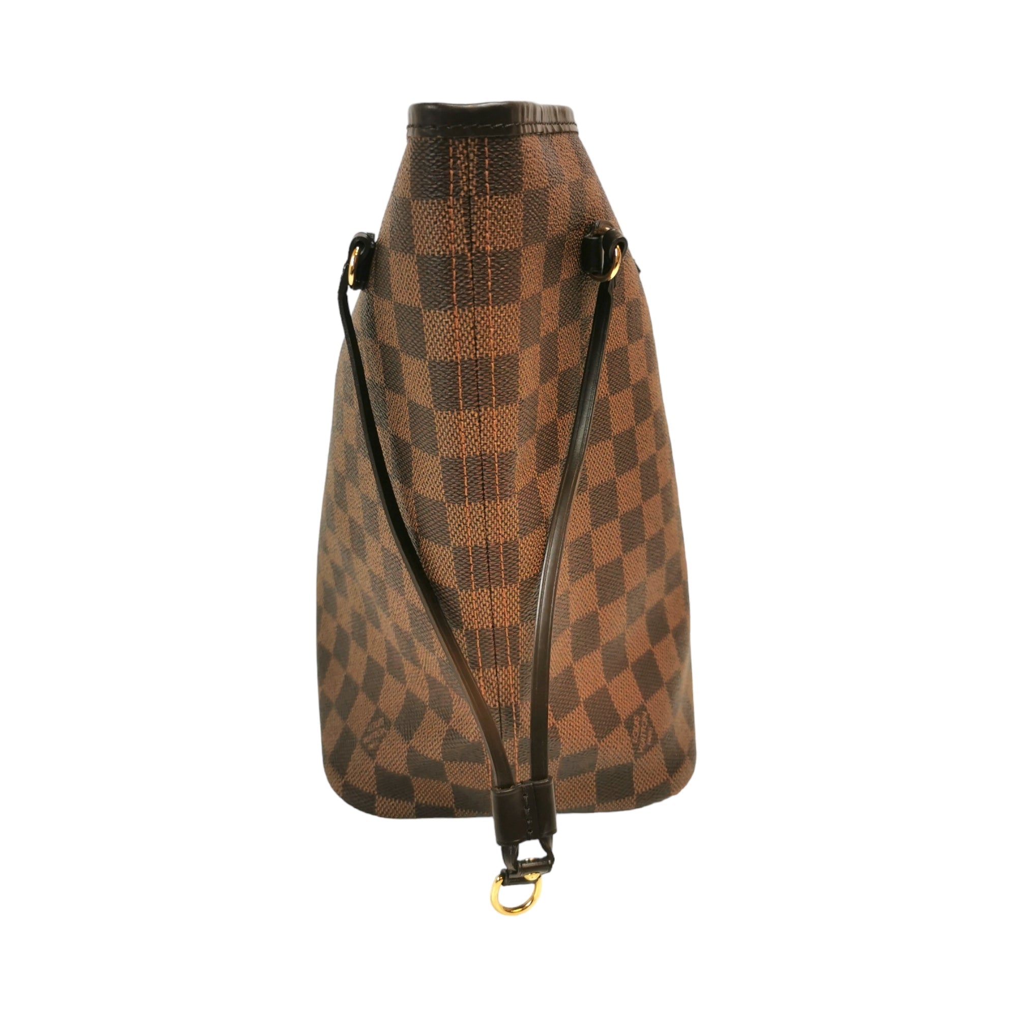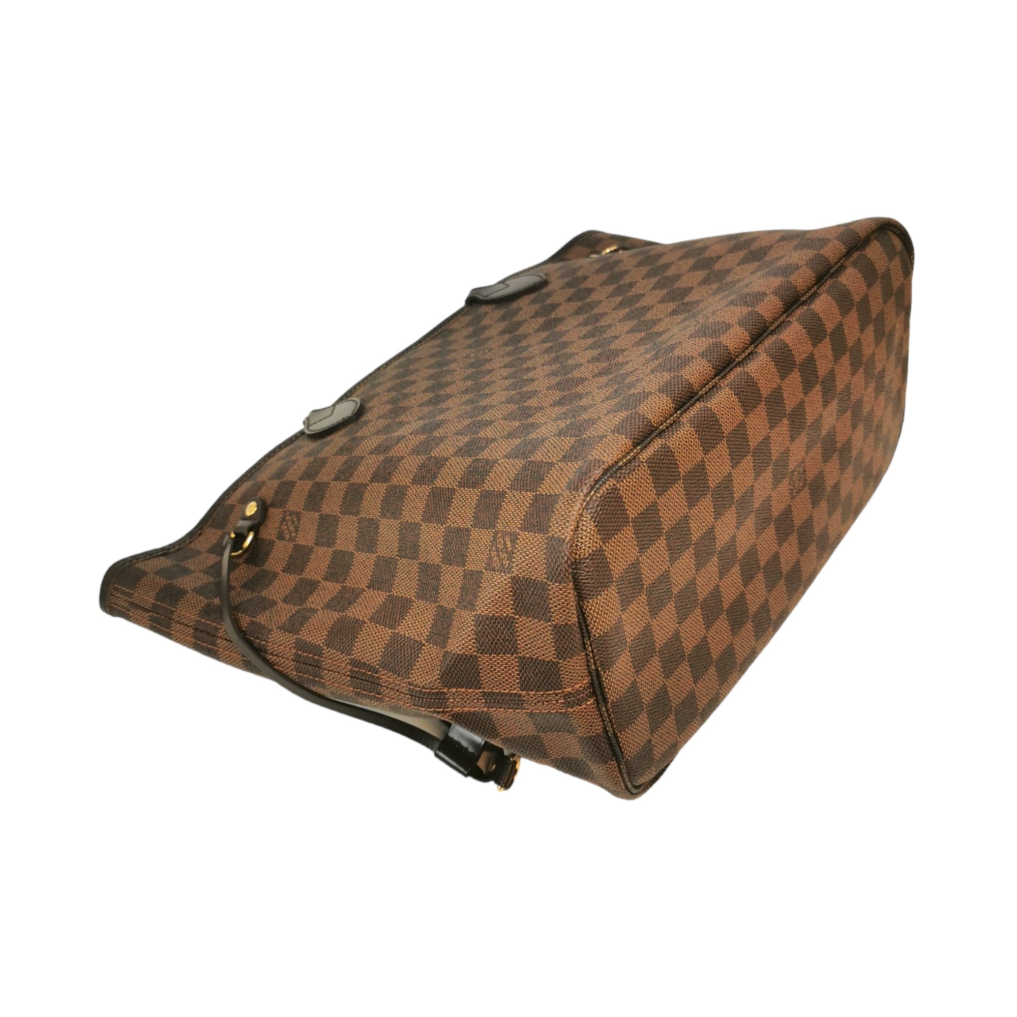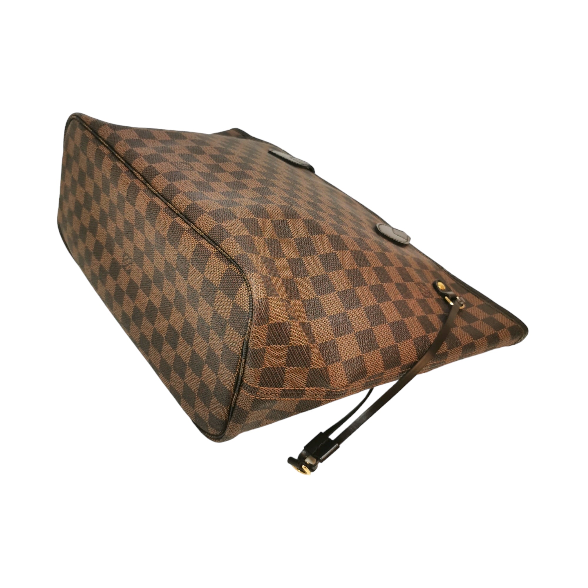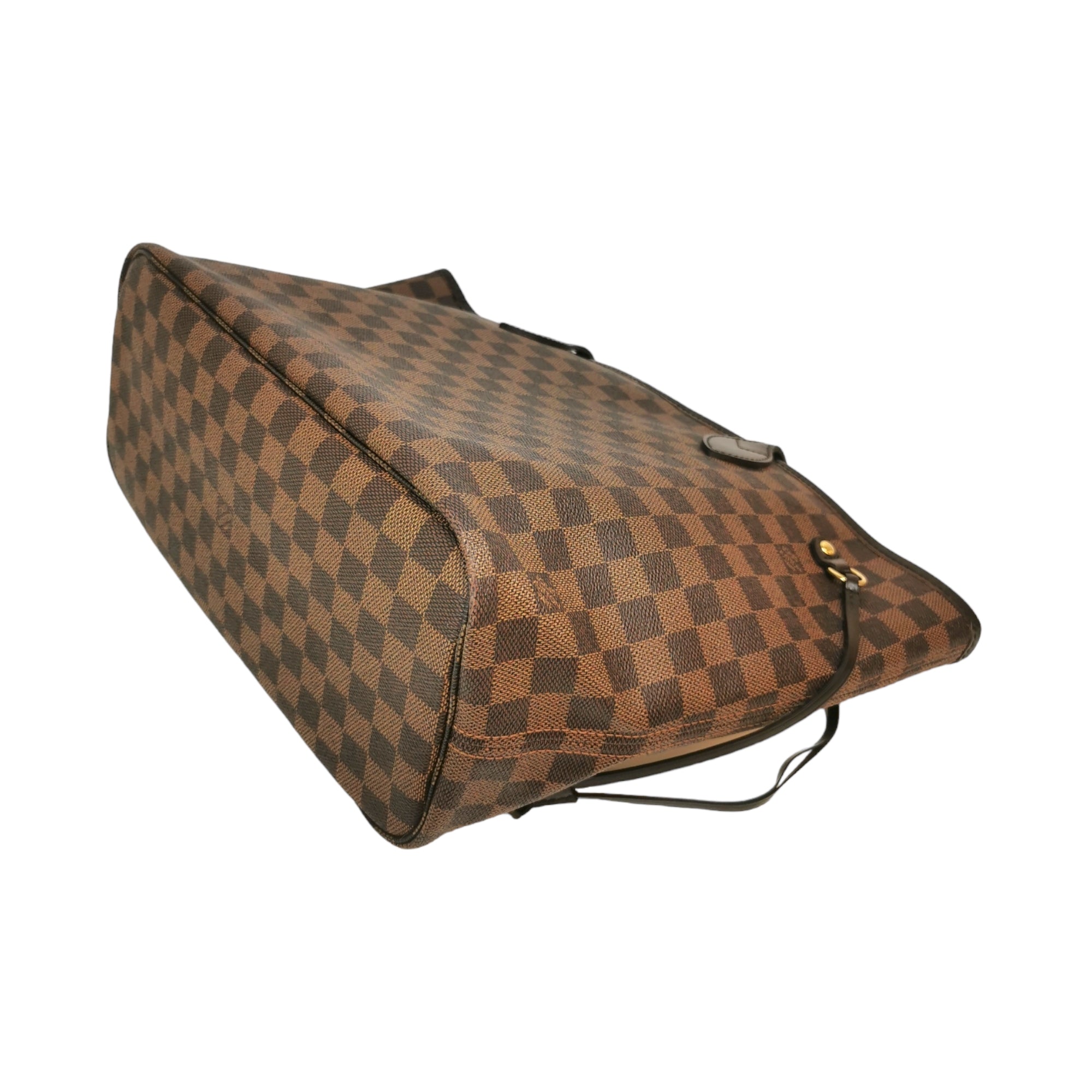 This super beautiful LV Neverfull MM tote bag is made of the famous Damier Ebene Canvas. The main access has a gold-tone buckle closure. Inside this spacious Bag is a zippered compartment embedded in the light brown striped lining. With the double straps, the Bag comfortably worn over the shoulder. Probably one of the most popular bags ever, not without reason.
