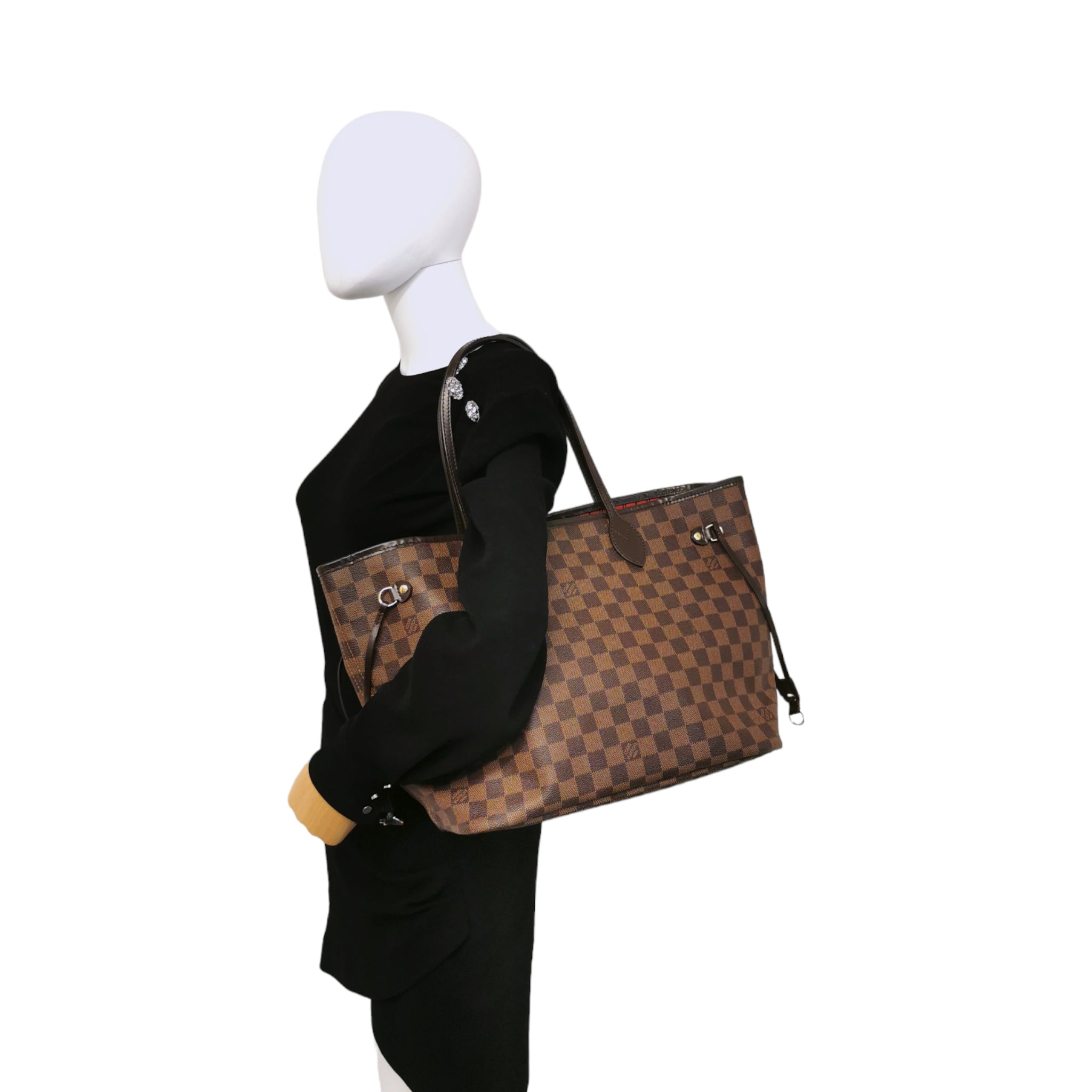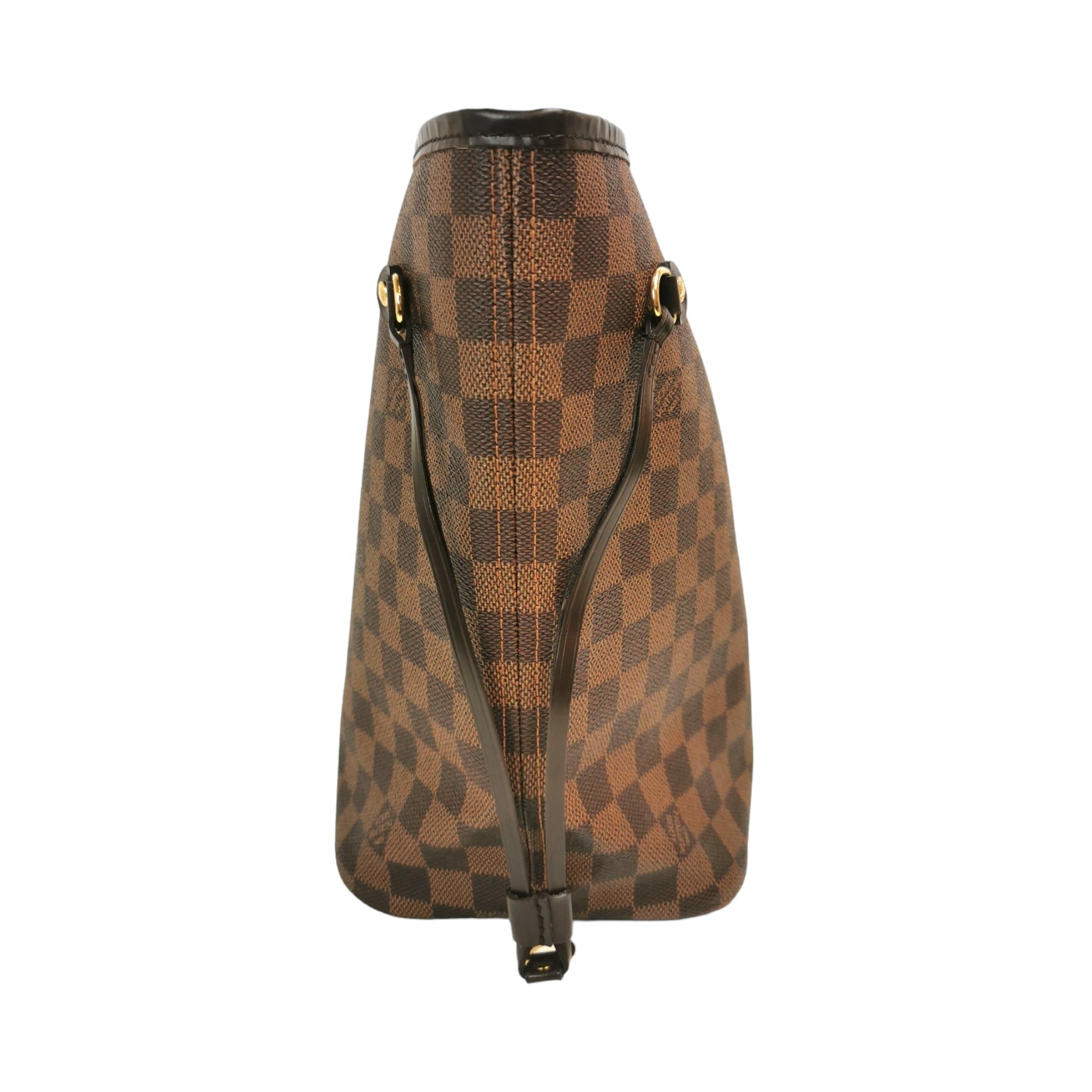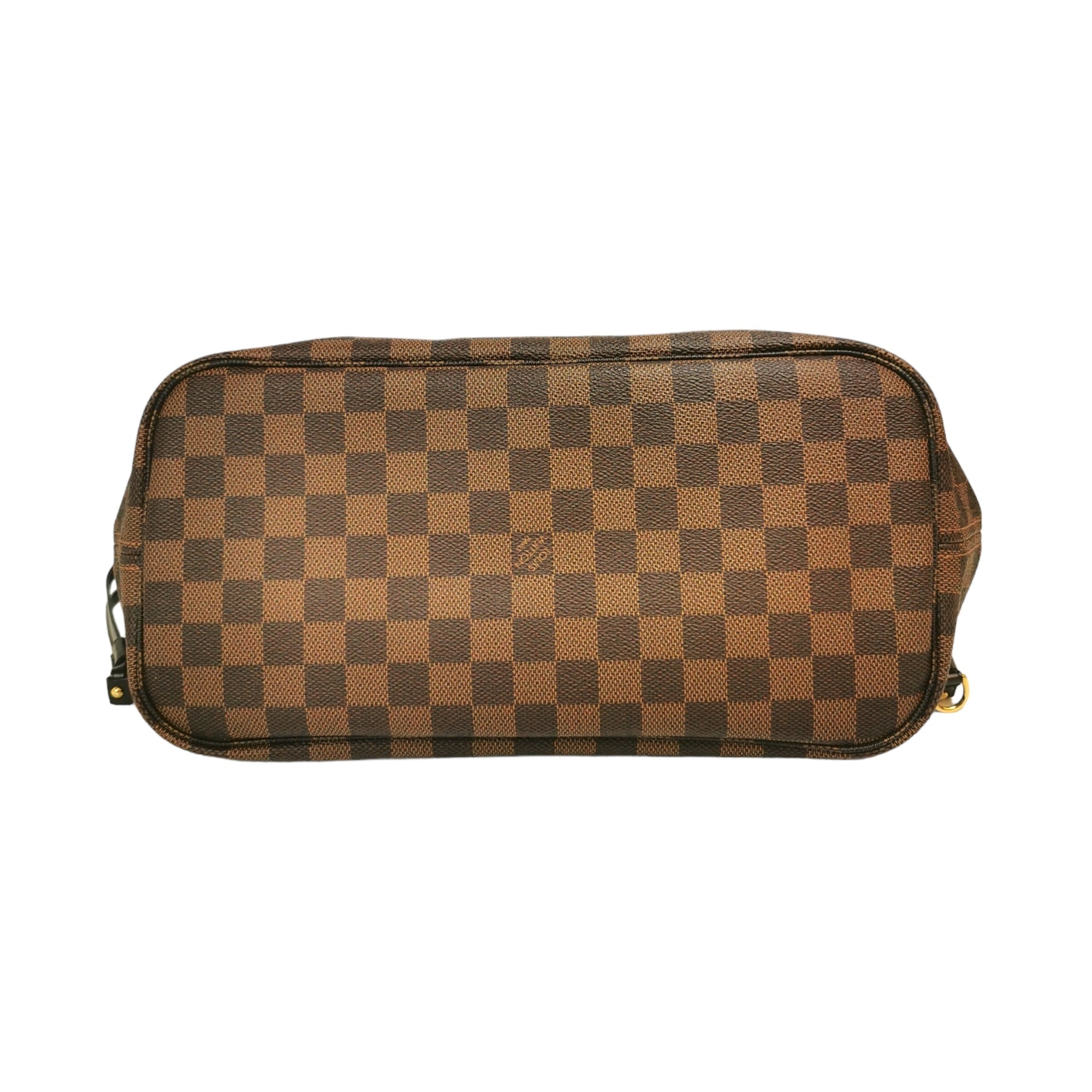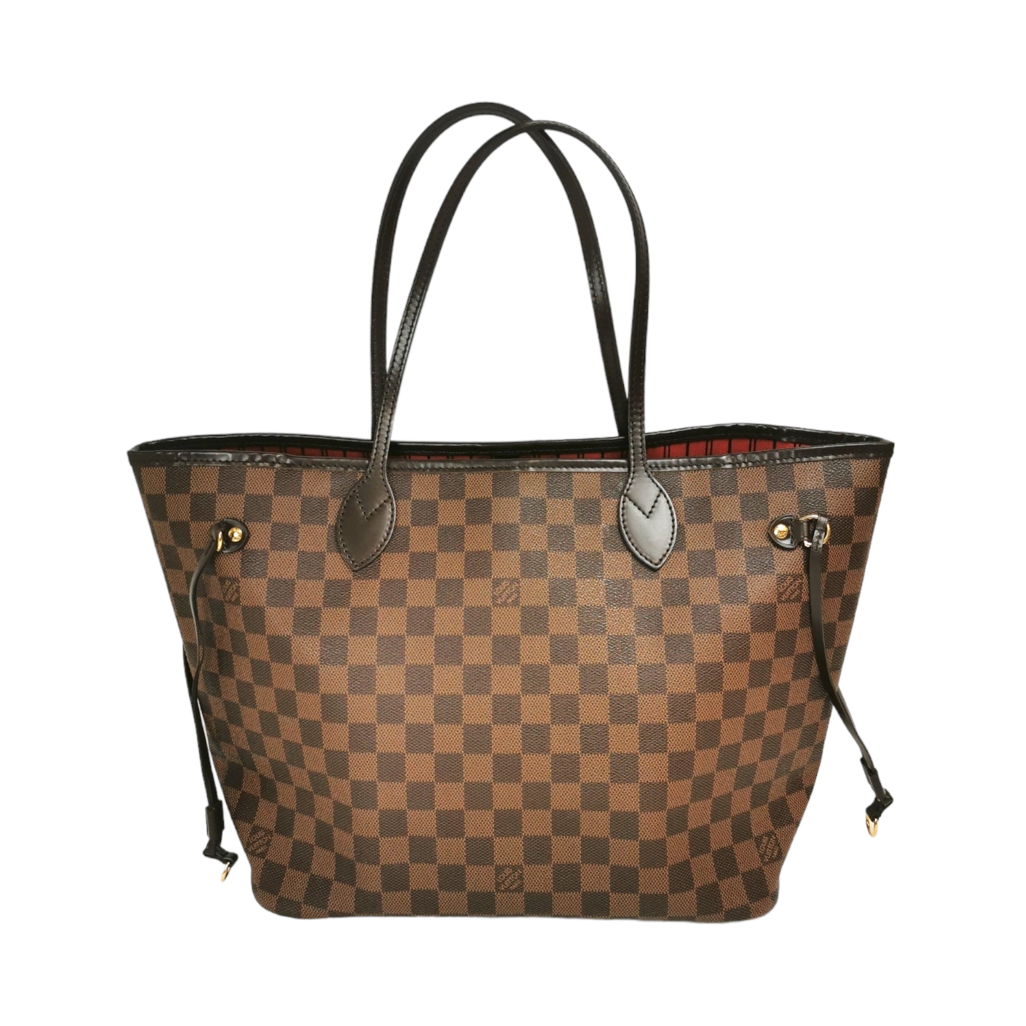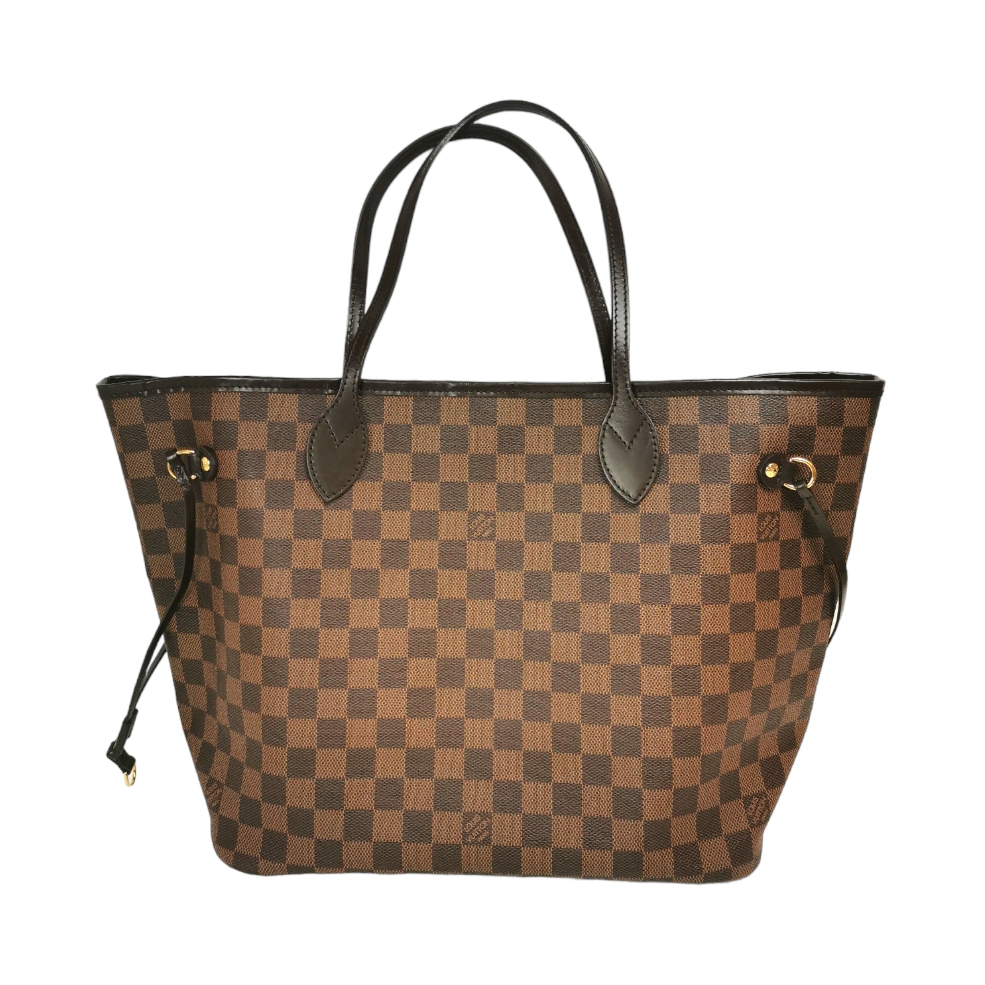 This super beautiful LV Neverfull MM tote bag is made of the famous Damier Ebene Canvas. The main access has a gold-tone buckle closure. Inside this spacious Bag is a zippered compartment embedded in the light brown striped lining. With the double straps, the Bag comfortably worn over the shoulder. Probably one of the most popular bags ever, not without reason.