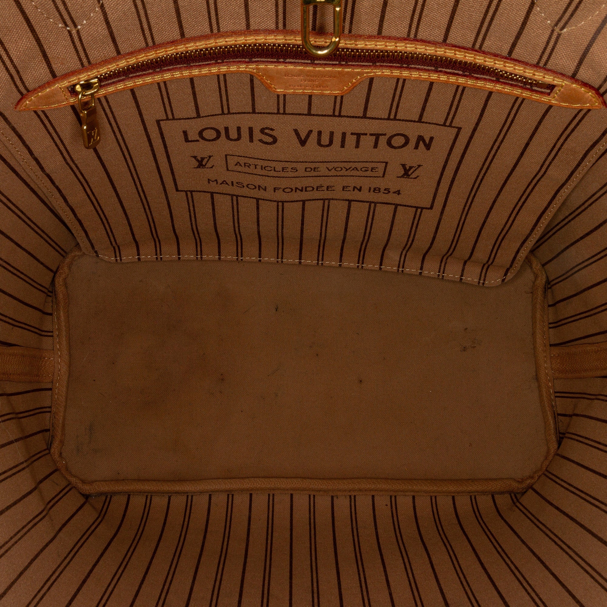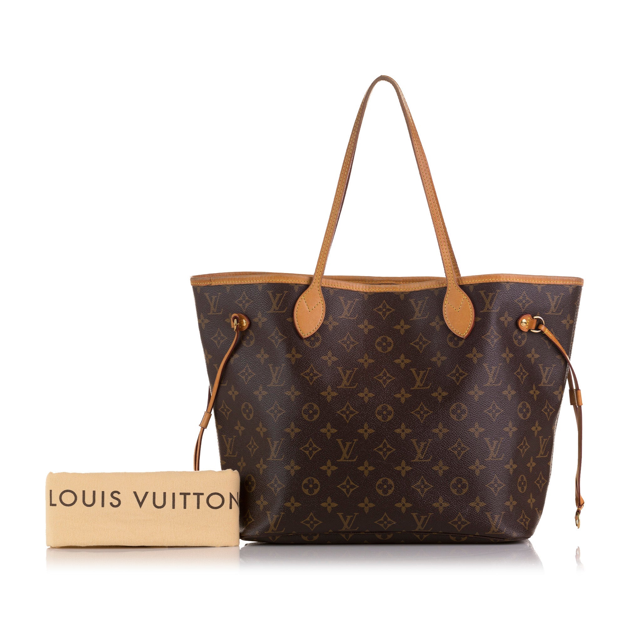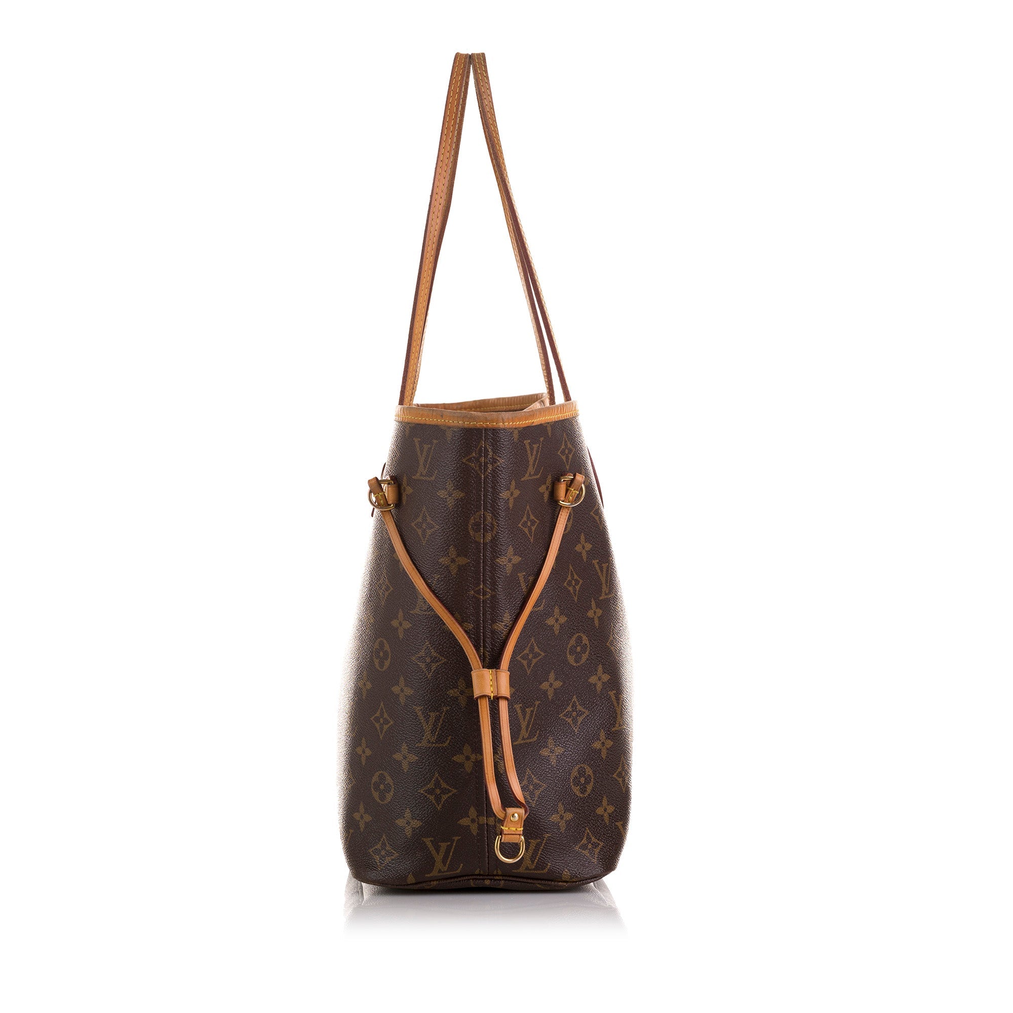 This super beautiful LV Neverfull MM tote bag is made from the famous Monogram Canvas. The main access has a gold-tone buckle closure. Inside this spacious Bag is a zippered compartment embedded in the light brown striped lining. With the double straps, the Bag comfortably worn over the shoulder. Probably one of the most popular bags ever, not without reason.
