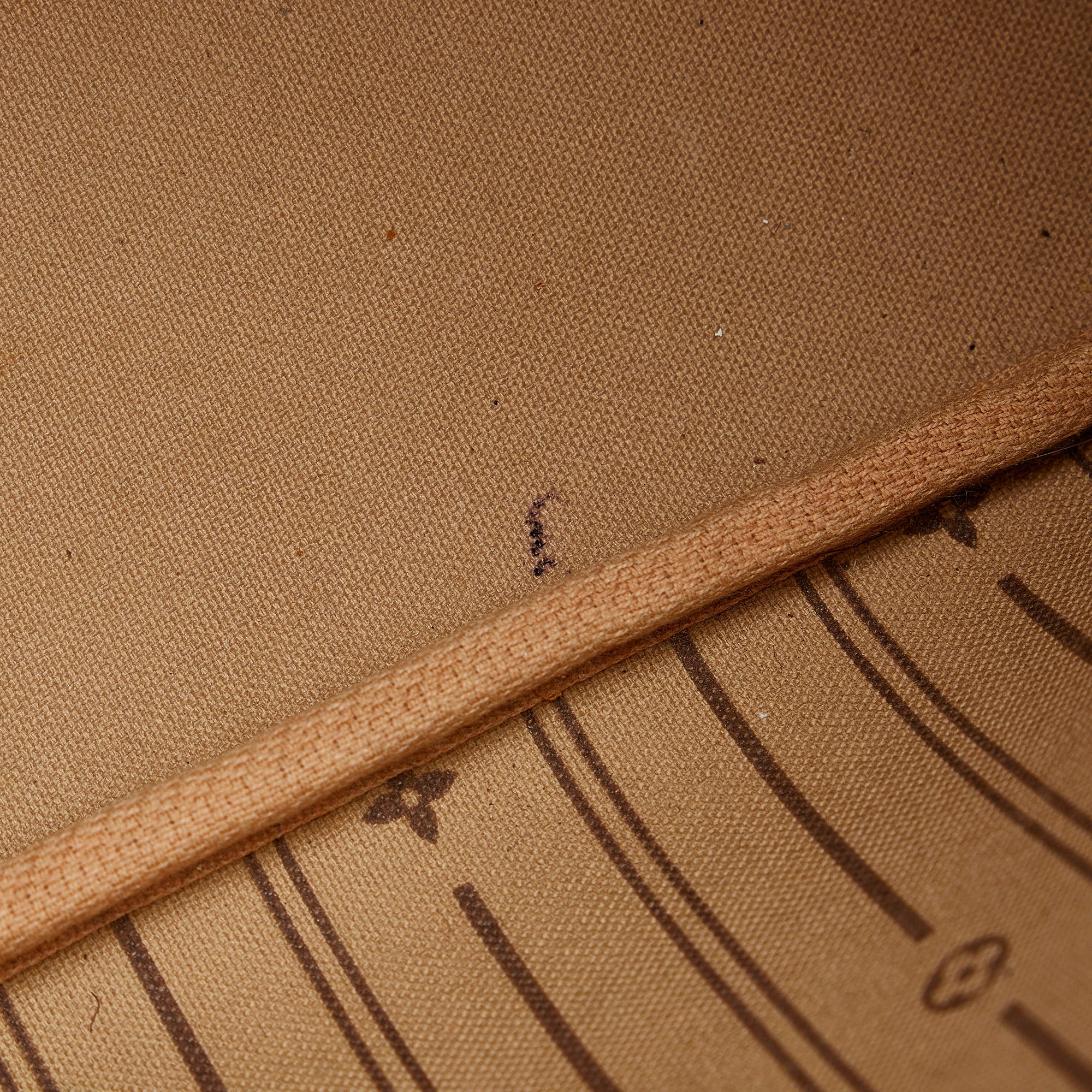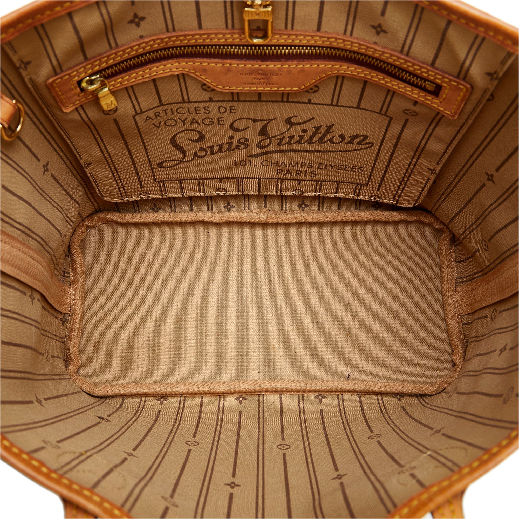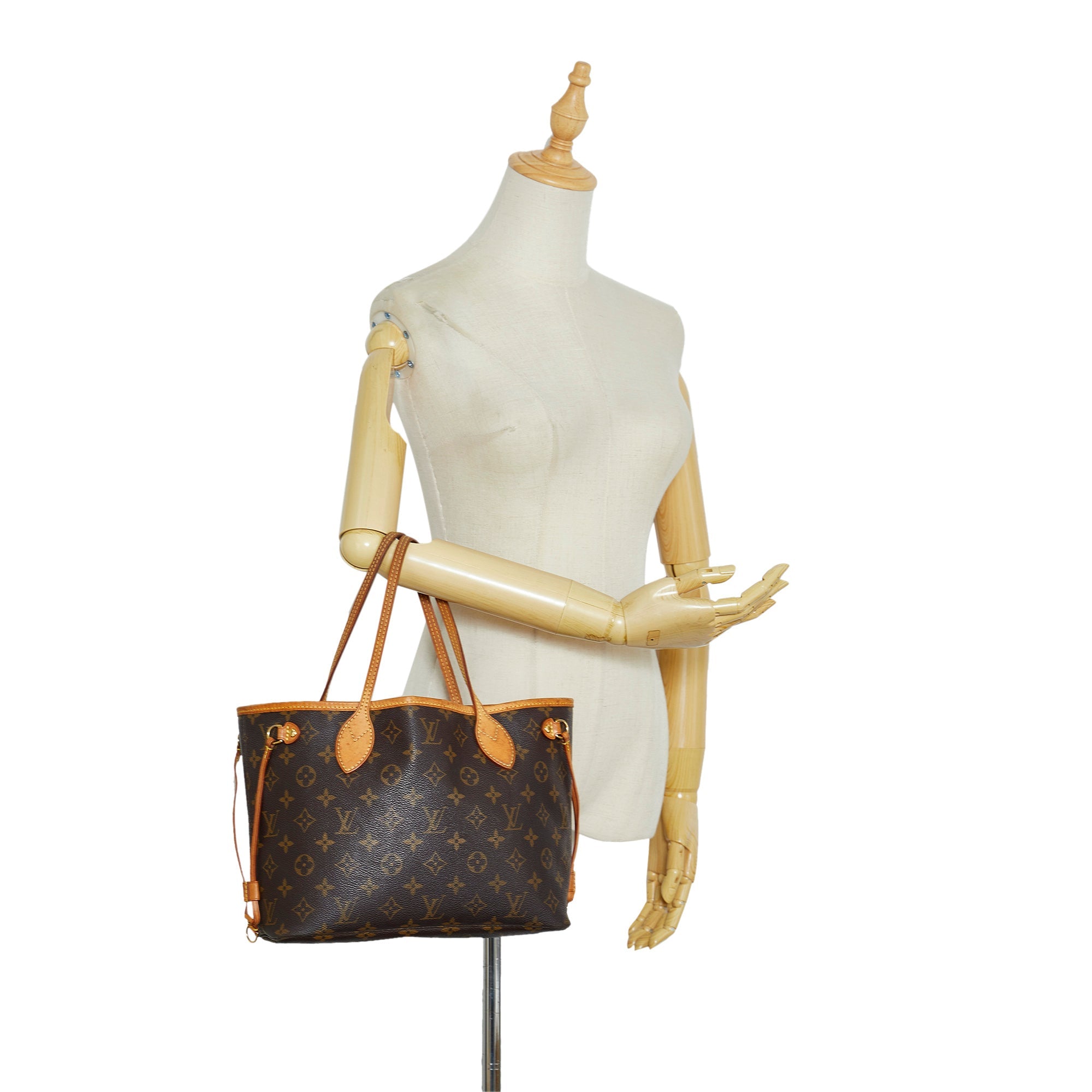 The LV Neverfull is not for nothing one of the most popular bags of the French traditional company. This Fresh in the small size PM was made of brown Monogram canvas and has trimmings and straps of light brown Vachetta leather. The top opening is secured with the help of a hook closure. The interior has a fresh print on the fabric that also reveals the Paris address of the house. The interior features the Bag bag has a zippered compartment.