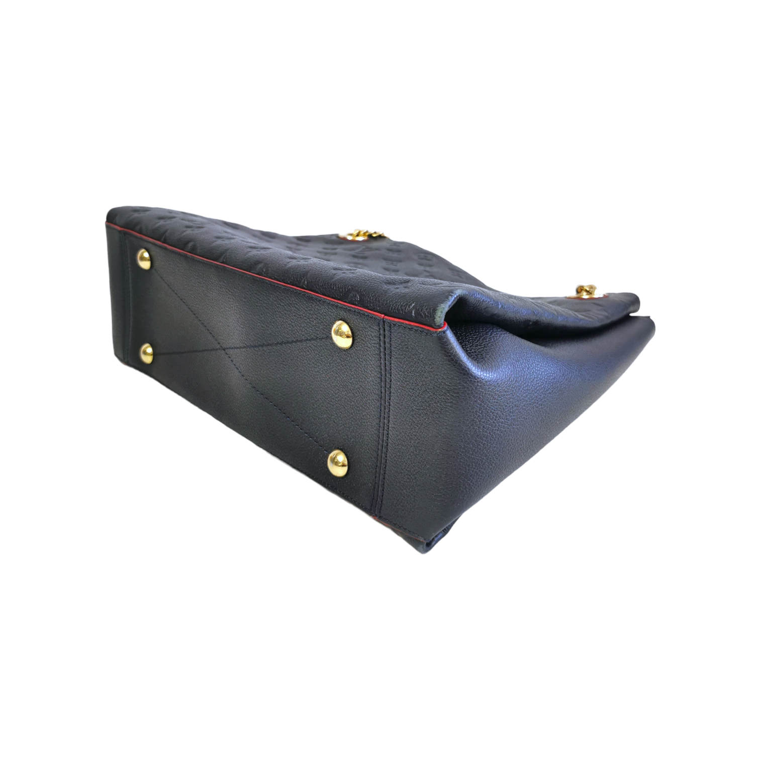This LV Surene in the MM variant was made of monogram made up and leather with a similar structure. Golden details complete the picture. With its two gold chain straps with leather protection in the support area, the Bag Comfortable over the shoulder. At its upper opening it has the Bag a zipper. In the interior, there is a small compartment with another zipper and two open plug -in compartments on the opposite side.