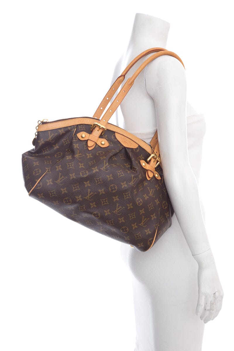 LV Tivoli GM Brown Monogram Canvas Leather Bag. This item is in good ; some discoloring/marks on leather trim.