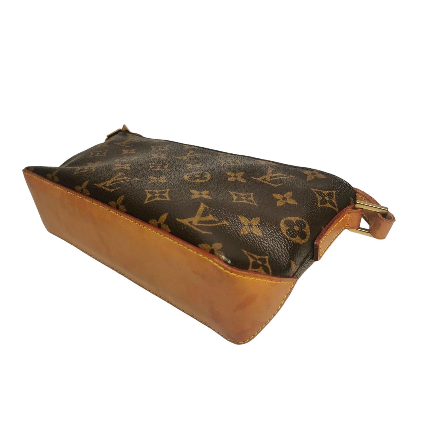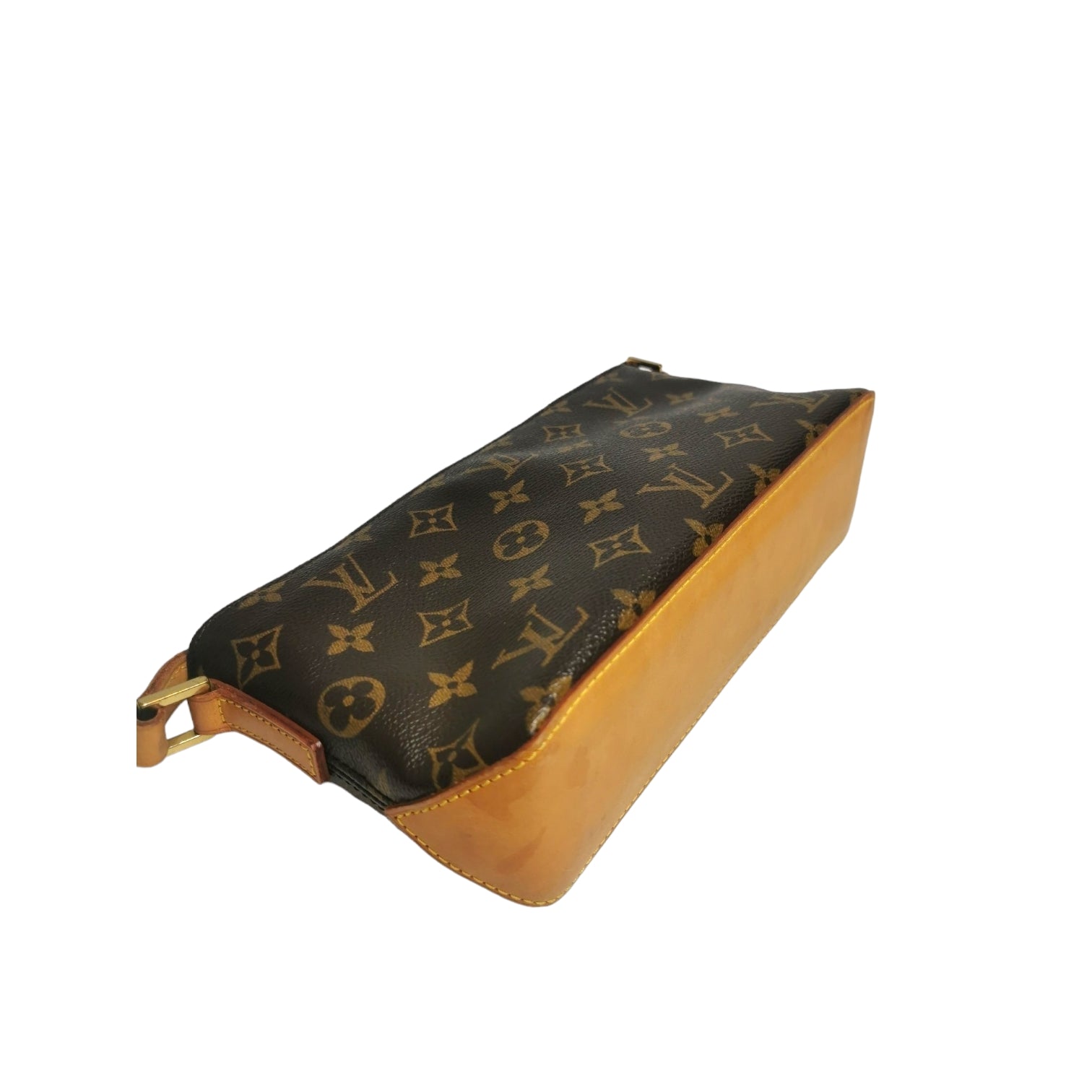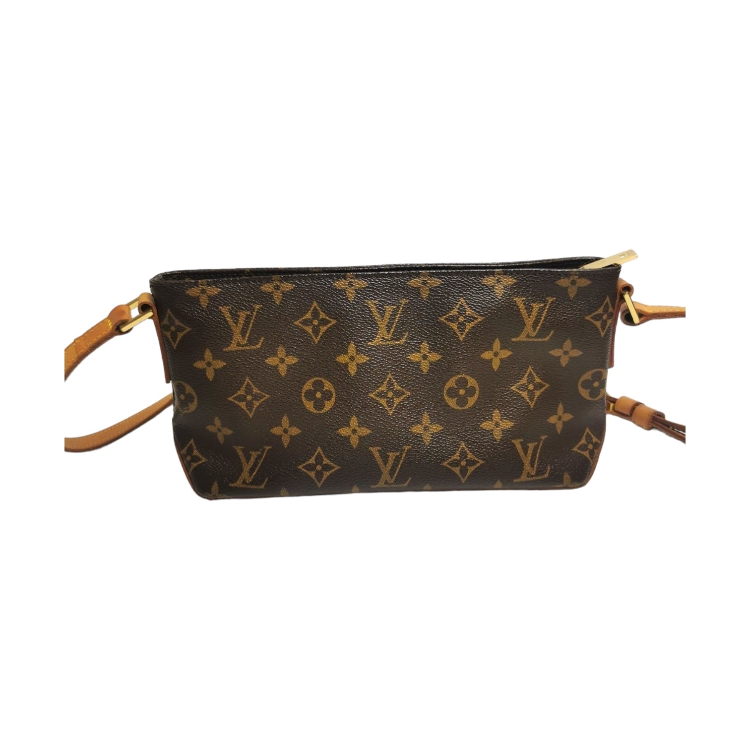 The LV Trotteur Bag is made from the popular Monogram canvas. The interior opens with a zipper and features a small zippered pocket. With the adjustable strap, it can be as a shoulder or cross-body bag. It is a perfect evening bag and is the ideal size to store make-up and keys in style.