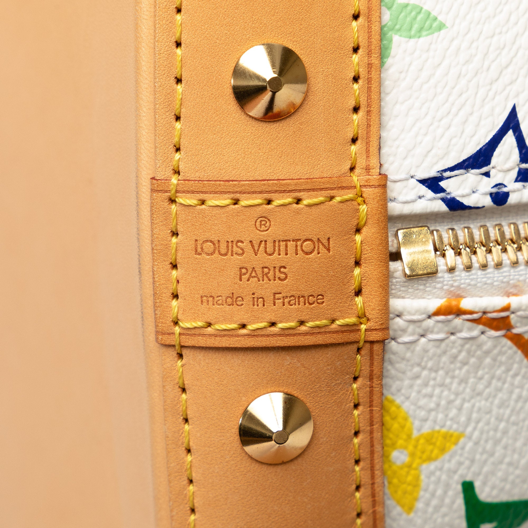 Product Details: Multicolor LV Monogram Multicolore Alma PM Handbag. The Alma PM features a monogram multicolore canvas body with vachetta leather trim, rolled vachetta leather handles, a two-way zip around closure, a studded vachetta leather base, an exterior zip pocket, and interior flat and slip pockets 12.6″ L x 9.4″ W x 6.5″ D, 3.9″ drop. Serial number FL2028.