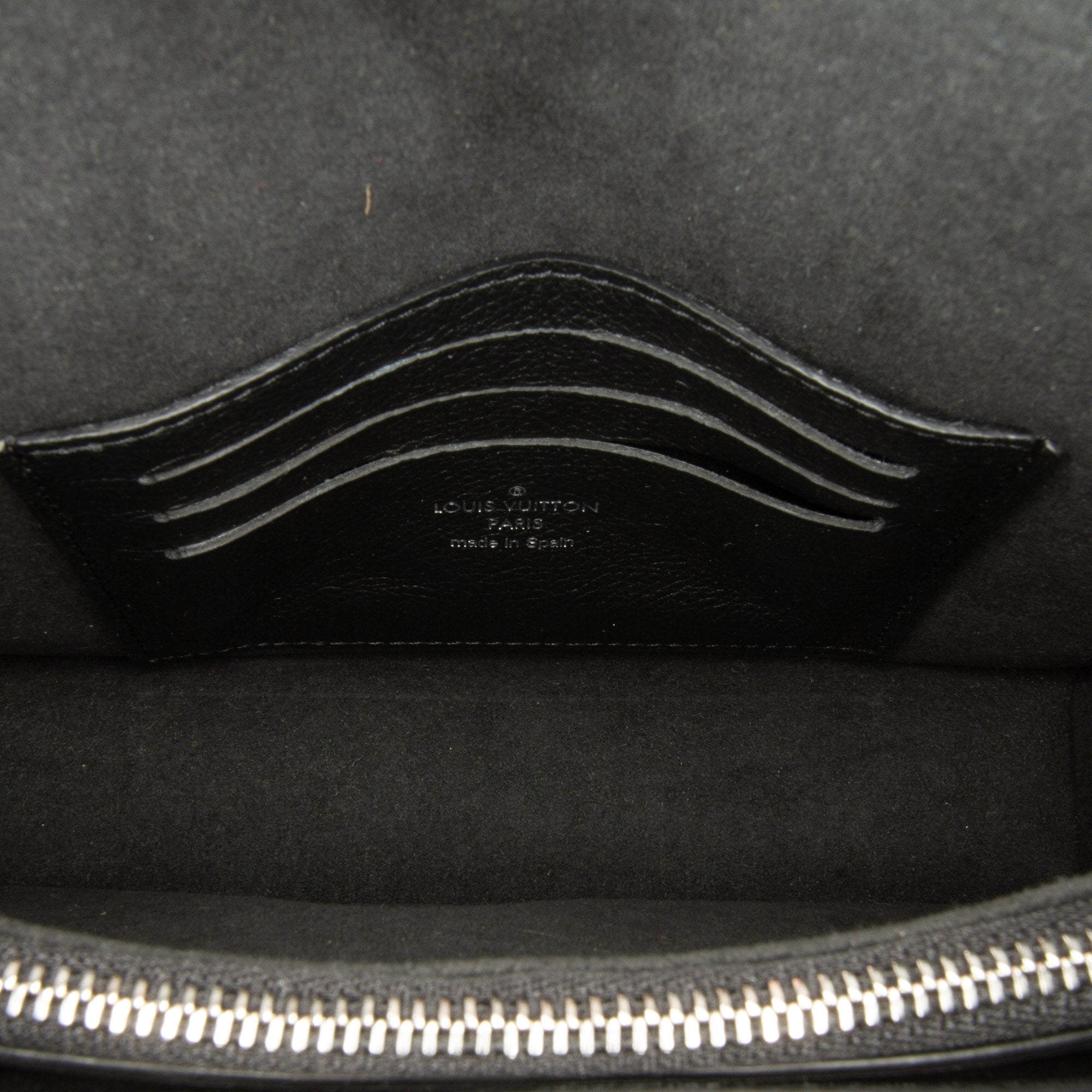 The beautiful LV Mylockme is made from black leather. This is completed by Bag by silver hardware. A very elegant Bag for the day as well as the evening. It has a detachable shoulder strap and can be over the shoulder or crossbody.