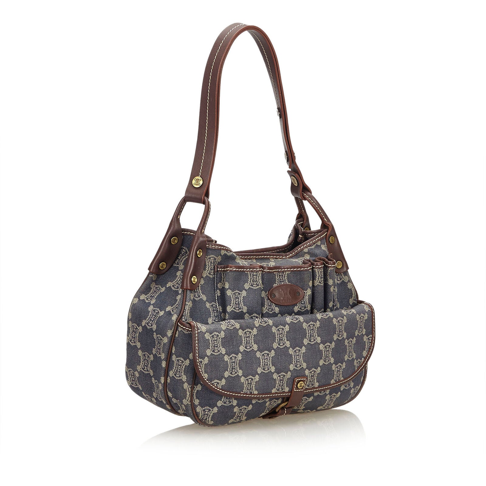 new Celine Blue Navy Denim Fabric Macadam Shoulder Bag France quantity