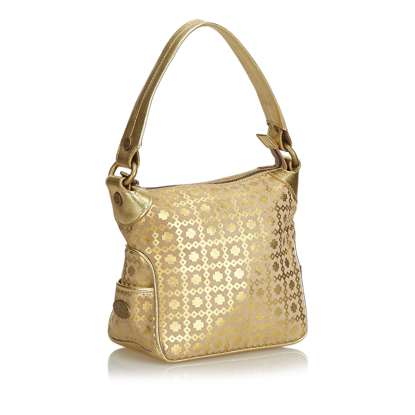 new Celine Brown Beige Suede Leather Metallic Pattern Handbag France