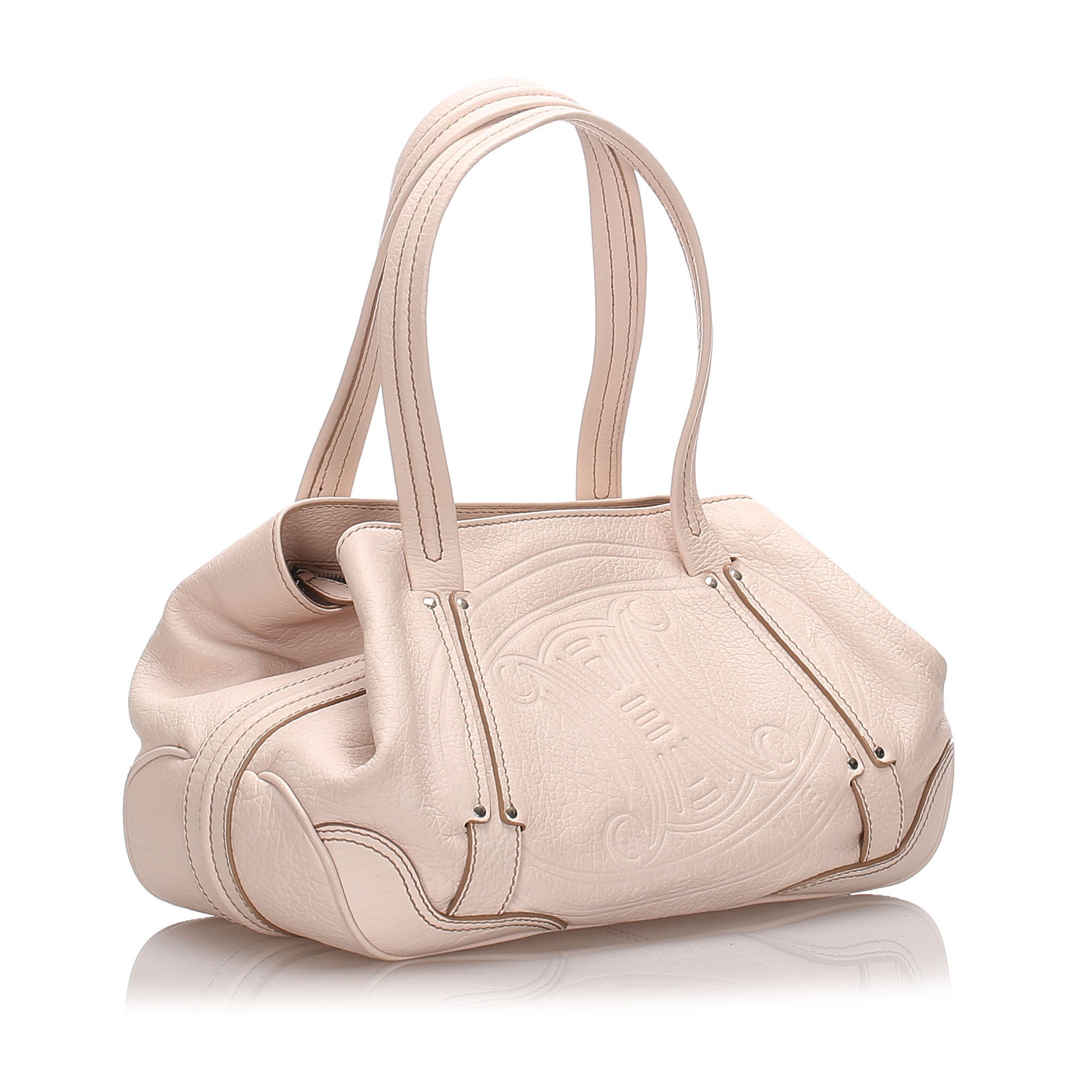 new Celine White Calf Leather Embossed Logo Shoulder Bag France quantity