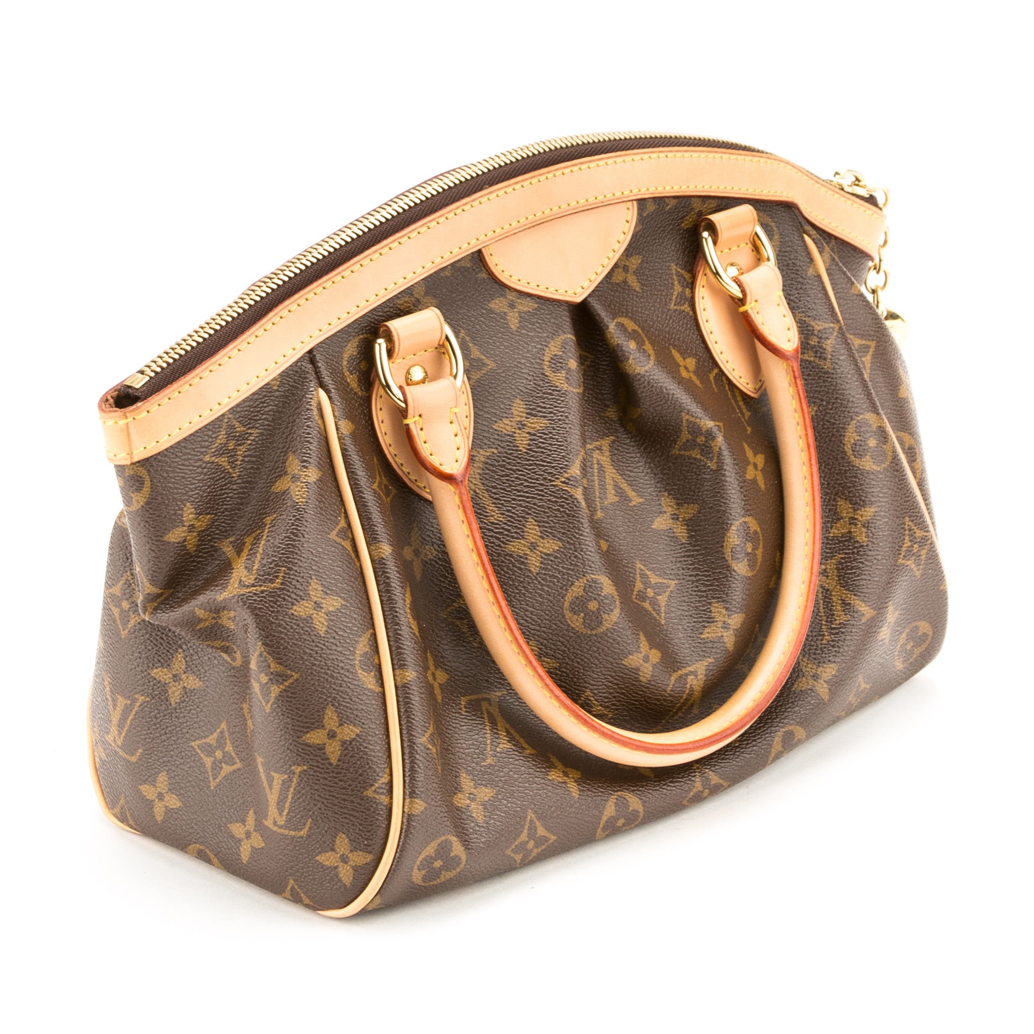 This authentic Louis Vuitton Monogram Canvas Tivoli PM Bag is stunning. The Tivoli is named after famous the city Tivoli, Italy. It features gold tone hardware a subtle pleating, a frame top and a gold zipper LV pull.