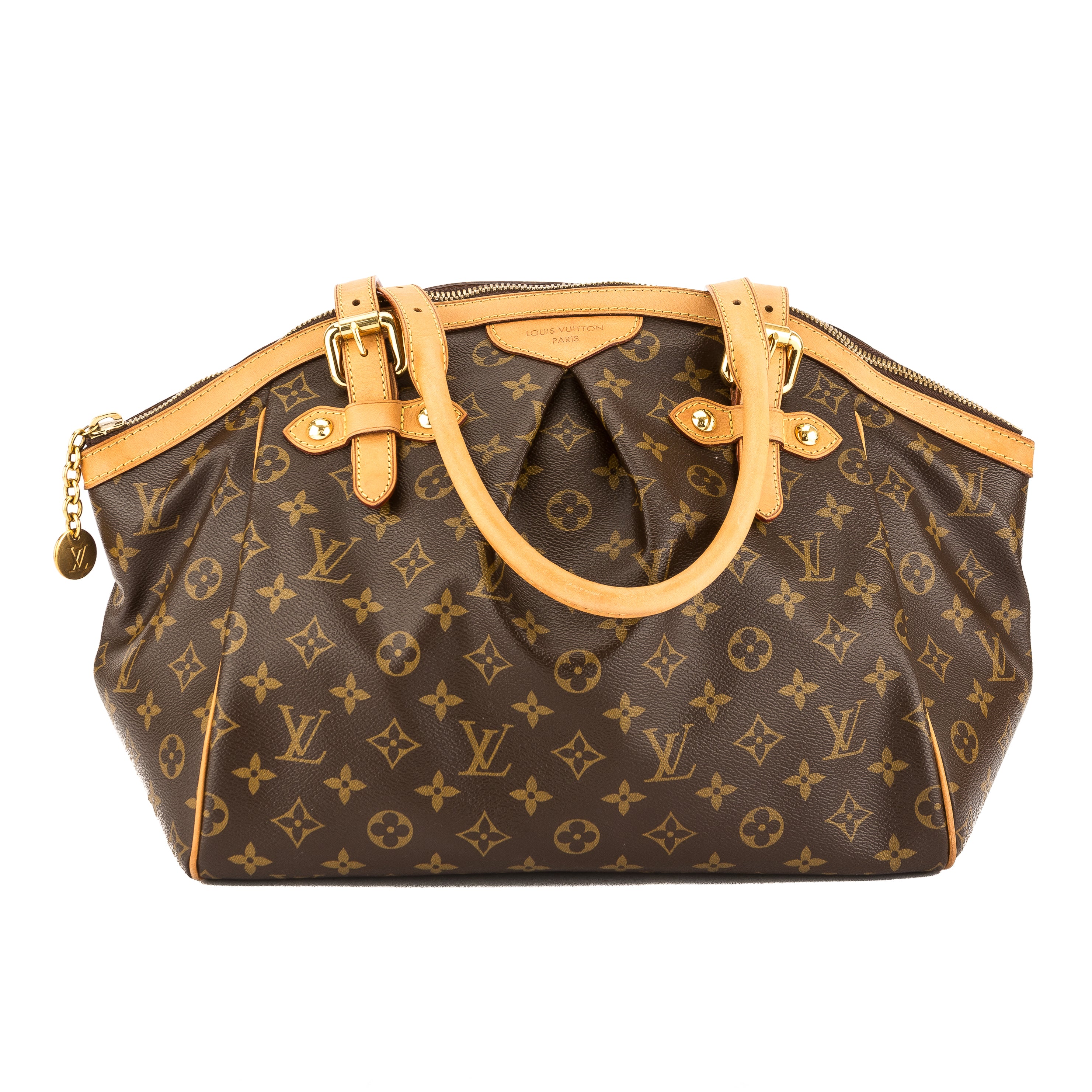 This is an authentic LOUIS VUITTON Tivoli GM Bag. It’s named after the beautiful city of Tivoli, Italy, which garners many tourists. It’s crafted with the iconic Monogram canvas with a pleated front detail, a natural cowhide leather trim, and adjustable top handles to carry as a tote or shoulder bag. It has golden brass hardware with five studs on the base for support. It has a zip closure with an LV medallion charm and an interior with a brown textile lining, a d-ring, and three open pockets. This is the largest Tivoli so there’s plenty of space for your daily essentials. This is a charming bag for every day by Louis Vuitton!