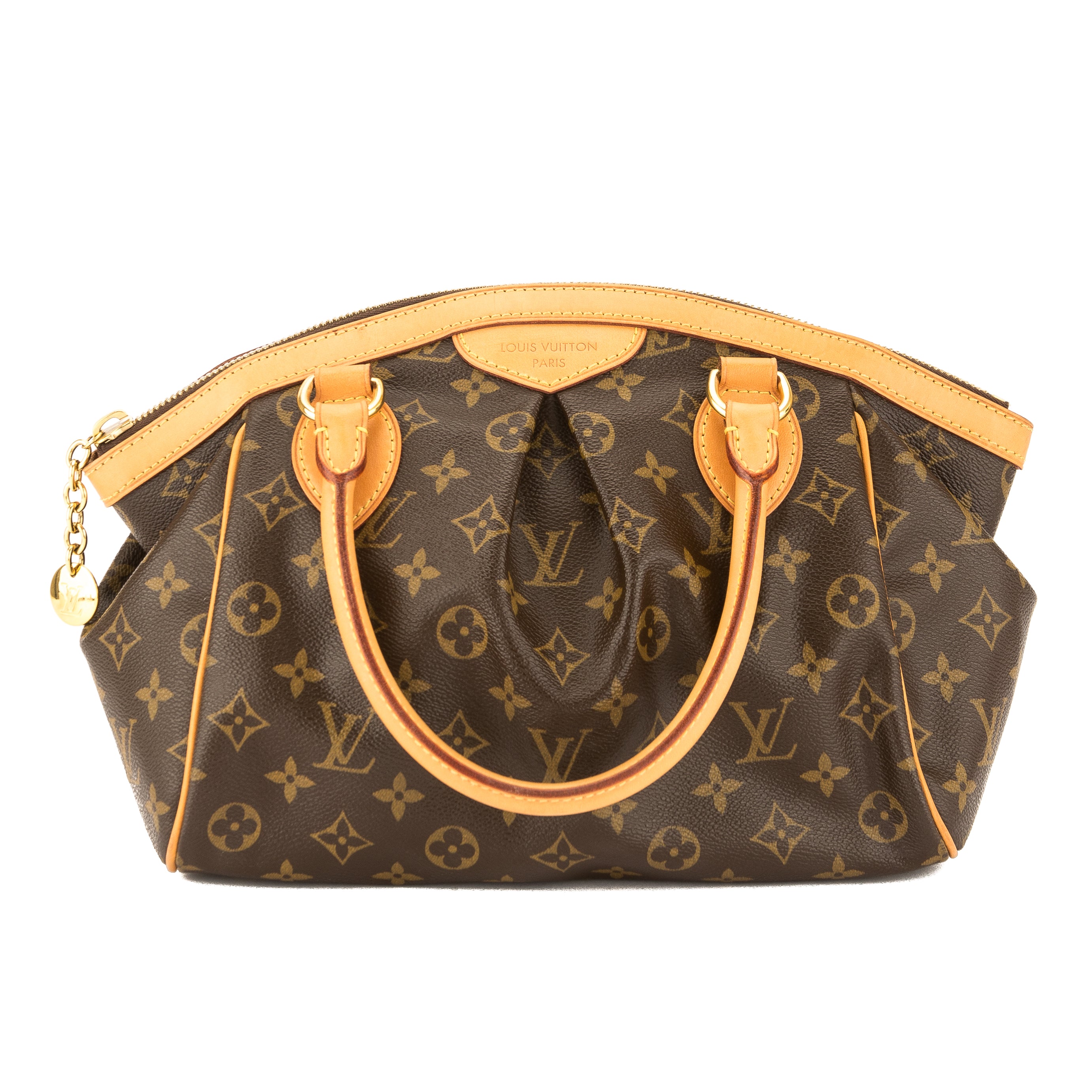 This is an authentic LOUIS VUITTON Tivoli PM Bag. It’s named after the beautiful city of Tivoli, Italy, which garners many tourists. It’s crafted in the iconic Monogram canvas with a pleated front detail, a natural cowhide leather trim, and rolled top handles. It has golden brass hardware, including five studs on the base for support. It has a zip closure with an LV medallion charm and opens to expose a rich brown textile lining, a flat pocket, and a cellphone pocket. This is the petite Tivoli but it has plenty of space for your necessities. This is a charming bag for every day by Louis Vuitton!