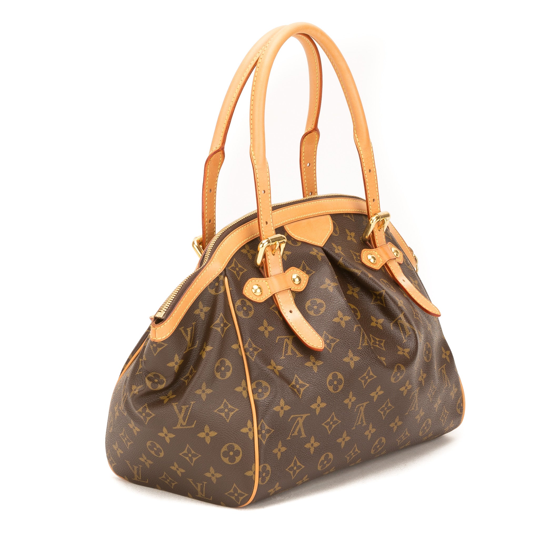 This authentic Louis Vuitton Monogram Canvas Tivoli GM Bag is stunning. The Tivoli is named after famous the city Tivoli, Italy. It features gold tone hardware, pleating, a frame top and a gold zipper LV pull.