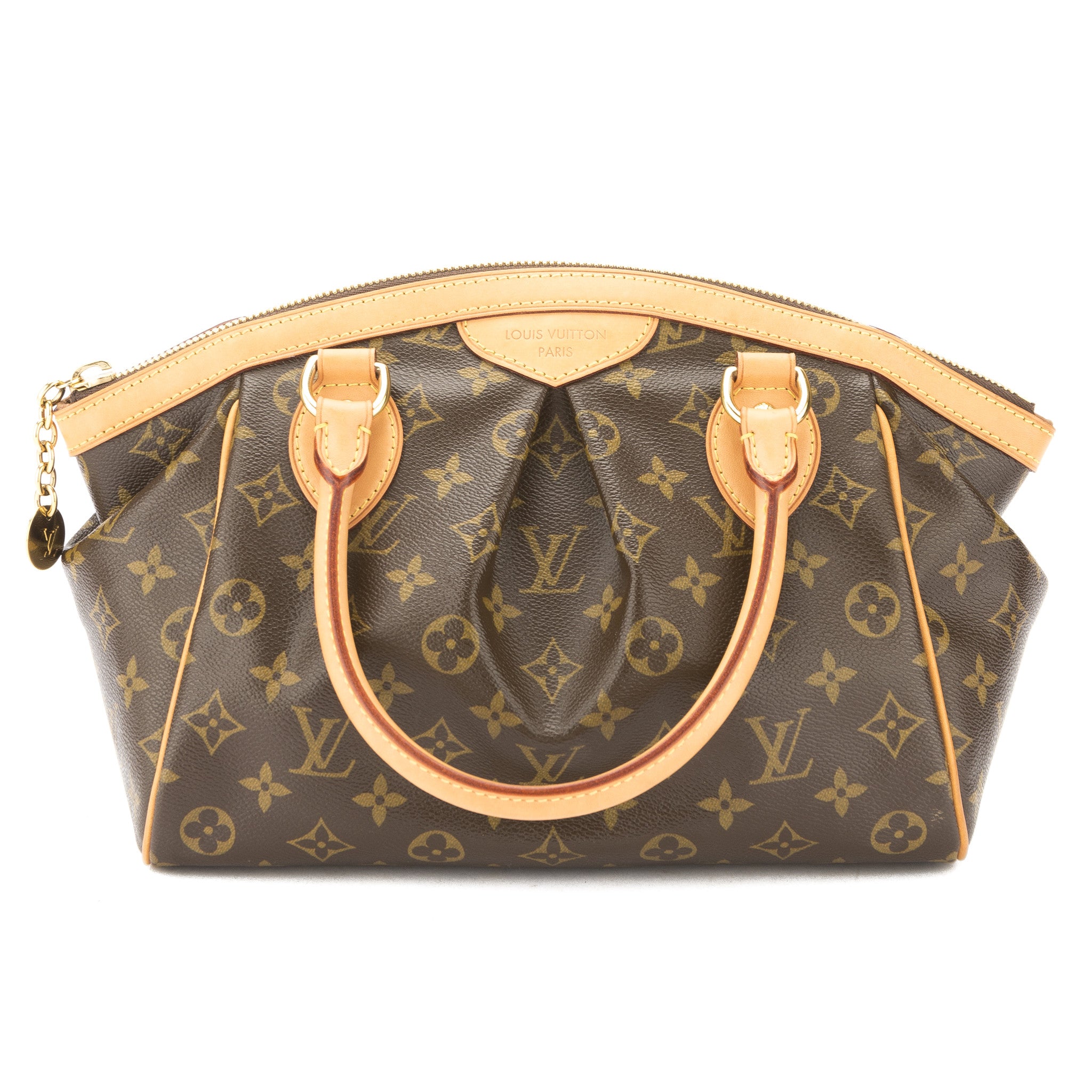 This is an authentic LOUIS VUITTON Monogram Tivoli PM Bag. It’s named after the beautiful city of Tivoli, Italy, which garners many tourists. It’s crafted with the iconic Monogram canvas with a pleated front detail, natural cowhide leather trimming, and rolled top handles. It has golden brass metal hardware, including five studs on the base for support, which enhances it features. It has a zip top closure with an LV medallion charm and opens to expose a rich brown textile lining, a flat pocket, and a cellphone pocket. This is the petite Tivoli but it has plenty of space for all your necessities. This is a charming bag for every day by Louis Vuitton!