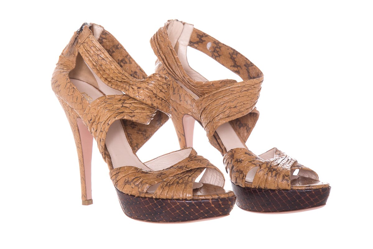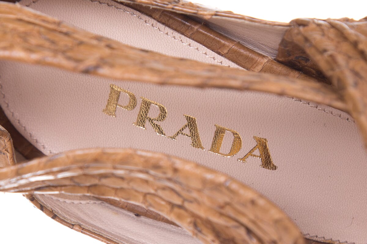 Prada Beige & Brown Python Wrap Heels SZ 40.5Prada Beige & Brown Python Wrap Heels SZ 40.5