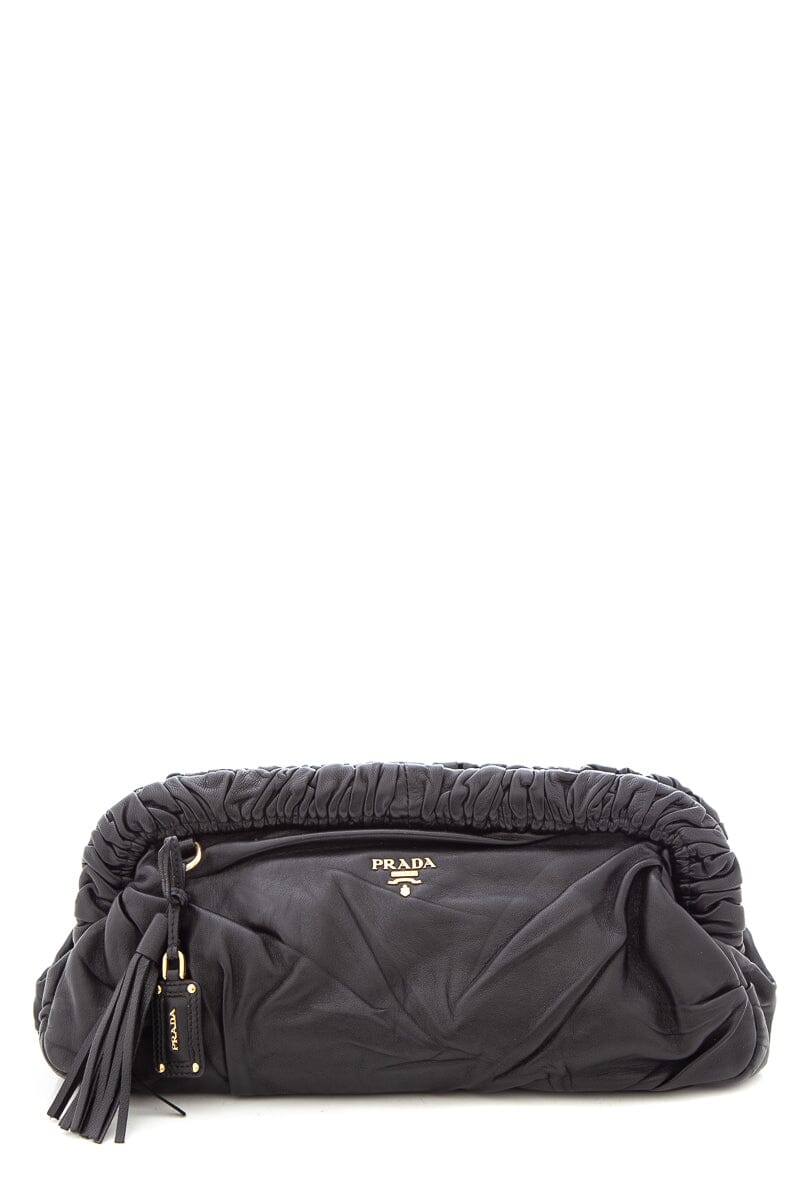 Prada Black Lambskin Clutch W/ Gold HW. This item is in New condition.