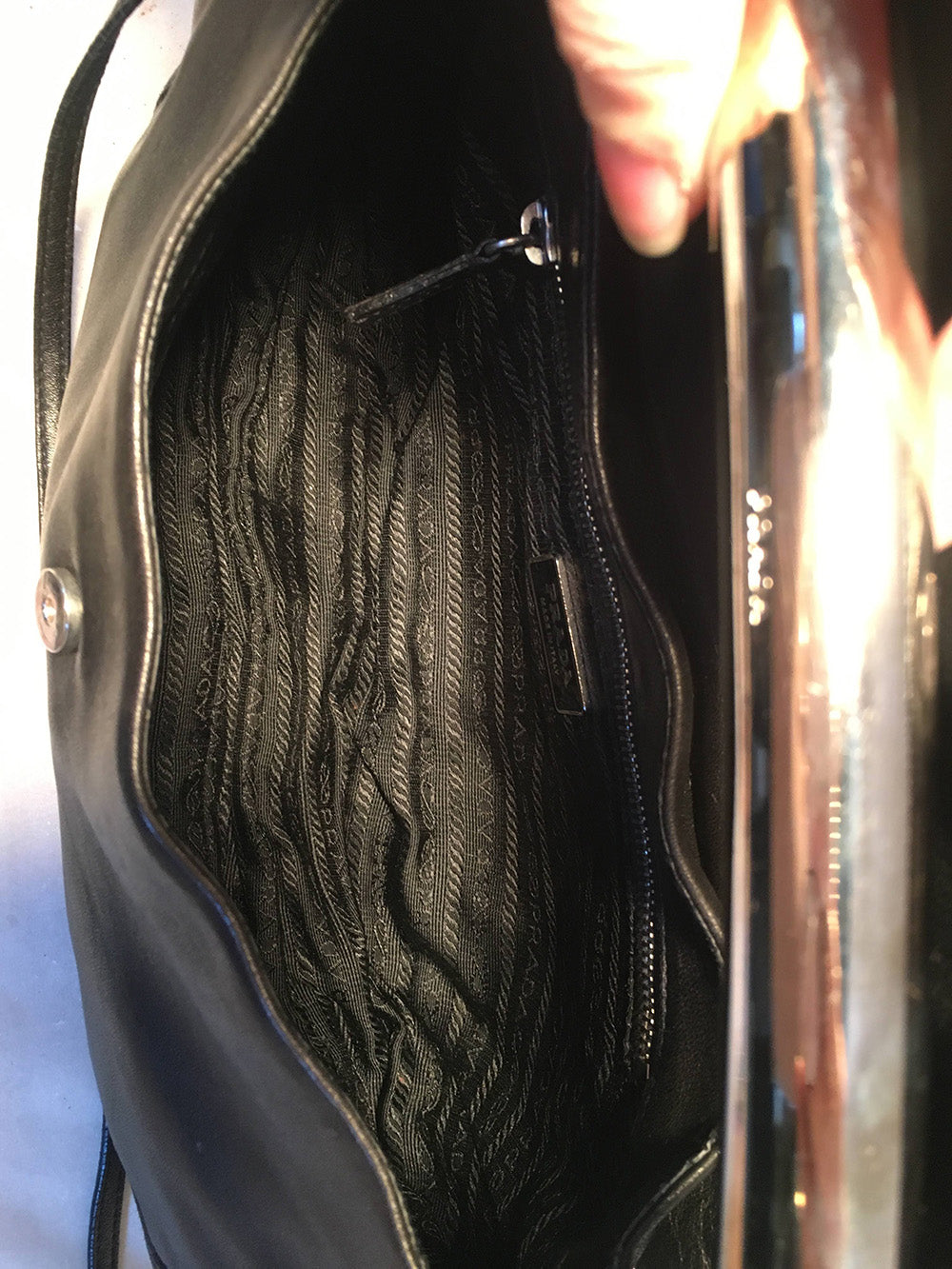 Tags: black prada bag, Prada, prada bag, prada bar top bag, prada bar top handle, prada black leather, Top Handle