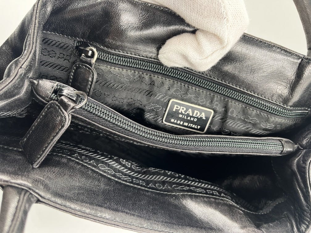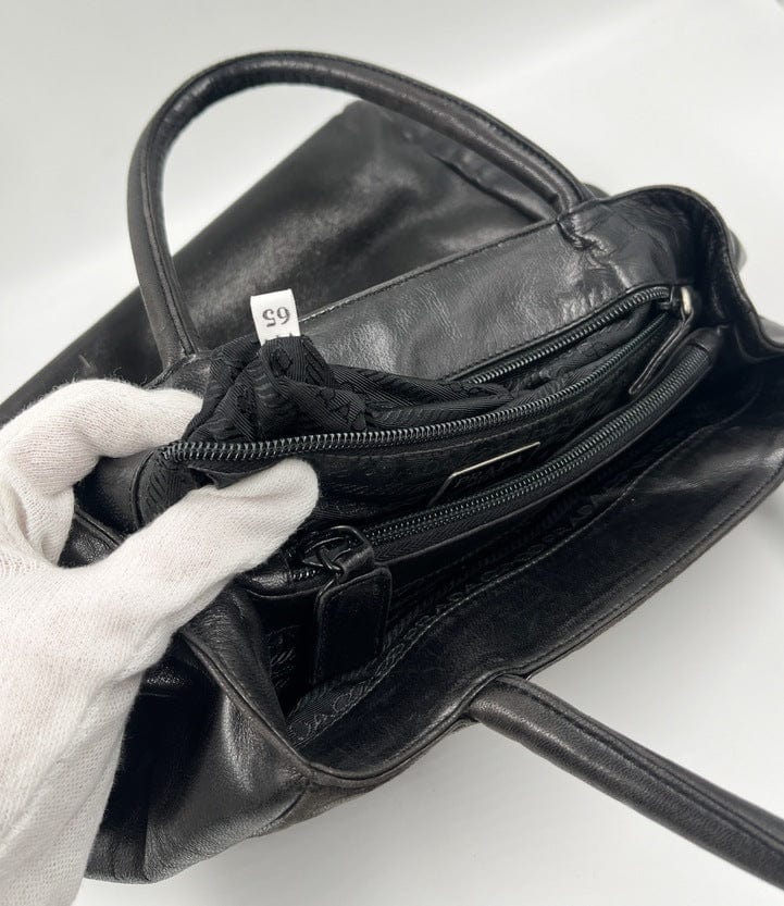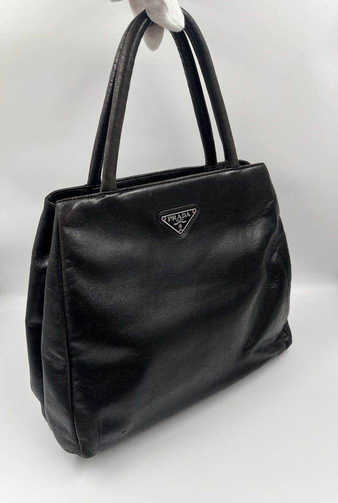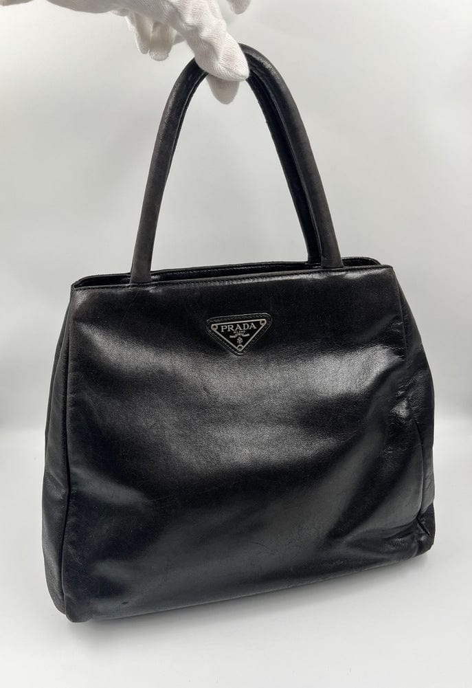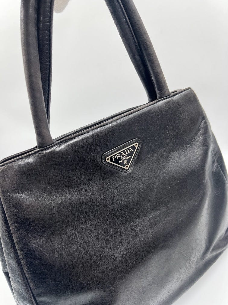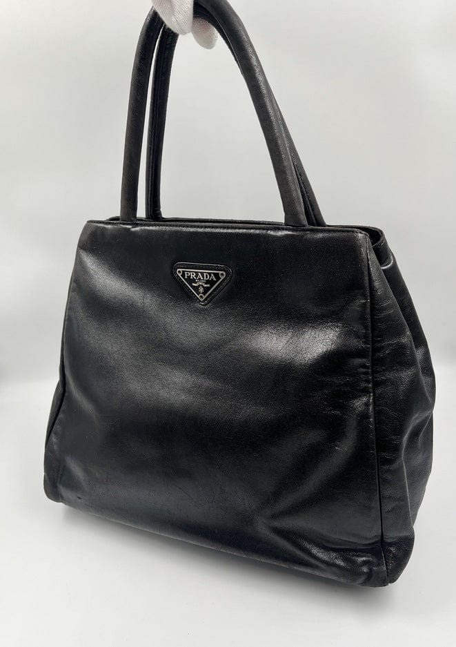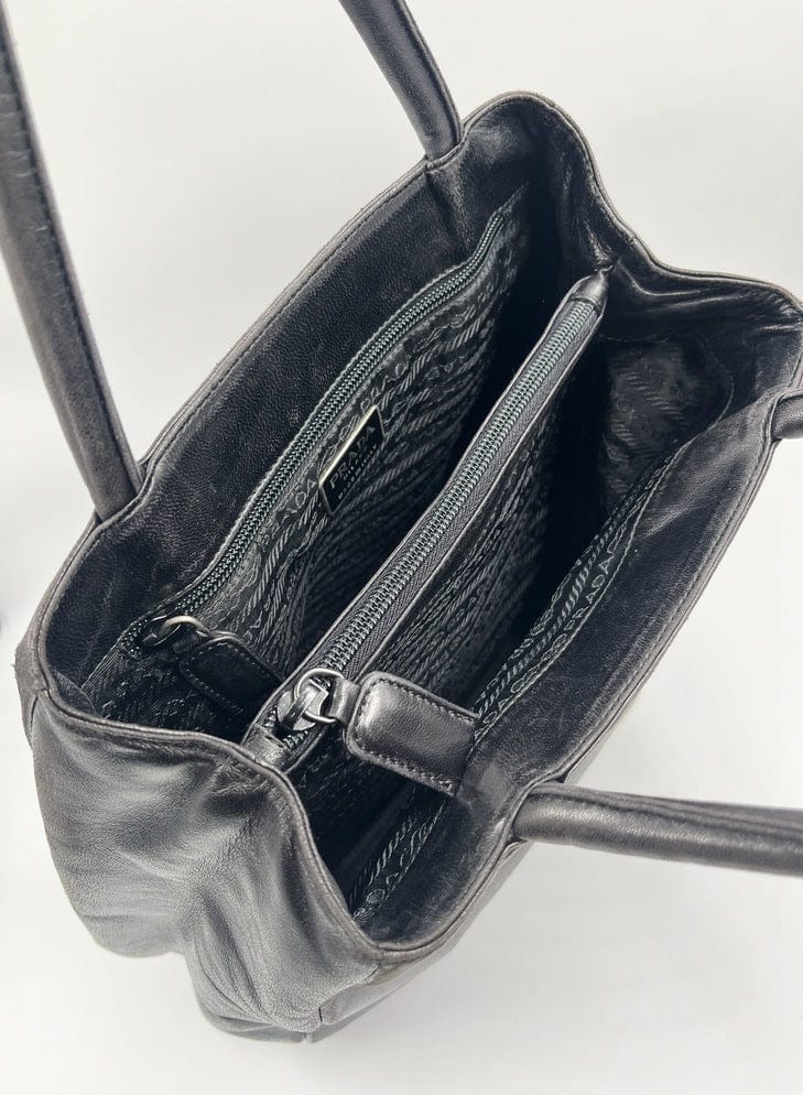 A cool Prada tote in a buttery soft black leather, this style is timeless and looks very similar to the current collection.