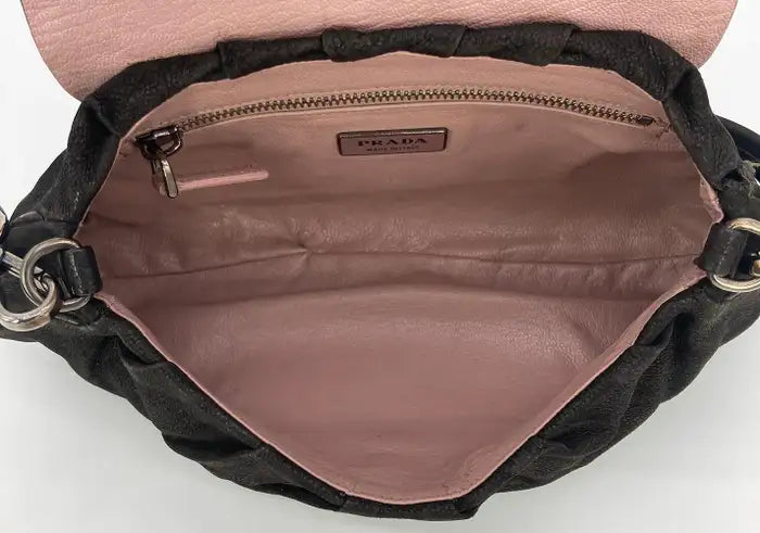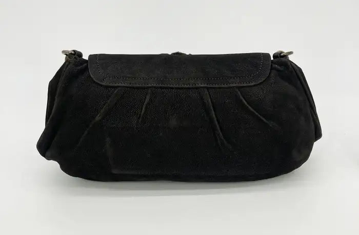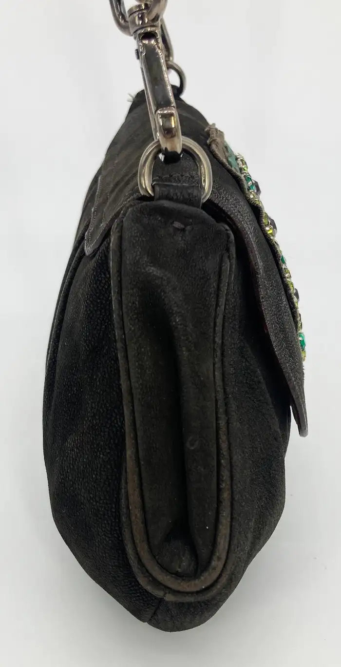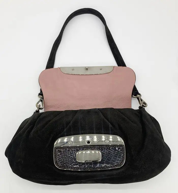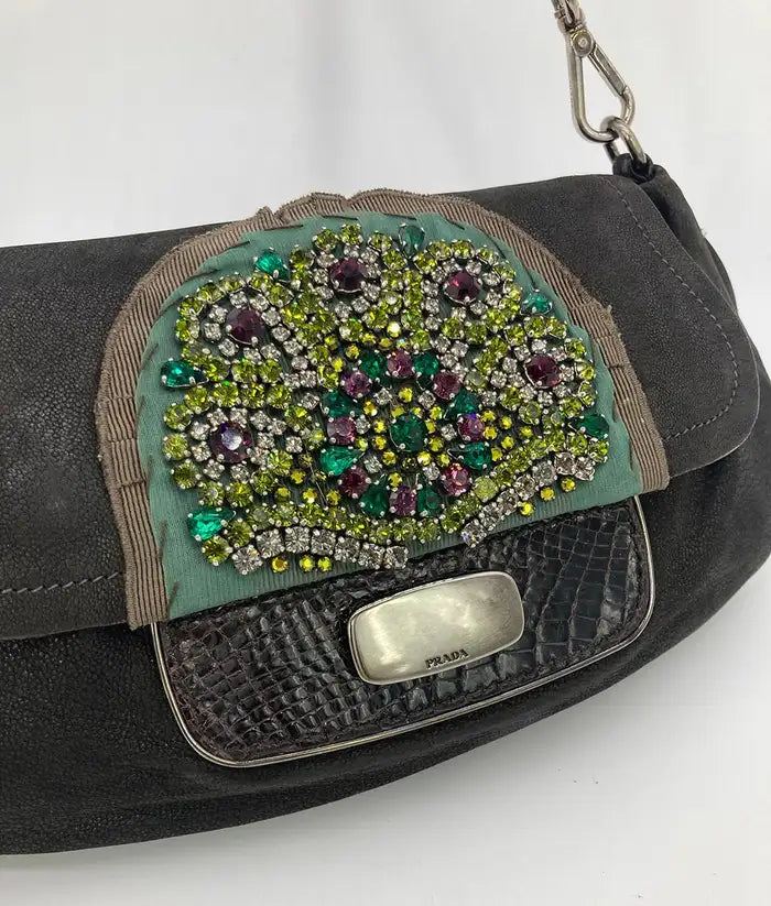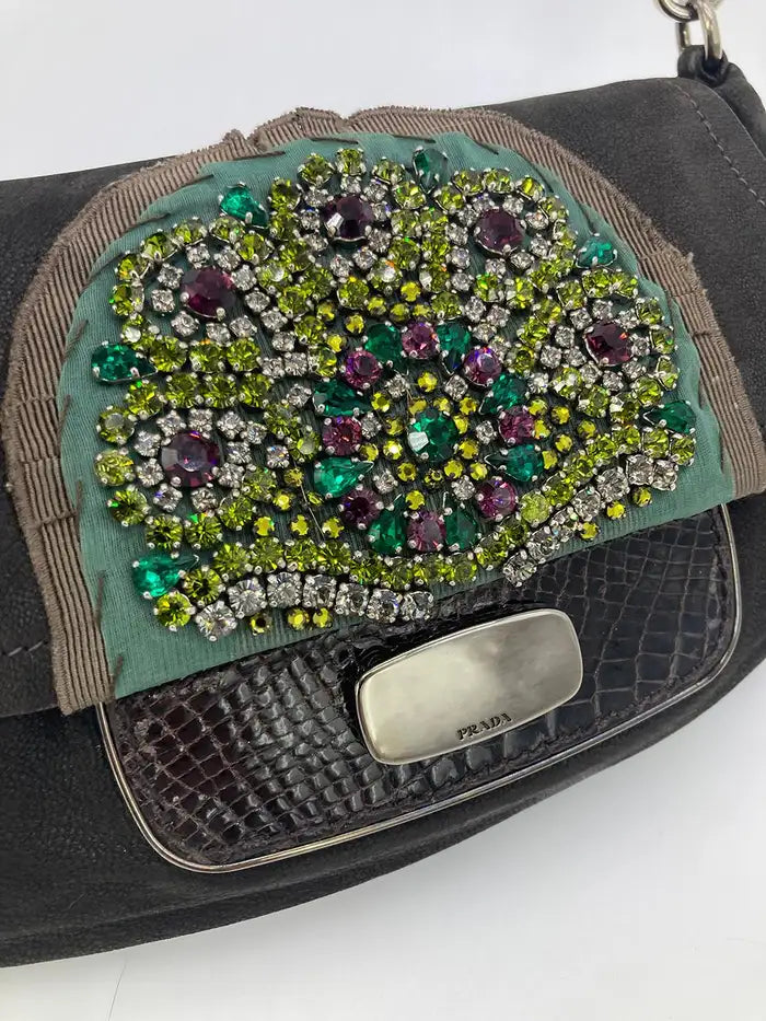 Prada Black Suede Rhinestone Alligator Flap Shoulder Bag