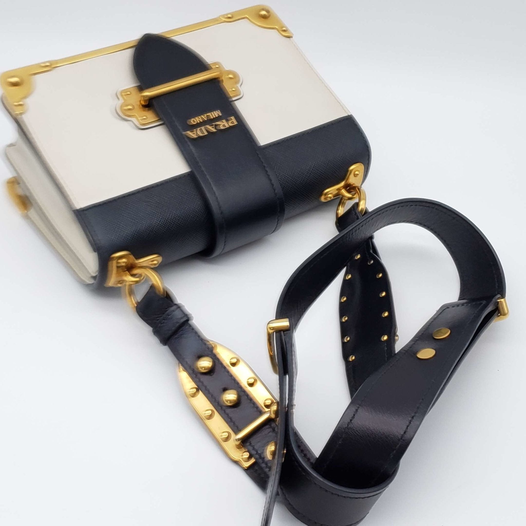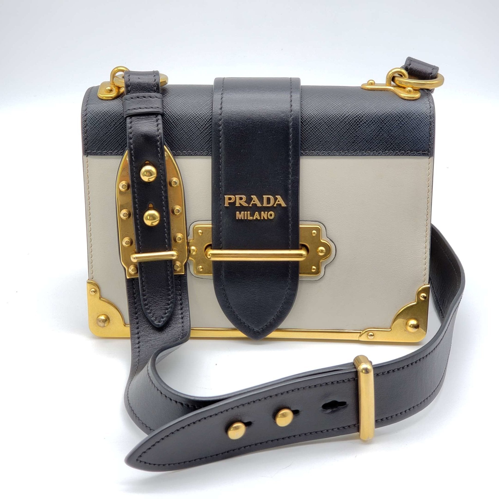 Prada Cahier Black & White Leather Shoulder BagPrada Cahier Black & White Leather Shoulder Bag