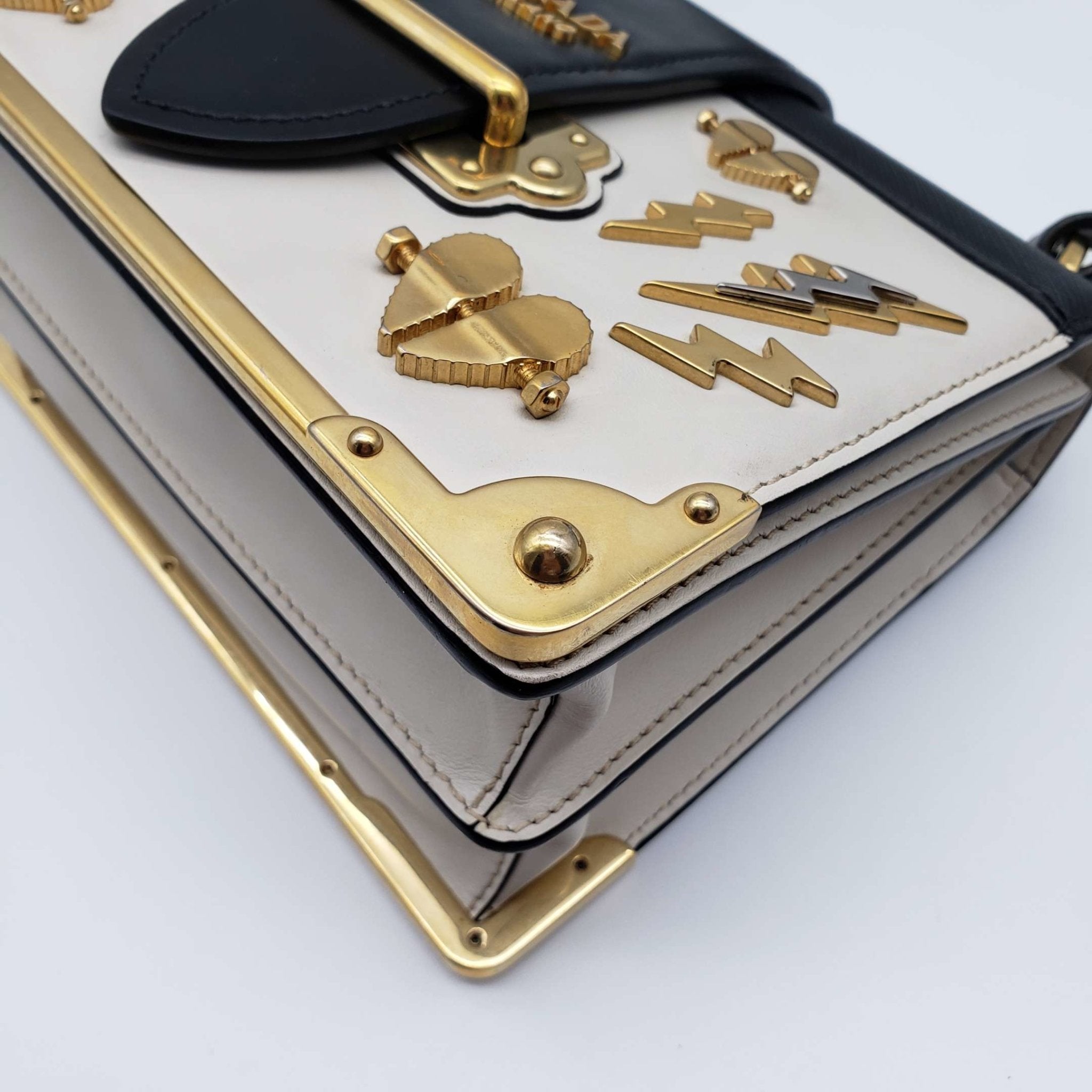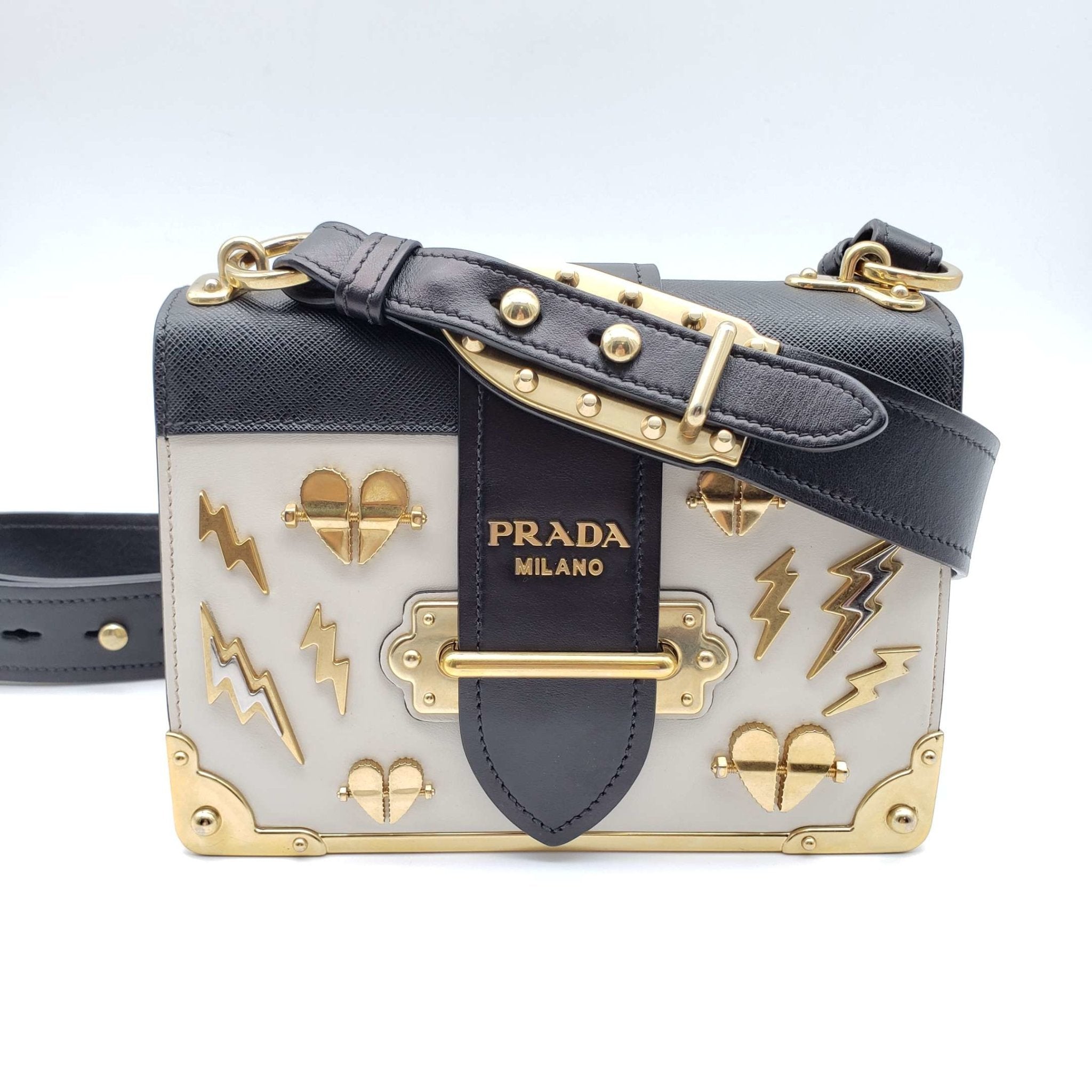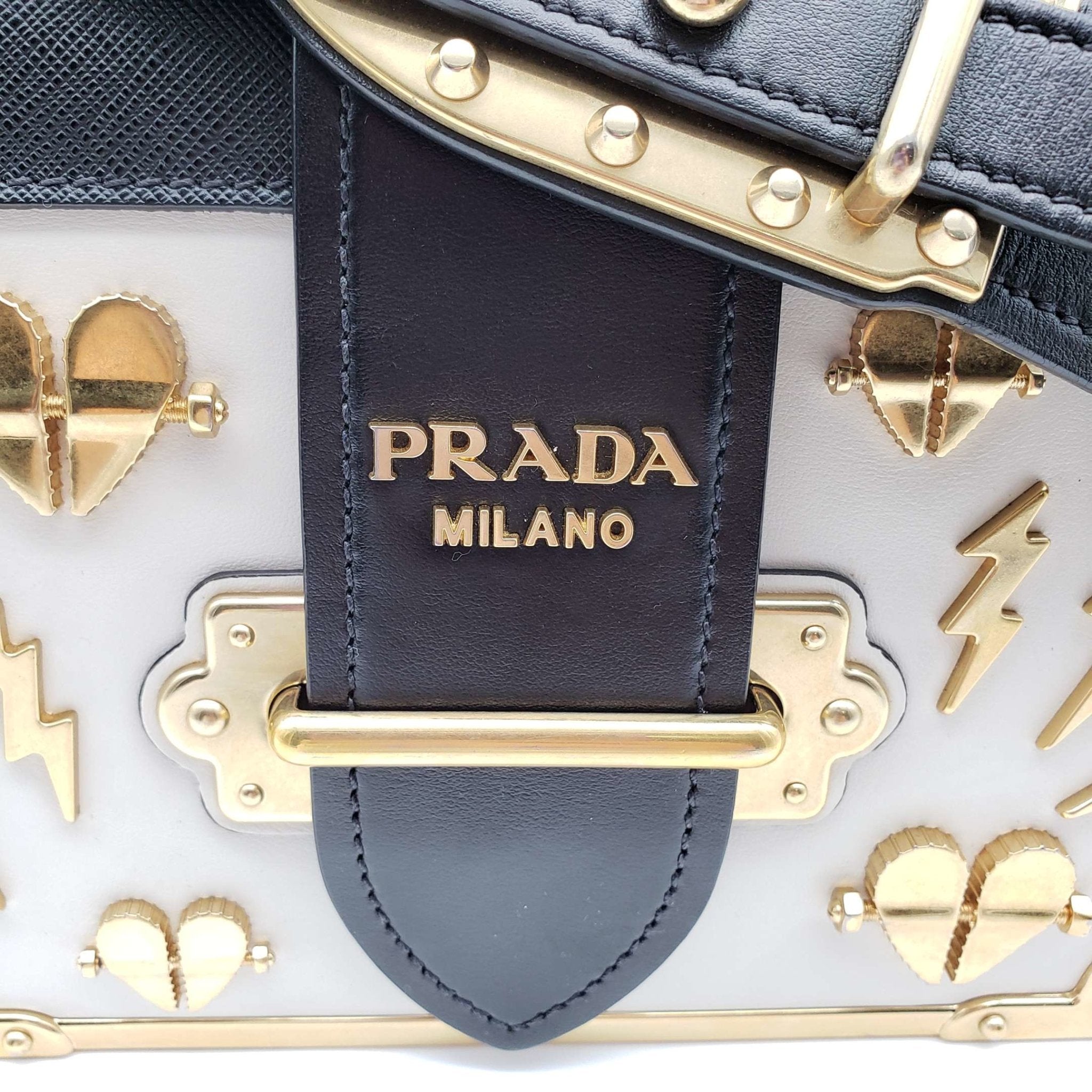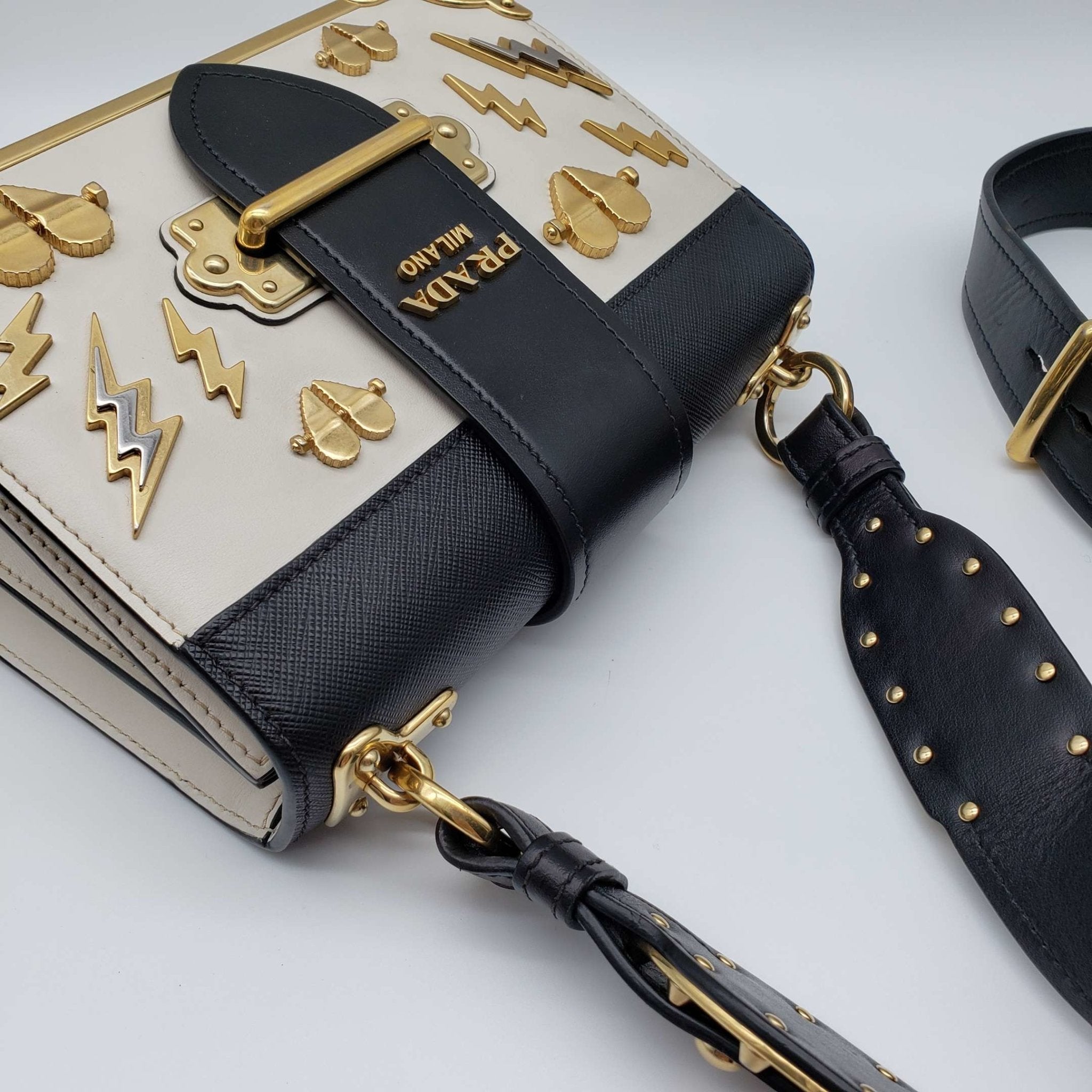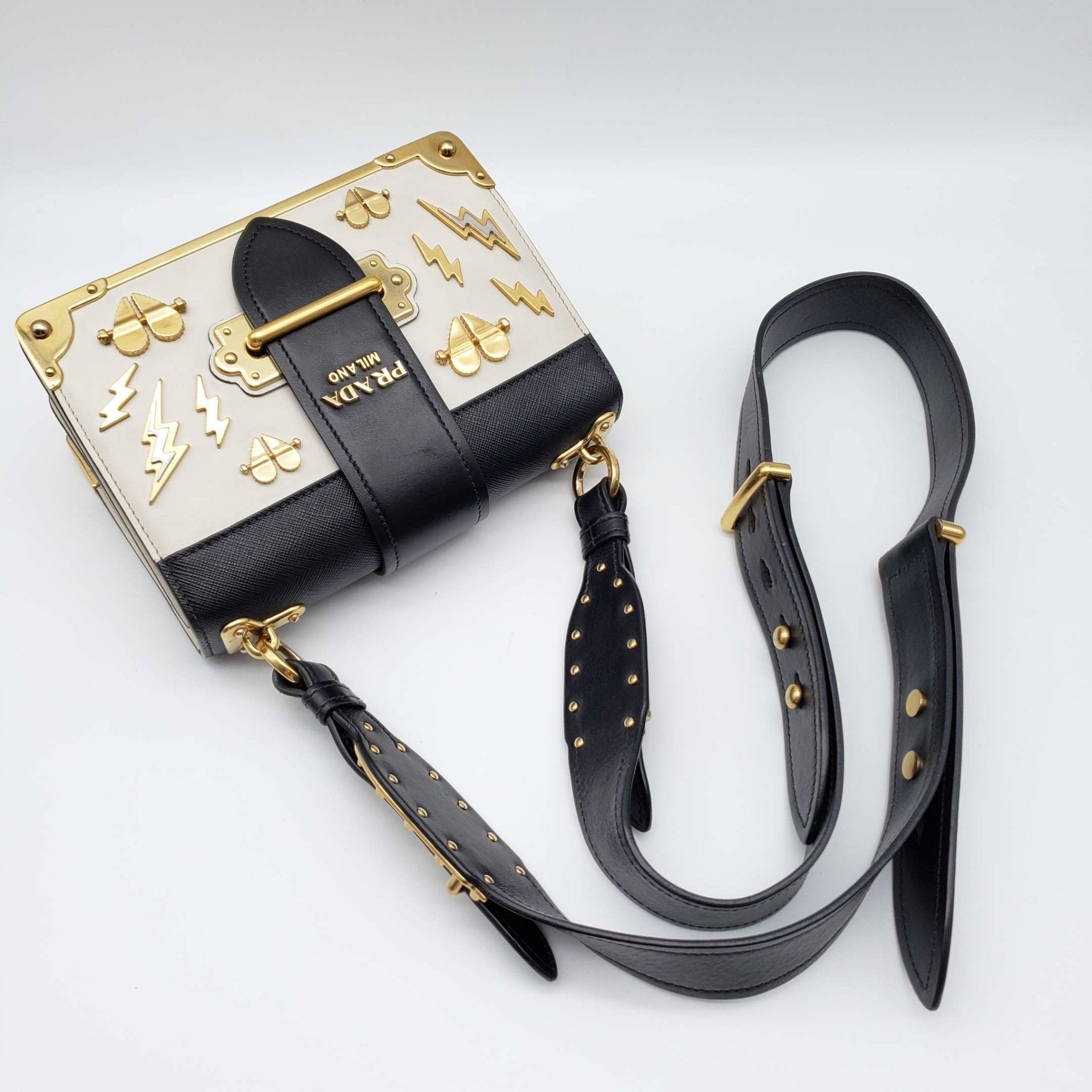 Prada Cahier Leather Black and White Shoulder BagPrada Cahier Leather Black and White Shoulder Bag