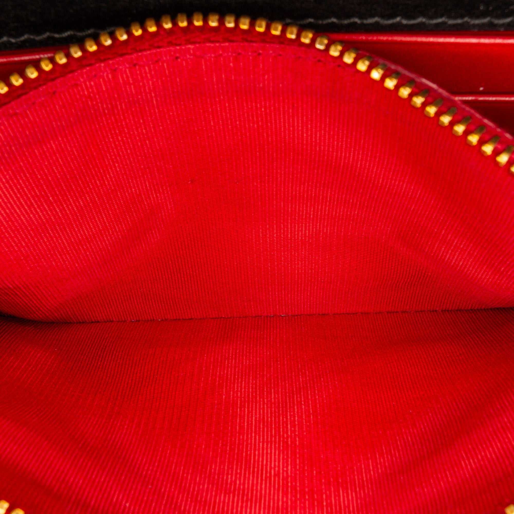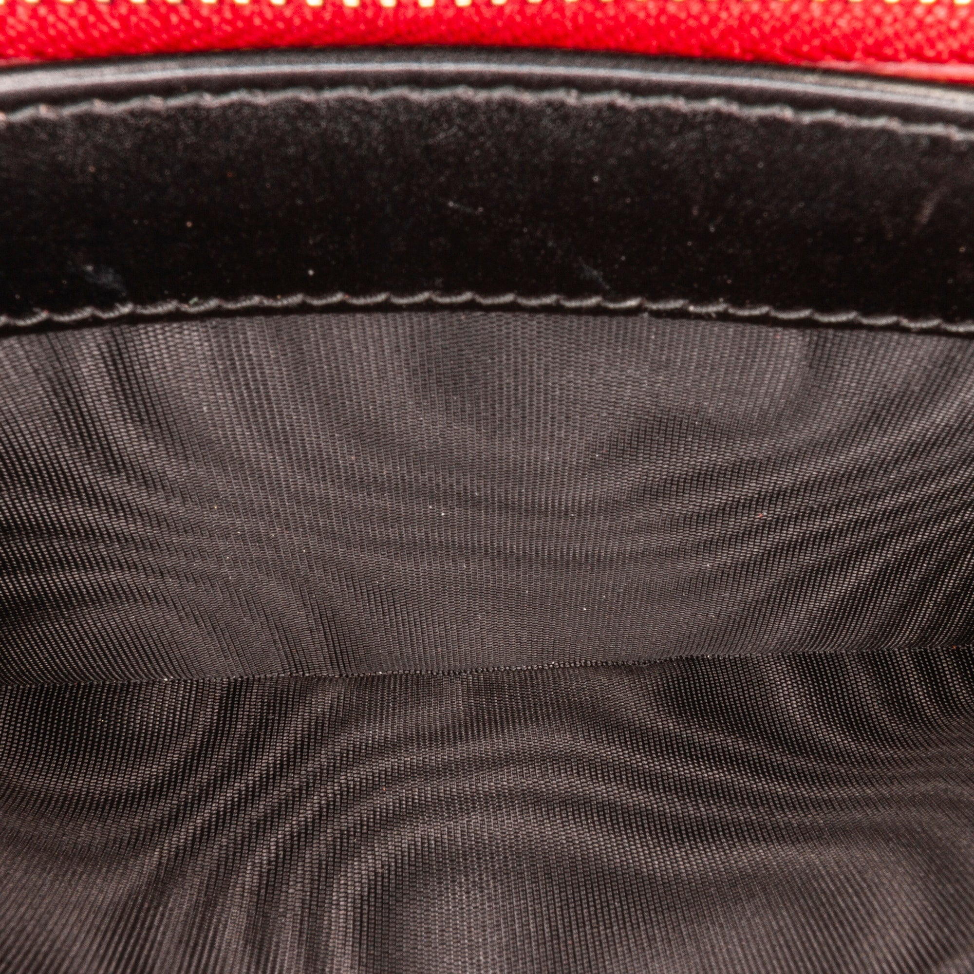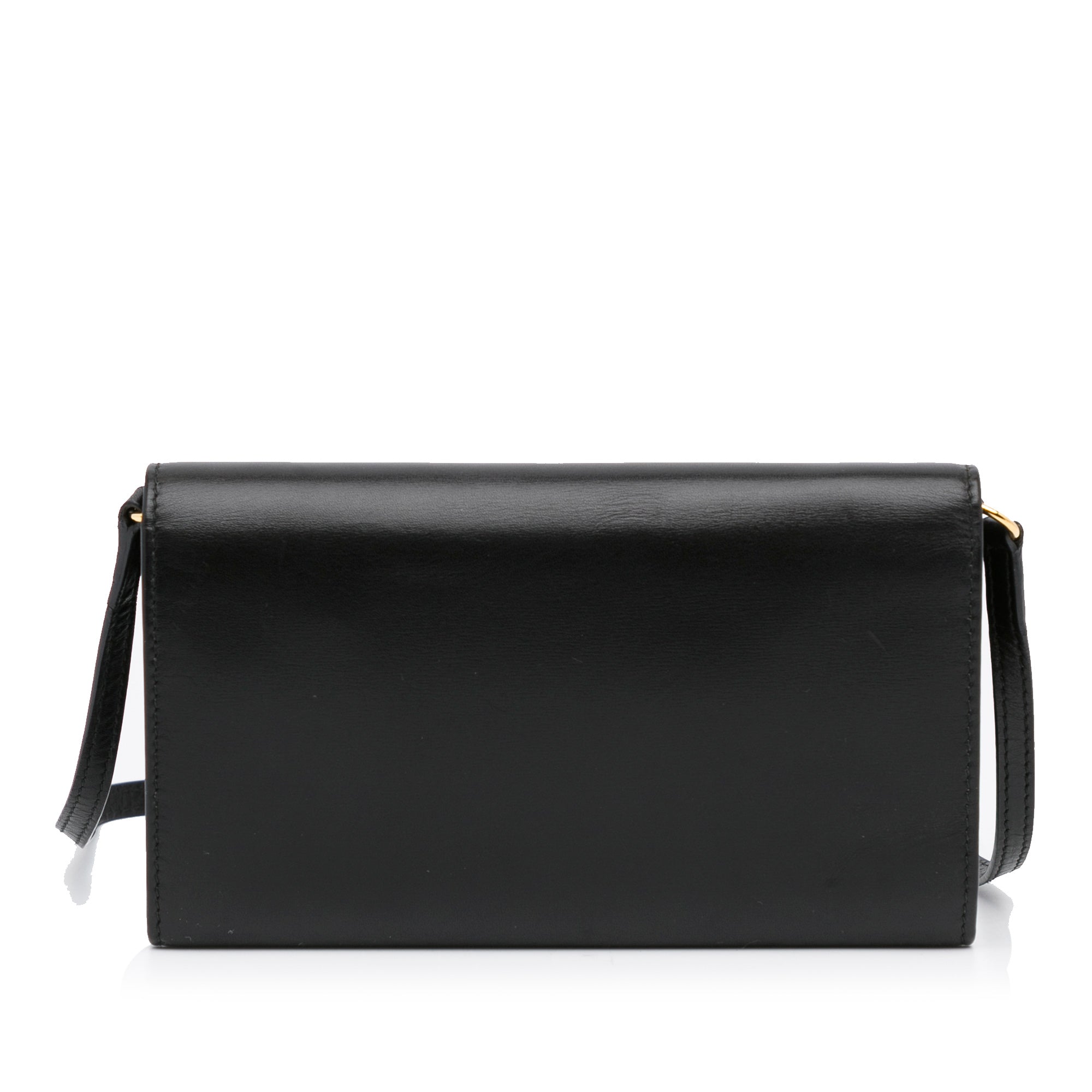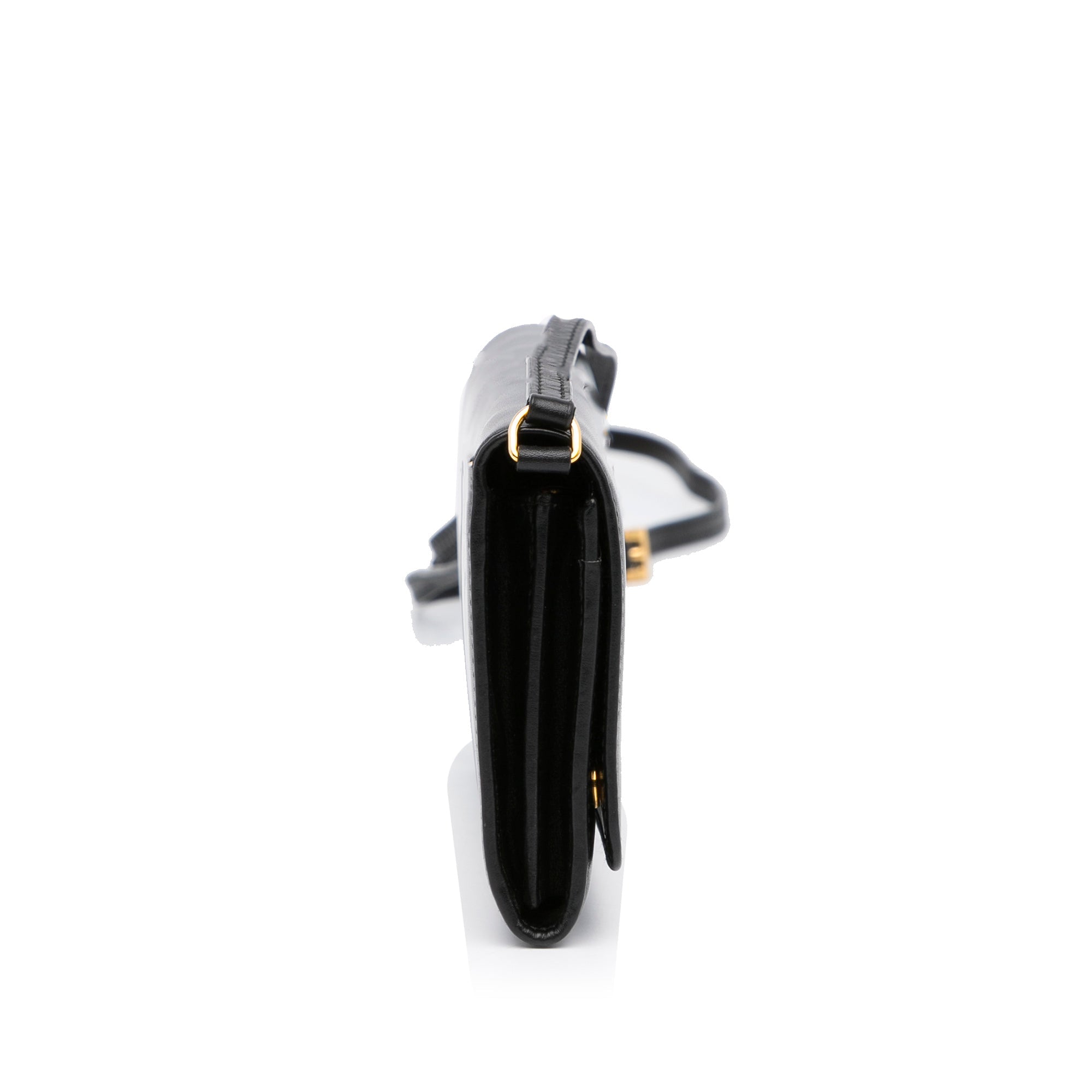 This crossbodyBag from the house of Prada was made of black leather. It has a flat leather strap. It is closed a front flap with magnetic closure. The interior offers the Bag pockets.