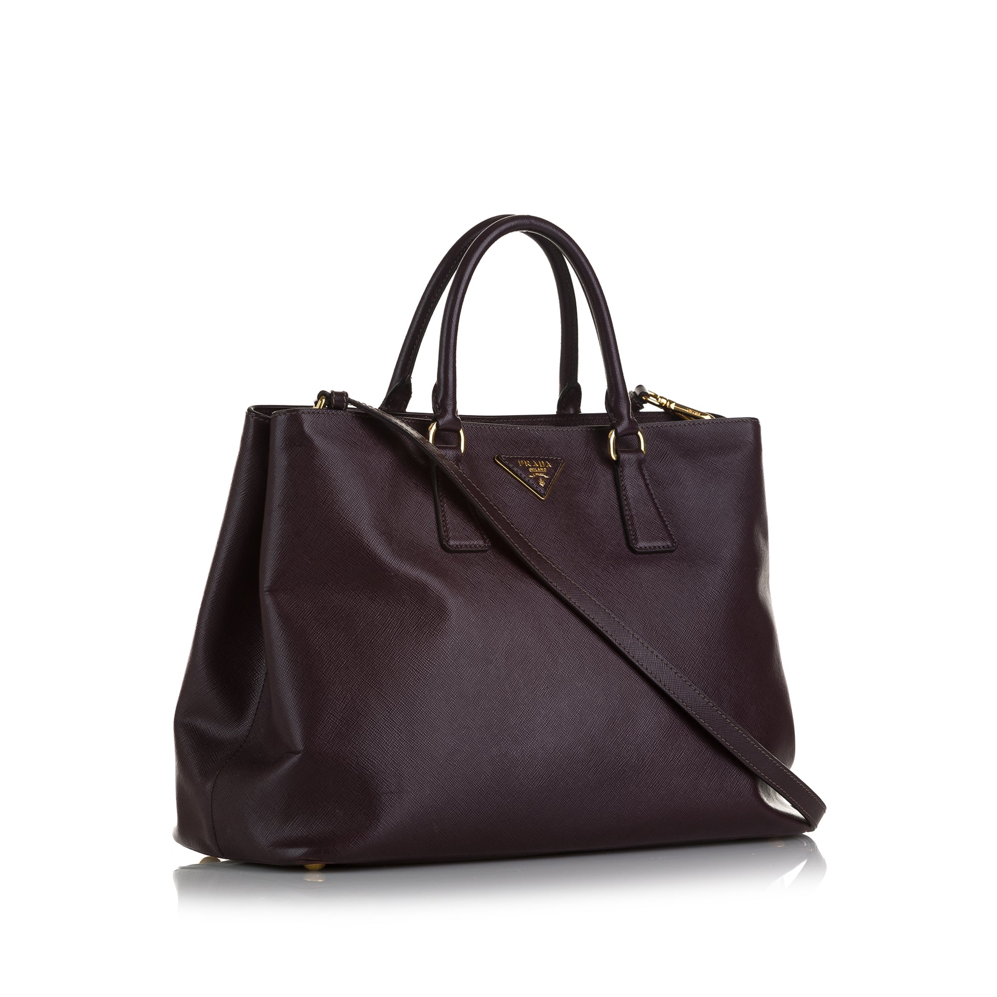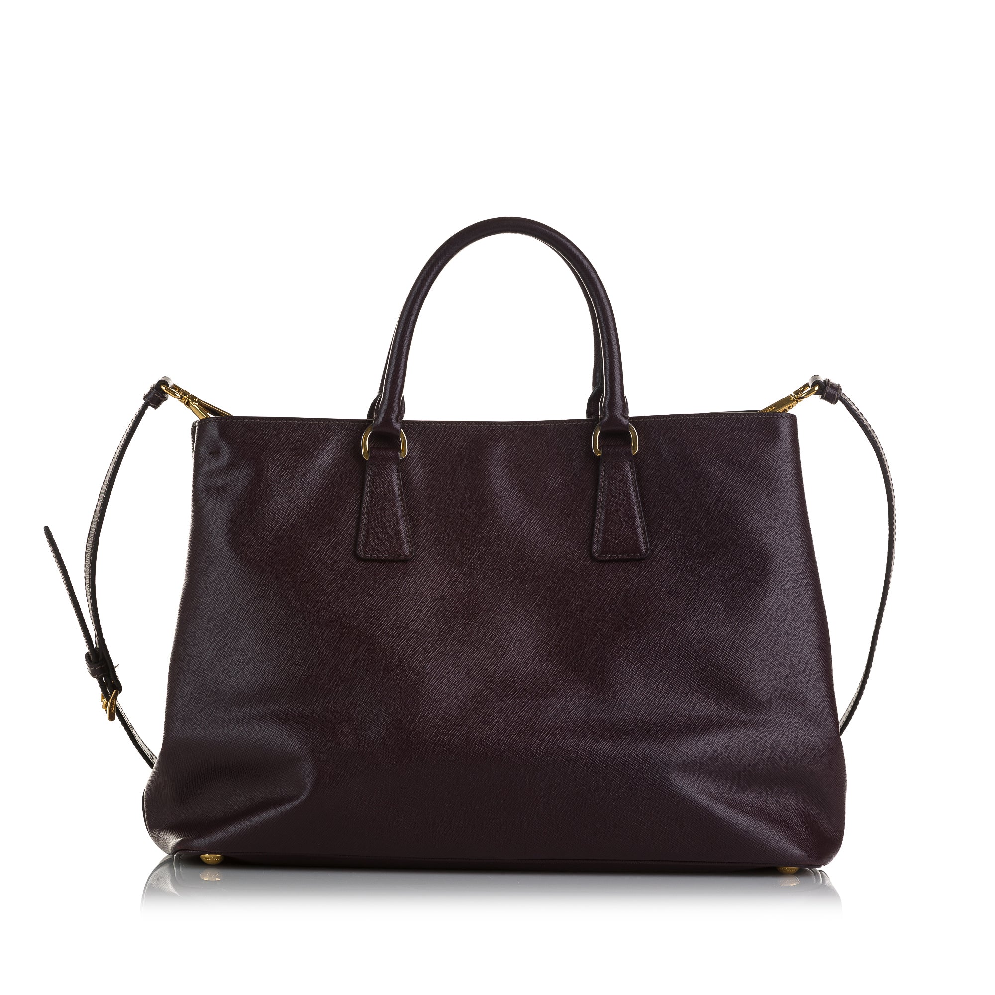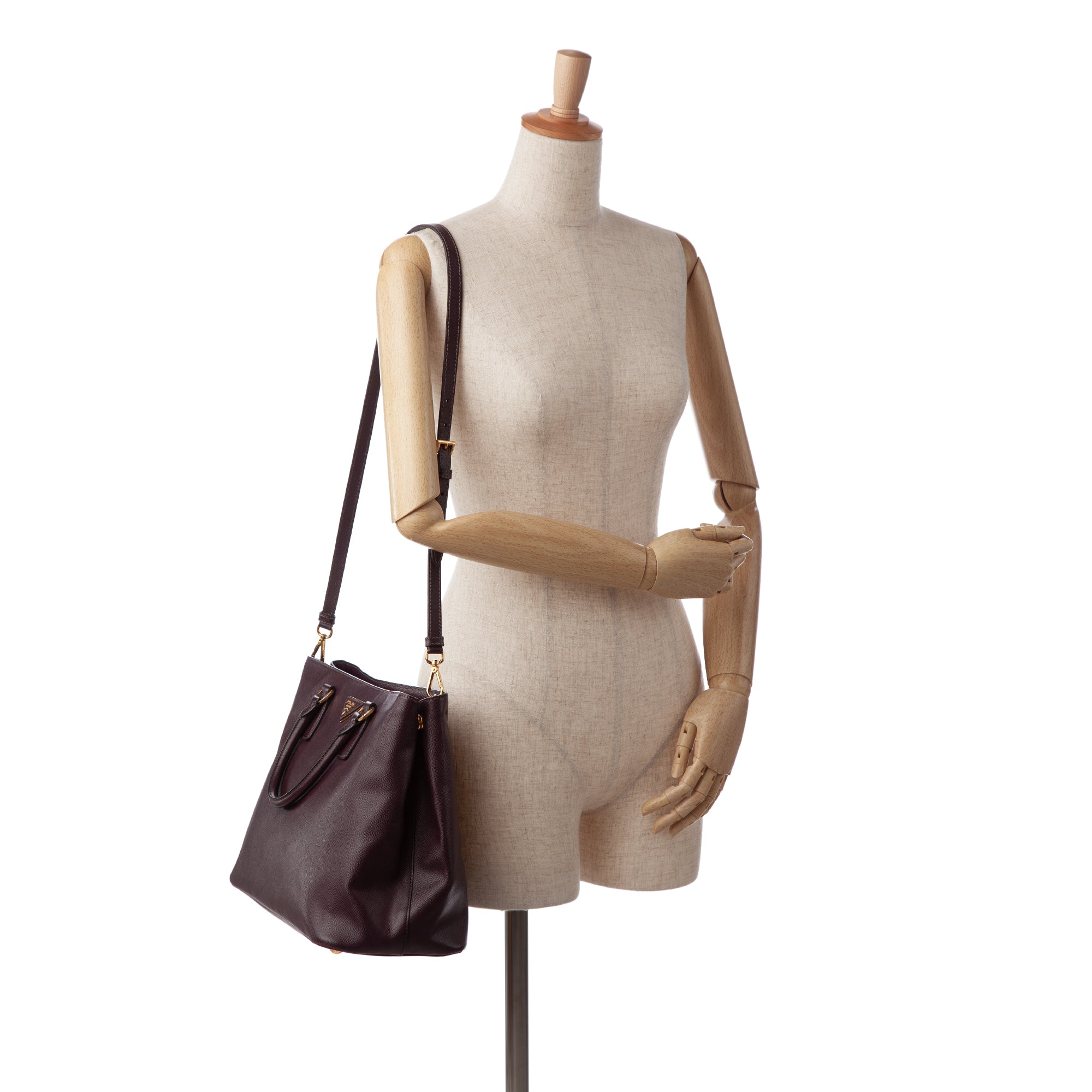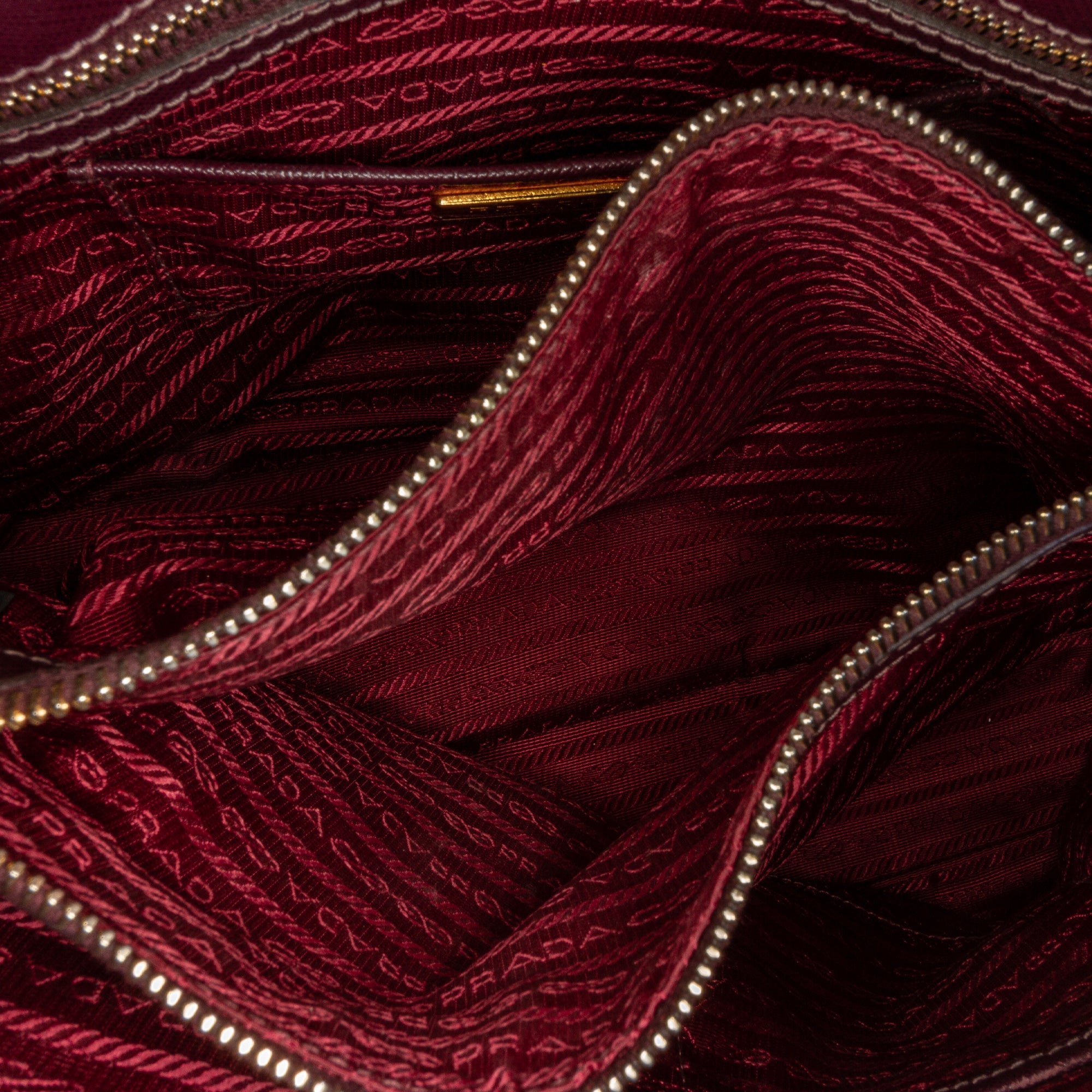 This Prada Cuir Twin has been crafted from dark brown softly shiny Saffiano leather and is surrounded by gold details. The Bag features rolled leather handles, a detachable leather shoulder strap, an open top, and an interior flap pocket. The Bag can be carried in the hand or loosely over the shoulder.