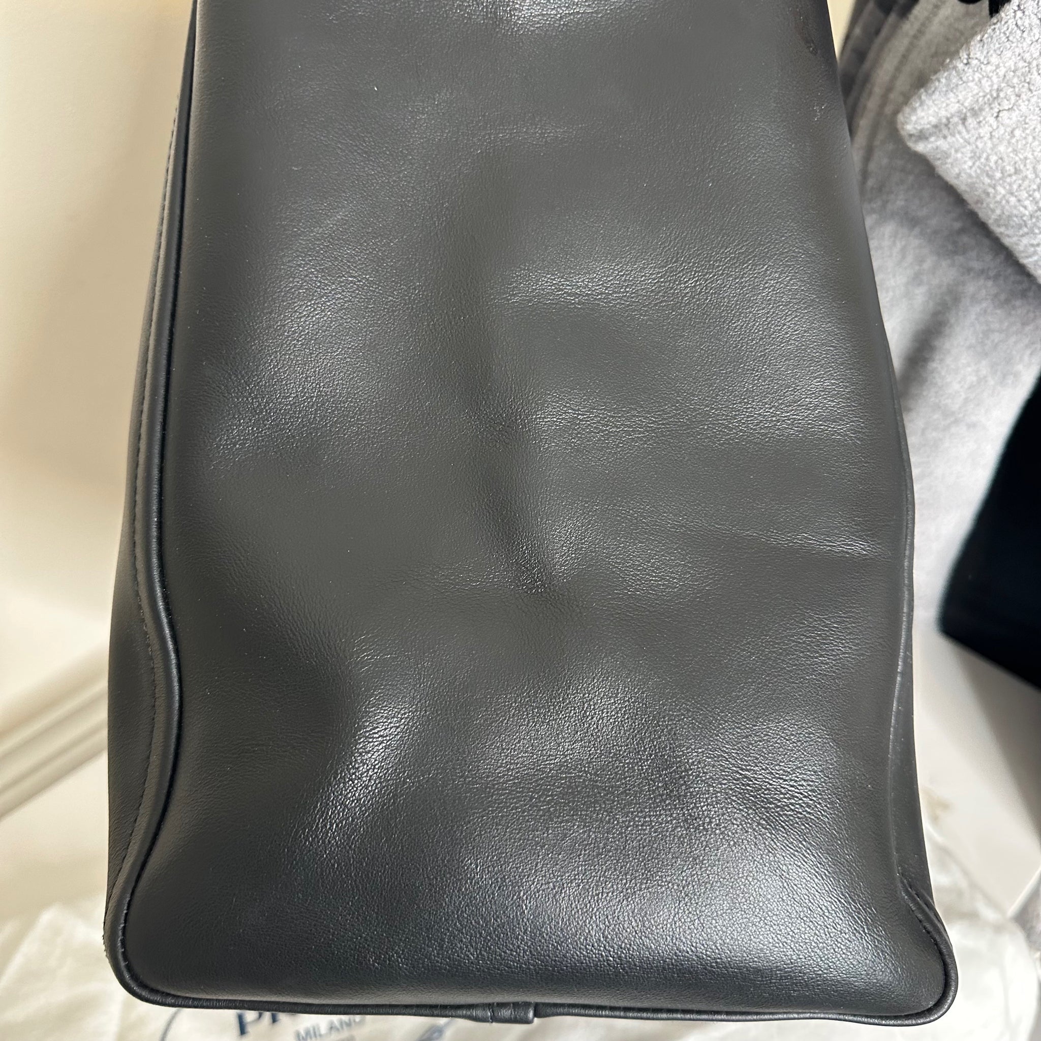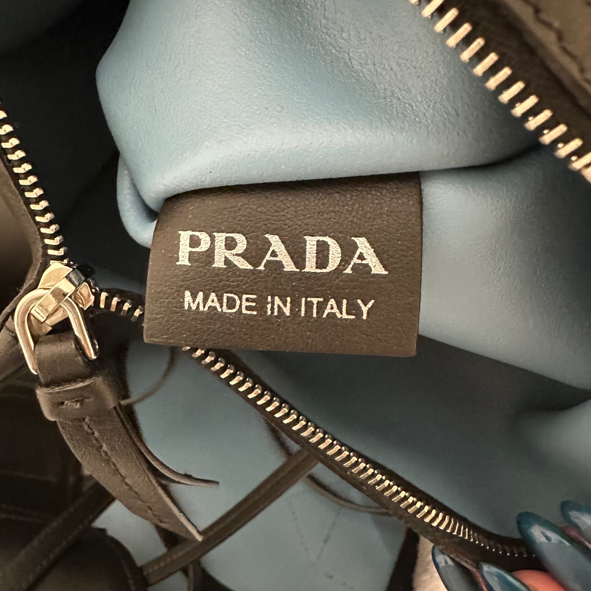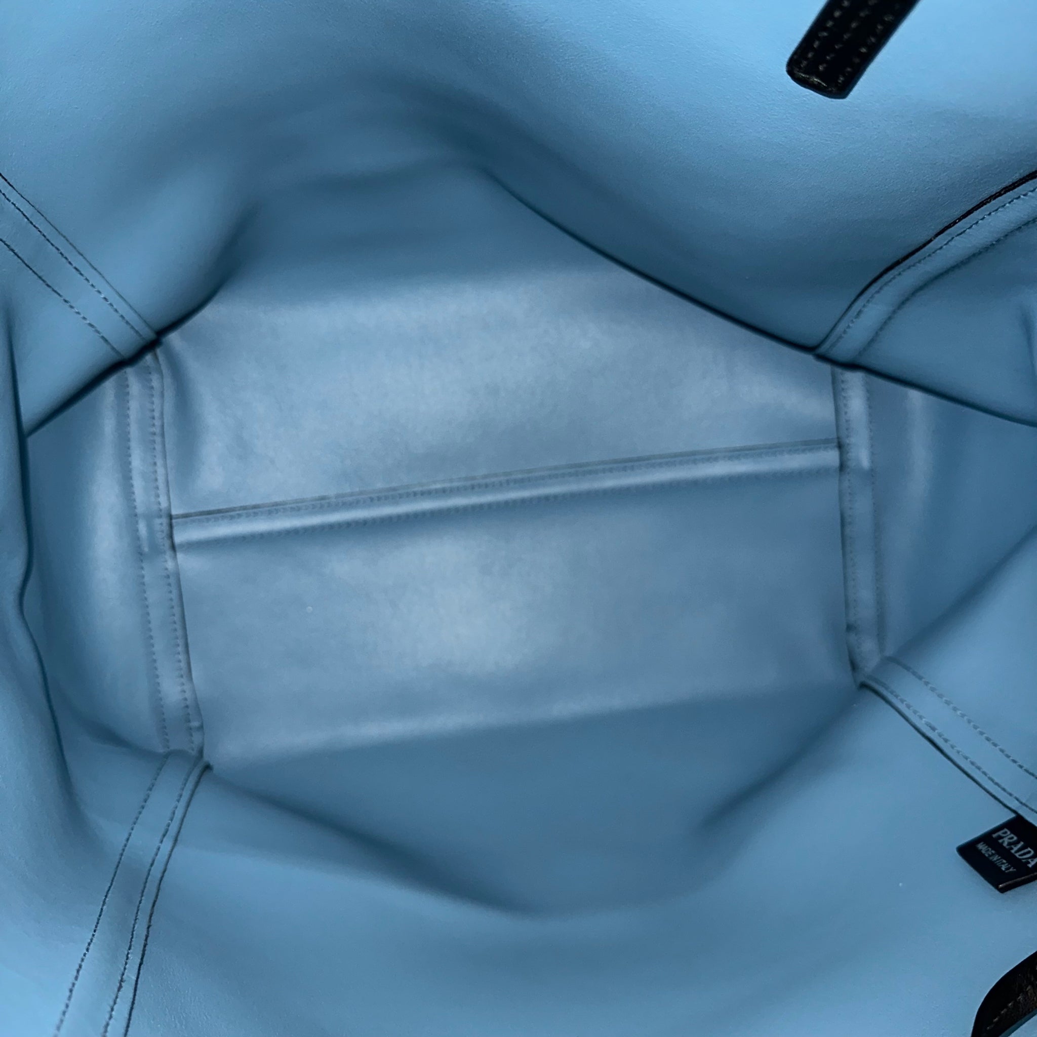 This Prada Lea Concept Tote handbag is in amazing condition with little wear. The interior has an amazing Tiffany blue leather. There is a slight pen mark at the top of the inside. The soft leather smells like a brand new car. The exterior has no scratche