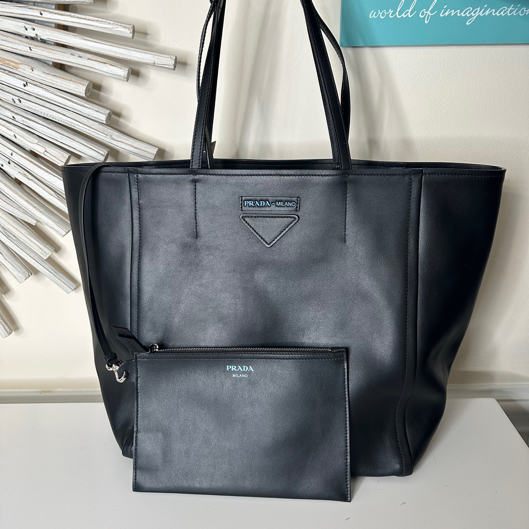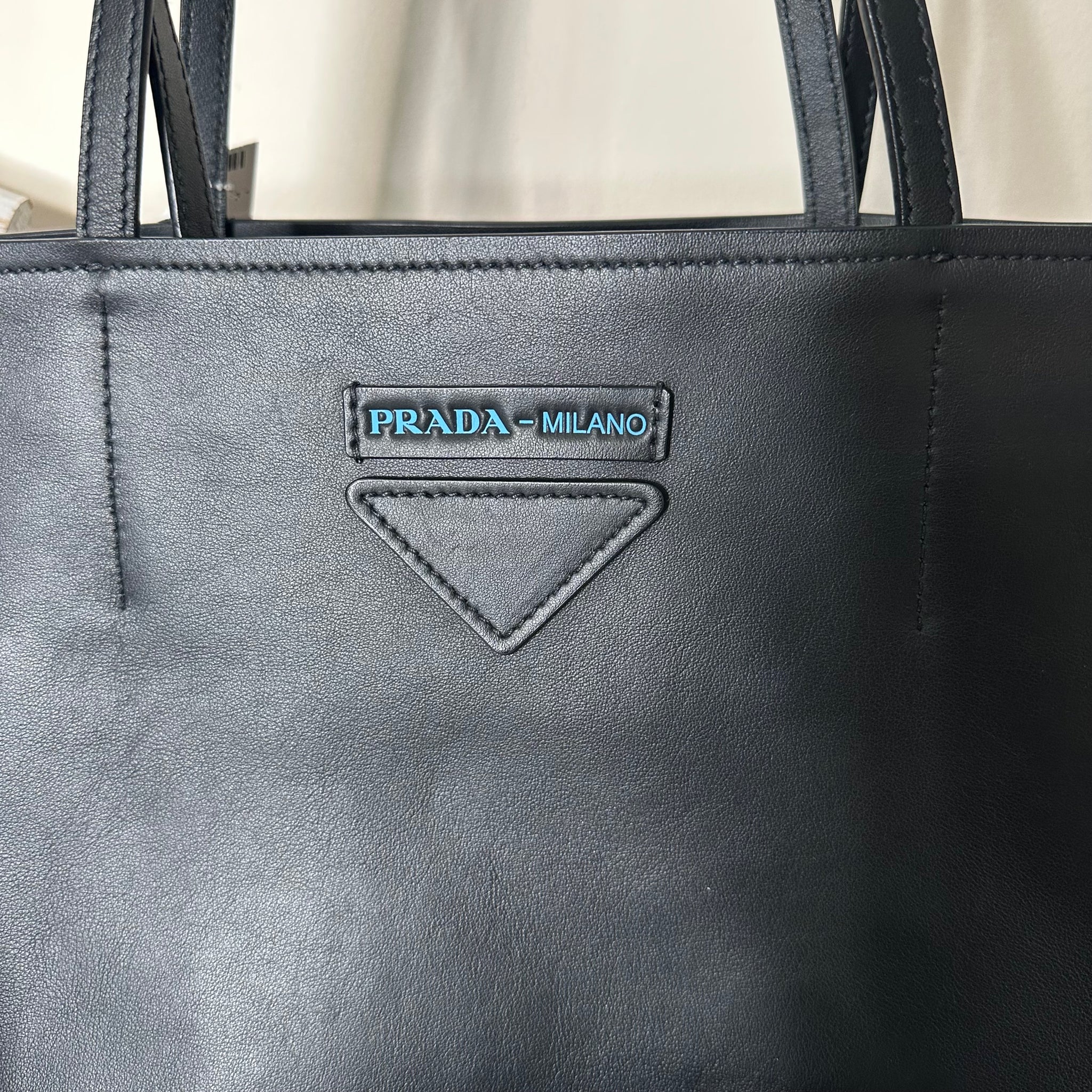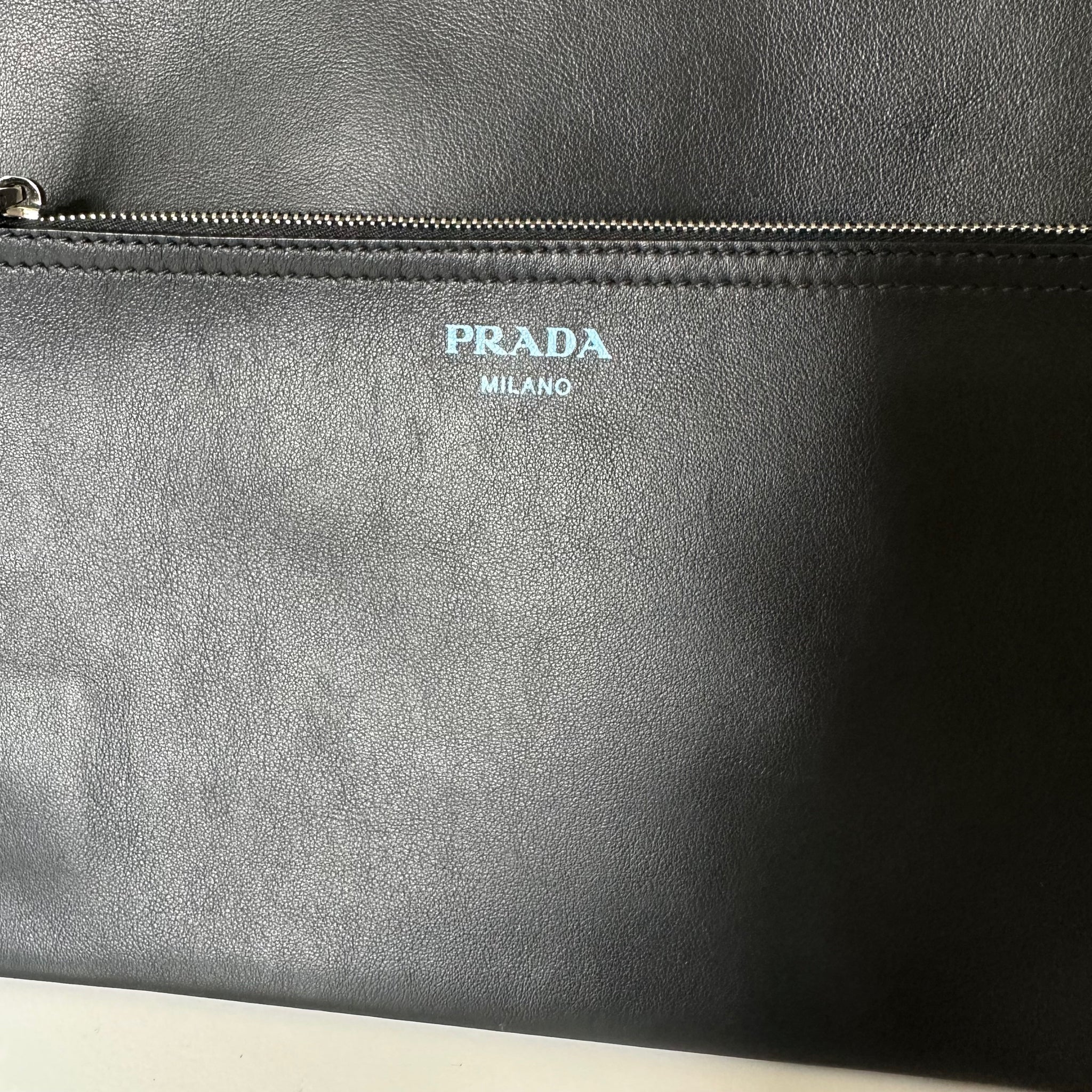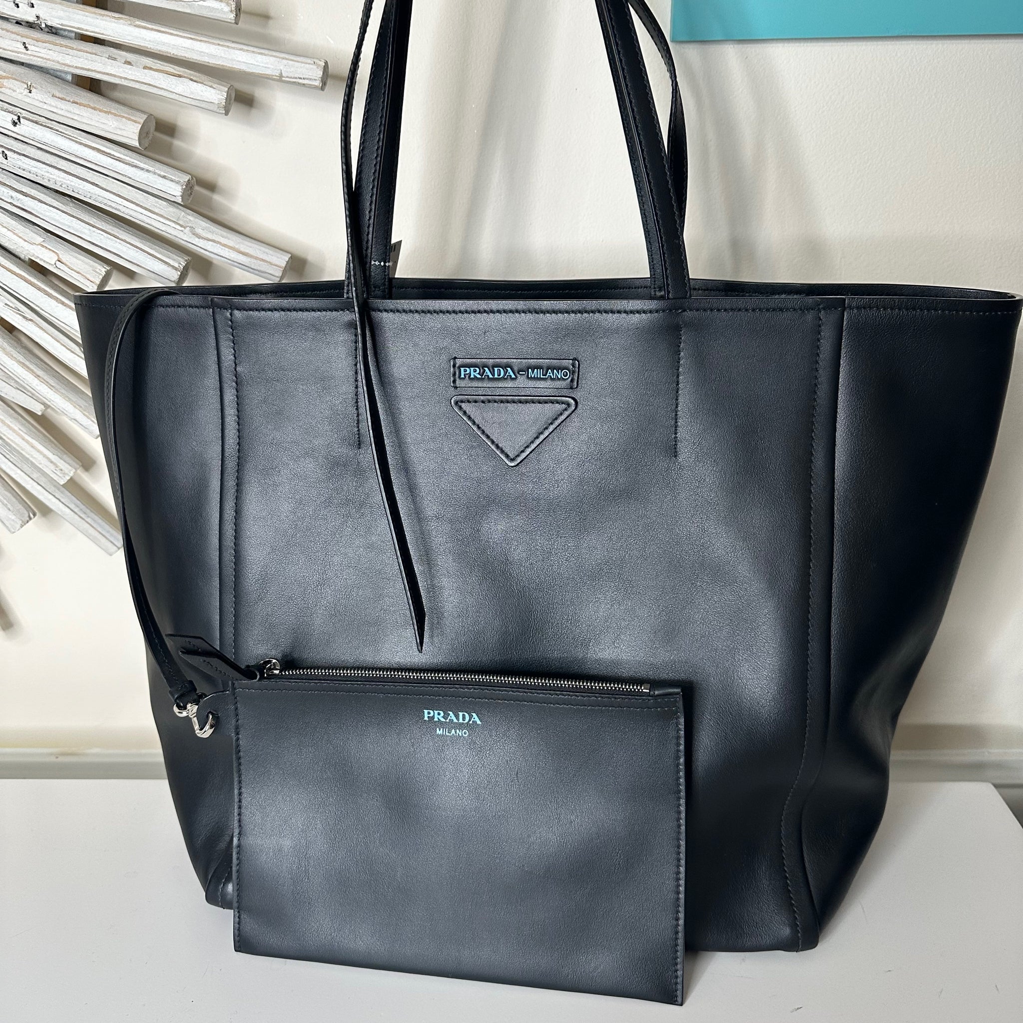 This Prada Lea Concept Tote handbag is in amazing condition with little wear. The interior has an amazing Tiffany blue leather. There is a slight pen mark at the top of the inside. The soft leather smells like a brand new car. The exterior has no scratche