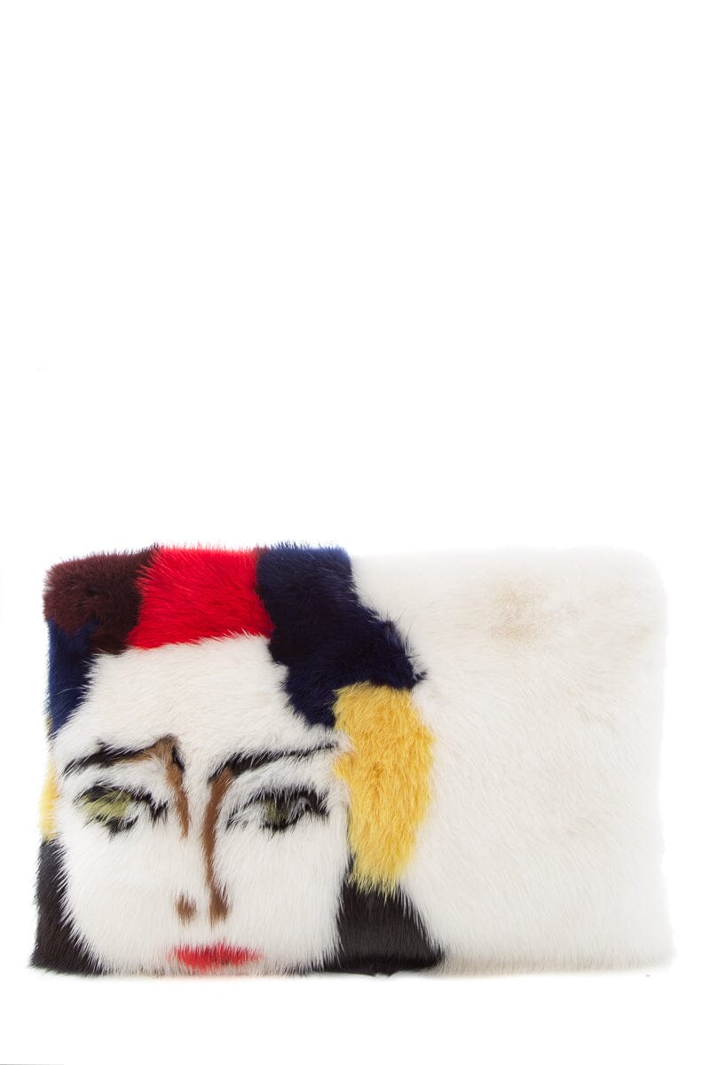 Prada Multicolor Mink Face Print Clutch. This item is in excellent condition.