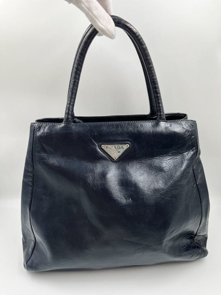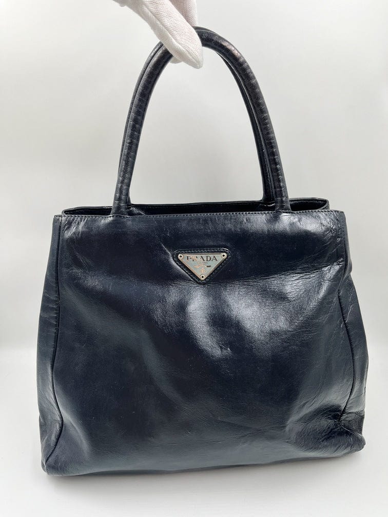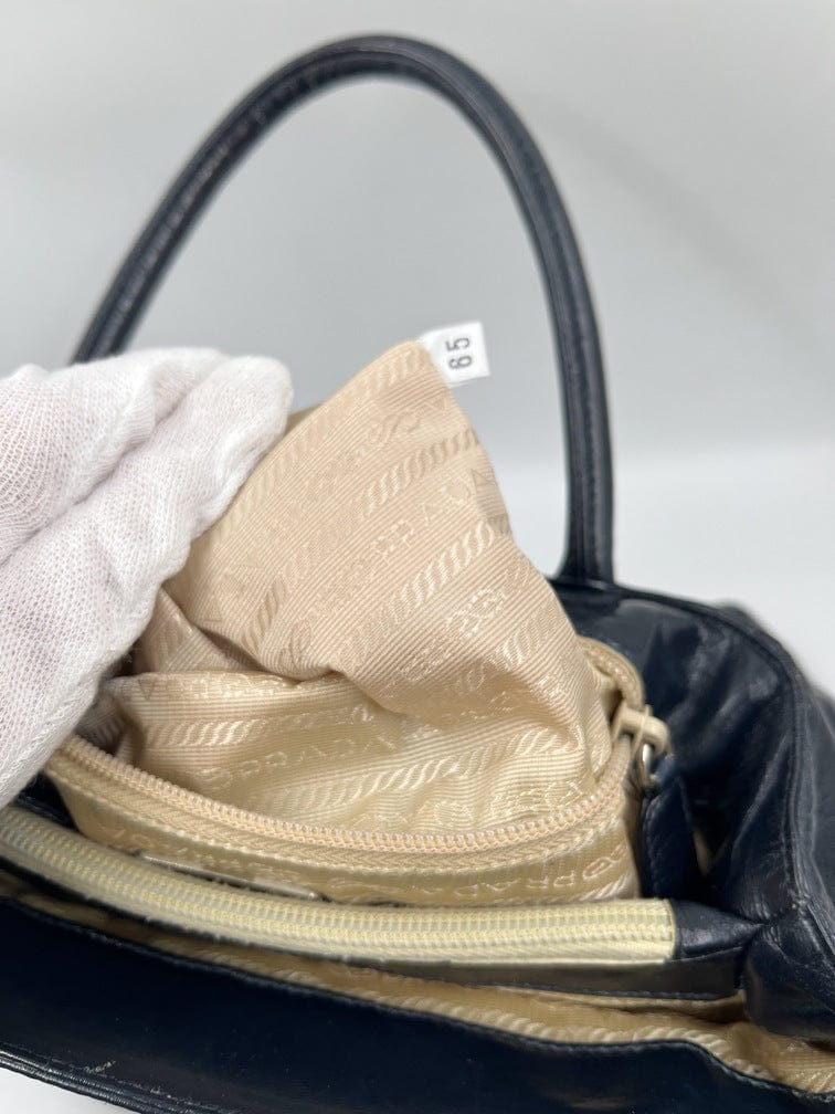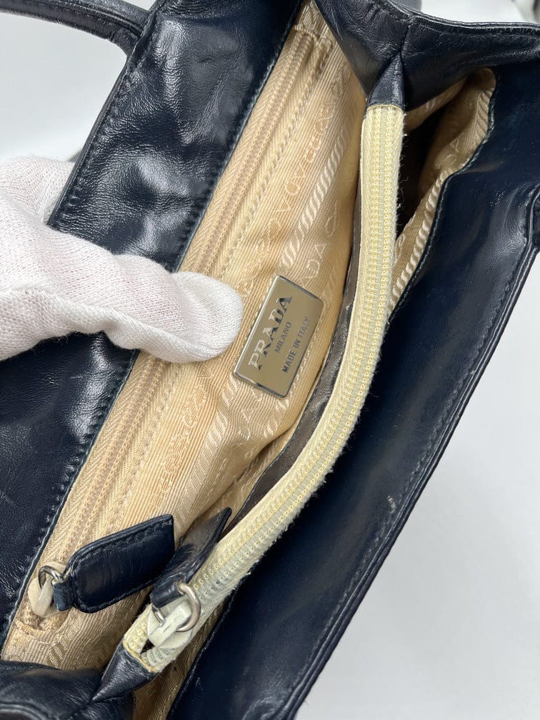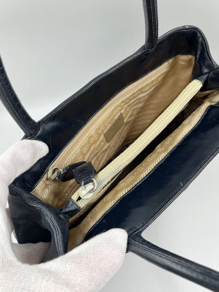 A super cool Prada tote in a buttery soft navy leather, this style is timeless and looks very similar to the current collection. Inside the bag there are two main compartments, a middle zipped compartment and a further zipped pocket on the back wall for your valuables. The bag is lined with the iconic Prada logo nylon lining.