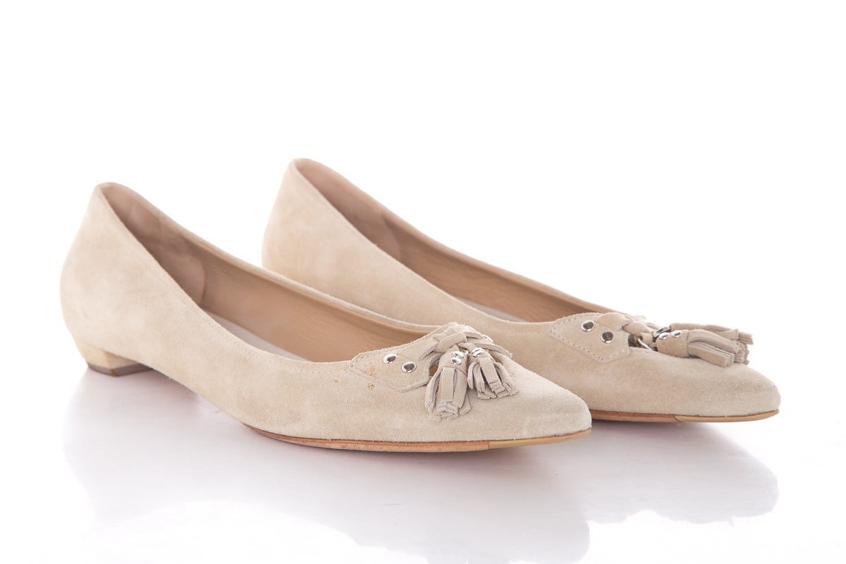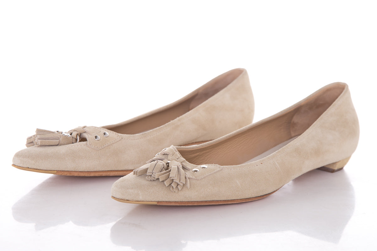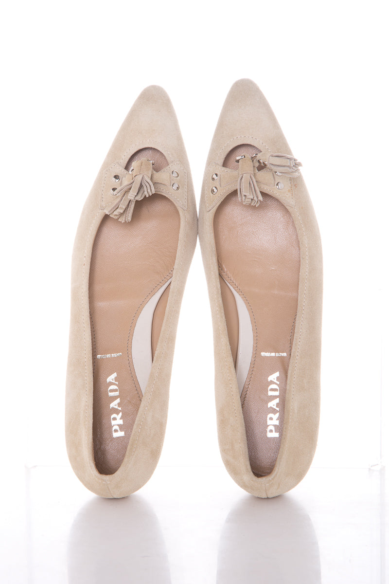 Prada Nude Suede Fringe Tassel Flats. This item is in very good condition.