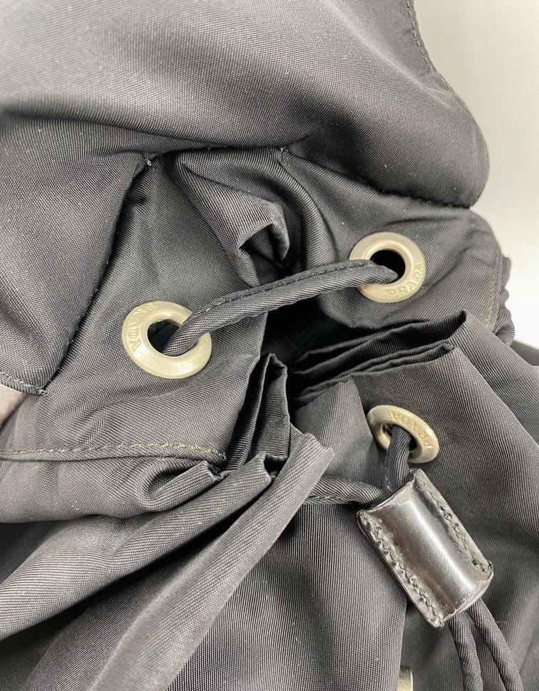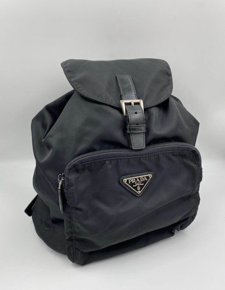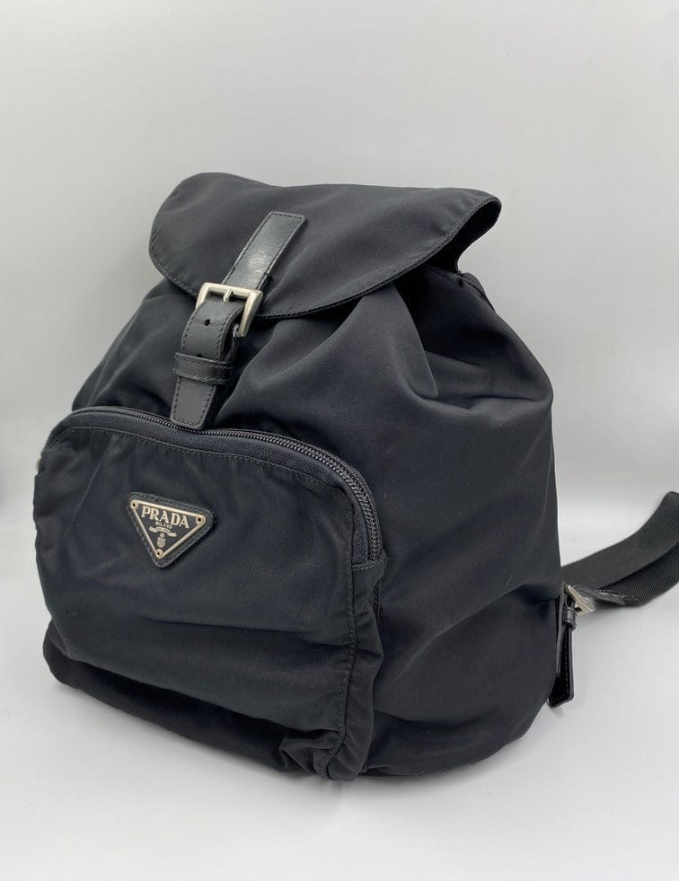 This vintage cult backpack from Prada is the ultimate throwback bag. When Prada released its original nylon backpack in 1984 it was an instant hit. This nylon backpack with a modern, minimalist design is decorated with the Prada enamel triangle logo. Underneath the flap with a leather strap and buckle, is a drawstring closure. There are two adjustable webbing shoulder straps with Prada branded buckles. There is one zipped pocket on the front. Inside features the iconic Prada logo lining and an interior zipped pocket for valuables. Lightweight, super cool yet durable and easy to wipe down!