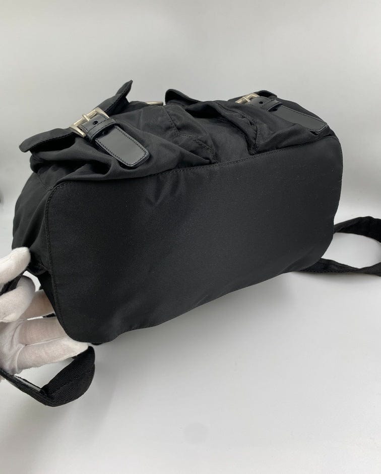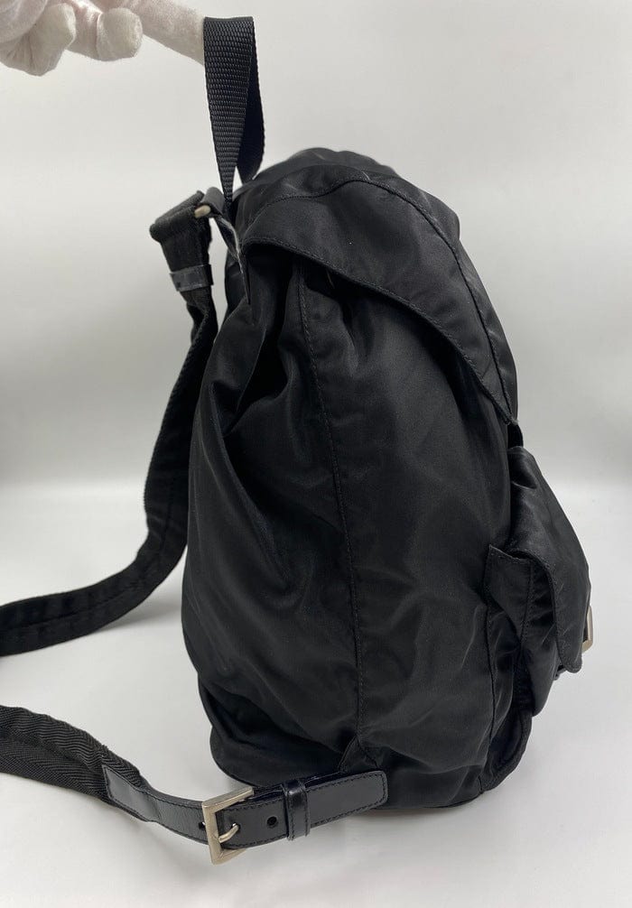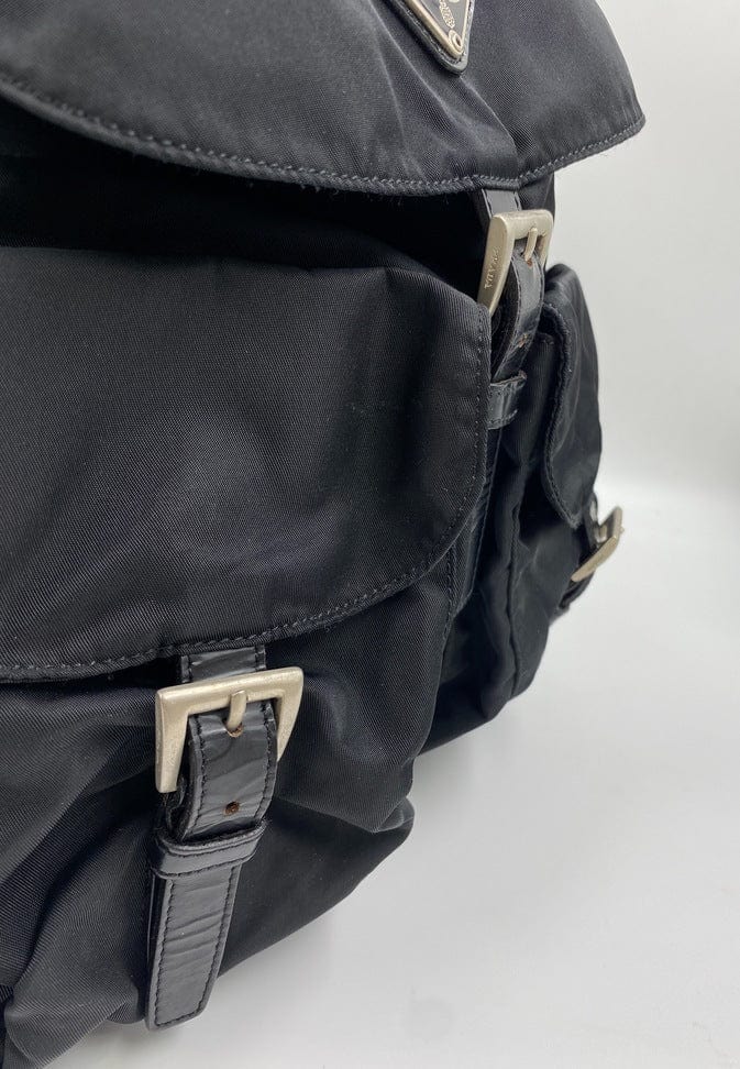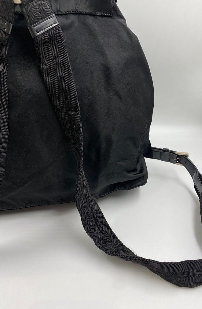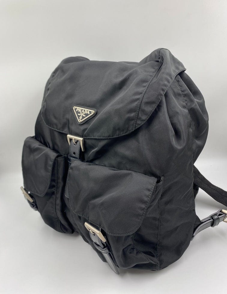 This vintage cult backpack from Prada is the ultimate throwback bag. When Prada released its original nylon backpack in 1984 it was an instant hit. This nylon backpack with a modern, minimalist design is decorated with the Prada enamel triangle logo. Underneath the flap with a leather strap and buckle, is a drawstring closure. There are two adjustable webbing shoulder straps with Prada branded buckles. There are two buckled pockets on the front. Inside features the iconic Prada logo lining and an interior zipped pocket for valuables. Lightweight, super cool yet durable and easy to wipe down!