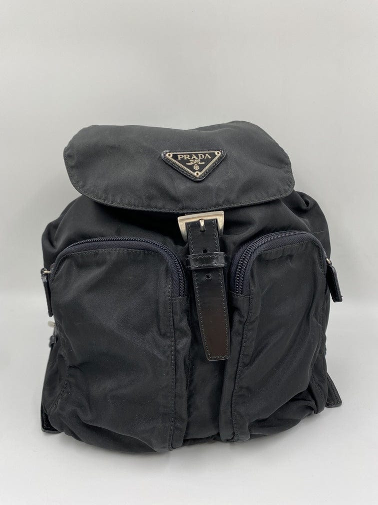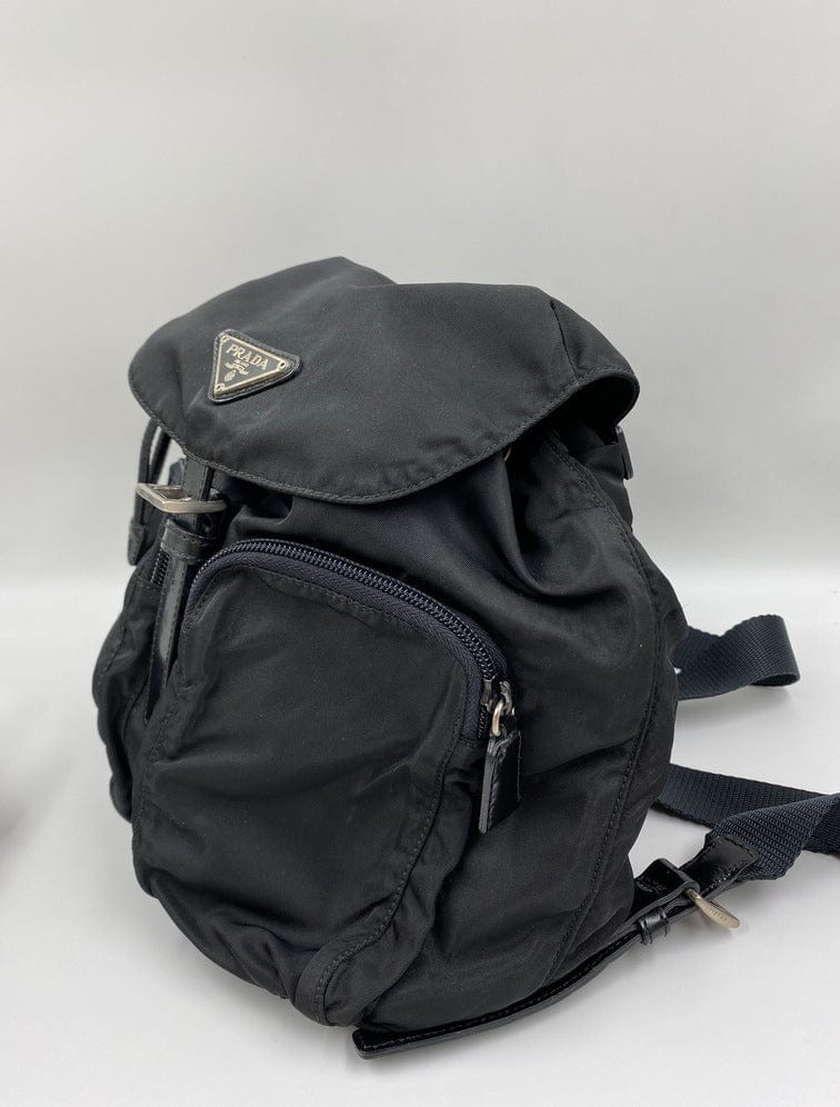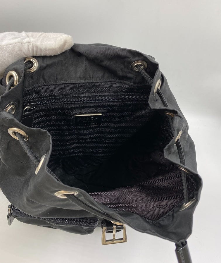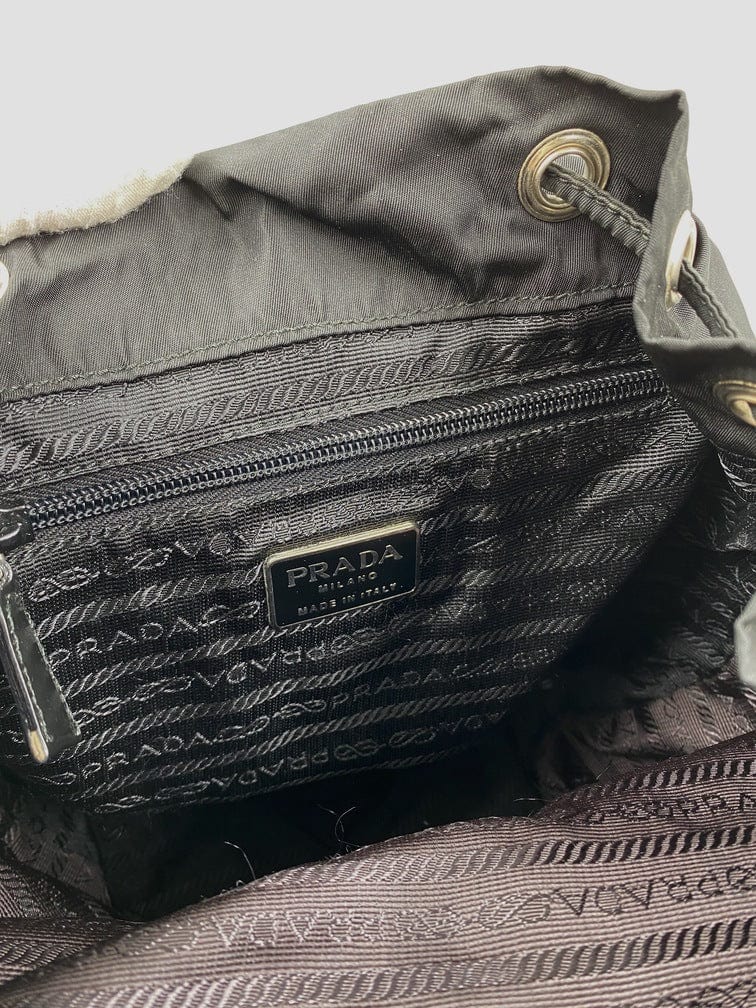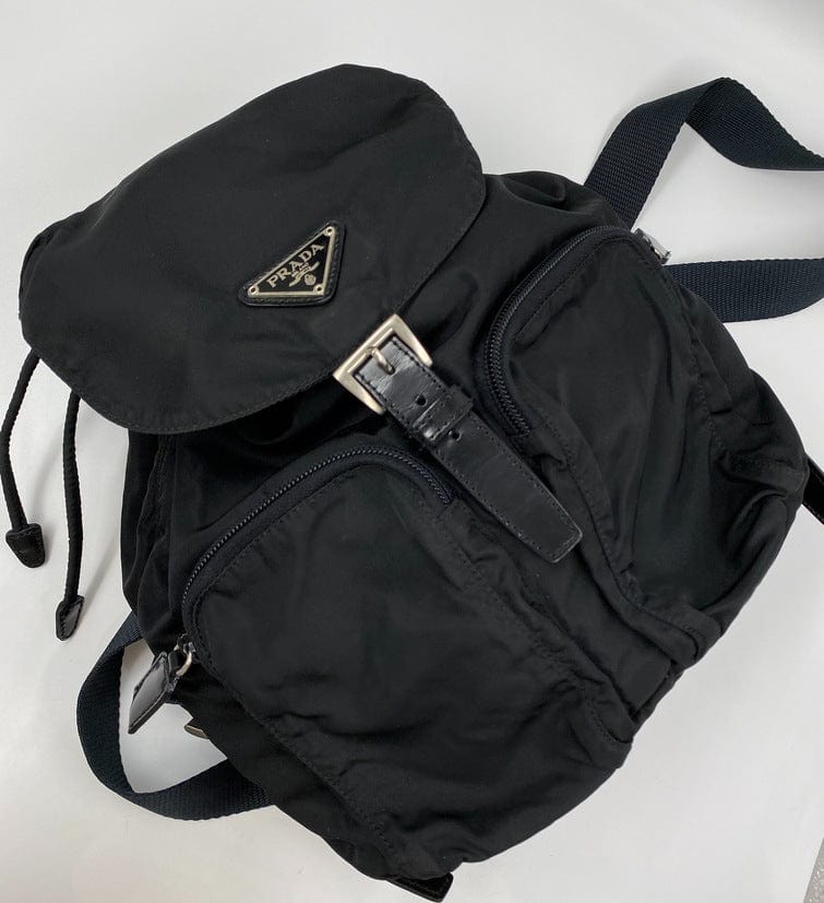 This vintage cult backpack from Prada is the ultimate throwback bag. When Prada released its original nylon backpack in 1984 it was an instant hit. This nylon backpack with a modern, minimalist design is decorated with the Prada enamel triangle logo. Underneath the flap with a leather strap and buckle, is a drawstring closure. There are two adjustable webbing shoulder straps with leather details and Prada branded buckles. There are two zipped pockets on the front. Inside features the iconic Prada logo lining and an interior zipped pocket for valuables. Lightweight, super cool yet durable and easy to wipe down!
