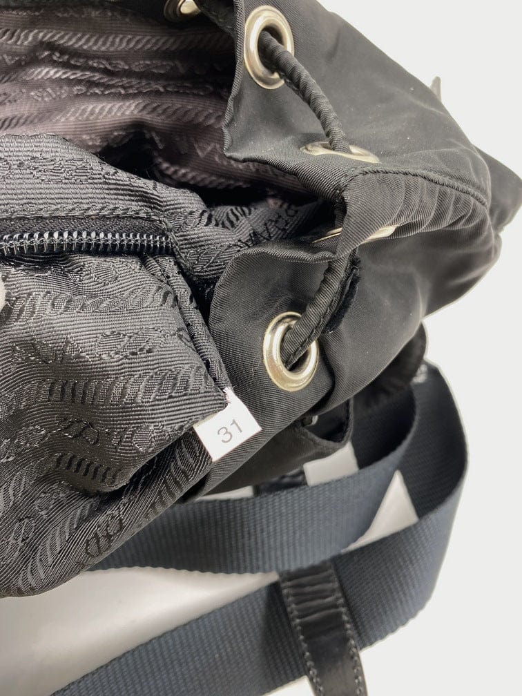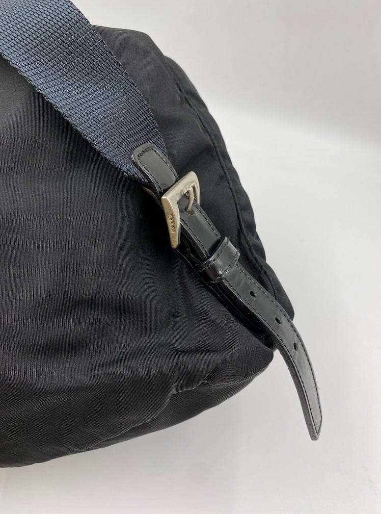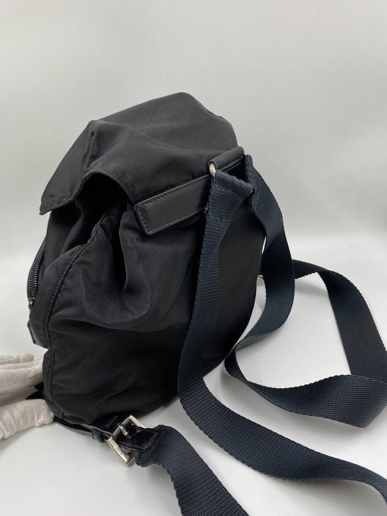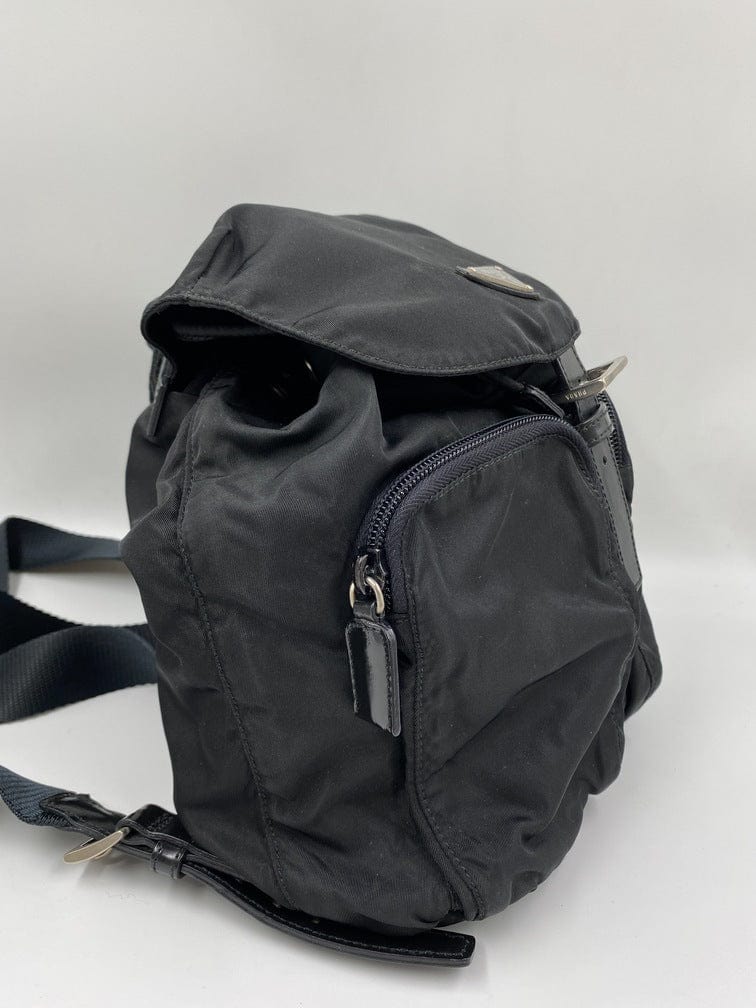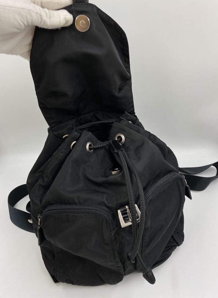 This vintage cult backpack from Prada is the ultimate throwback bag. When Prada released its original nylon backpack in 1984 it was an instant hit. This nylon backpack with a modern, minimalist design is decorated with the Prada enamel triangle logo. Underneath the flap with a leather strap and buckle, is a drawstring closure. There are two adjustable webbing shoulder straps with leather details and Prada branded buckles. There are two zipped pockets on the front. Inside features the iconic Prada logo lining and an interior zipped pocket for valuables. Lightweight, super cool yet durable and easy to wipe down!