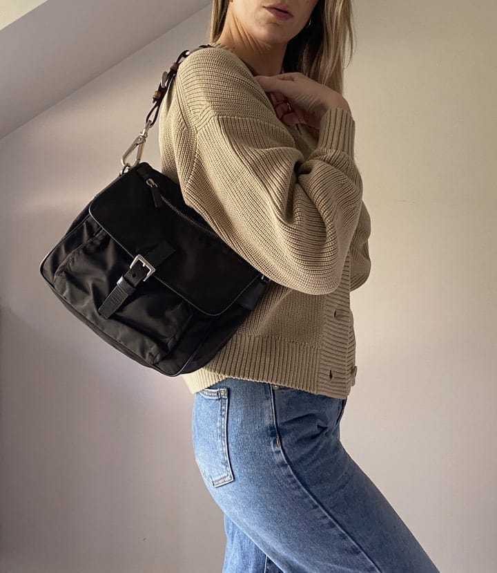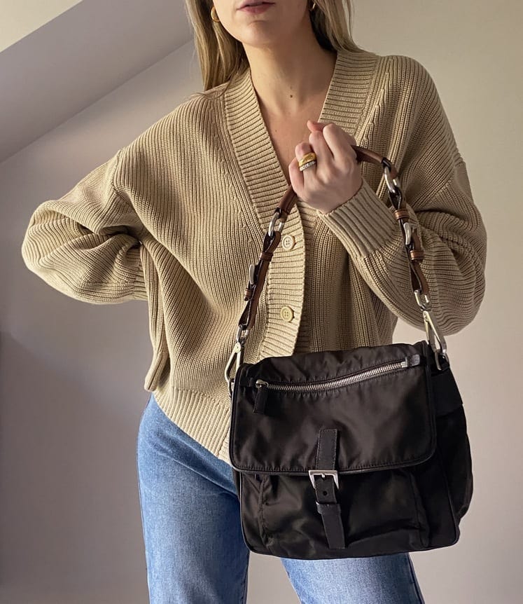Prada Nylon Bag with Tan Leather StrapPrada Nylon Bag with Tan Leather Strap