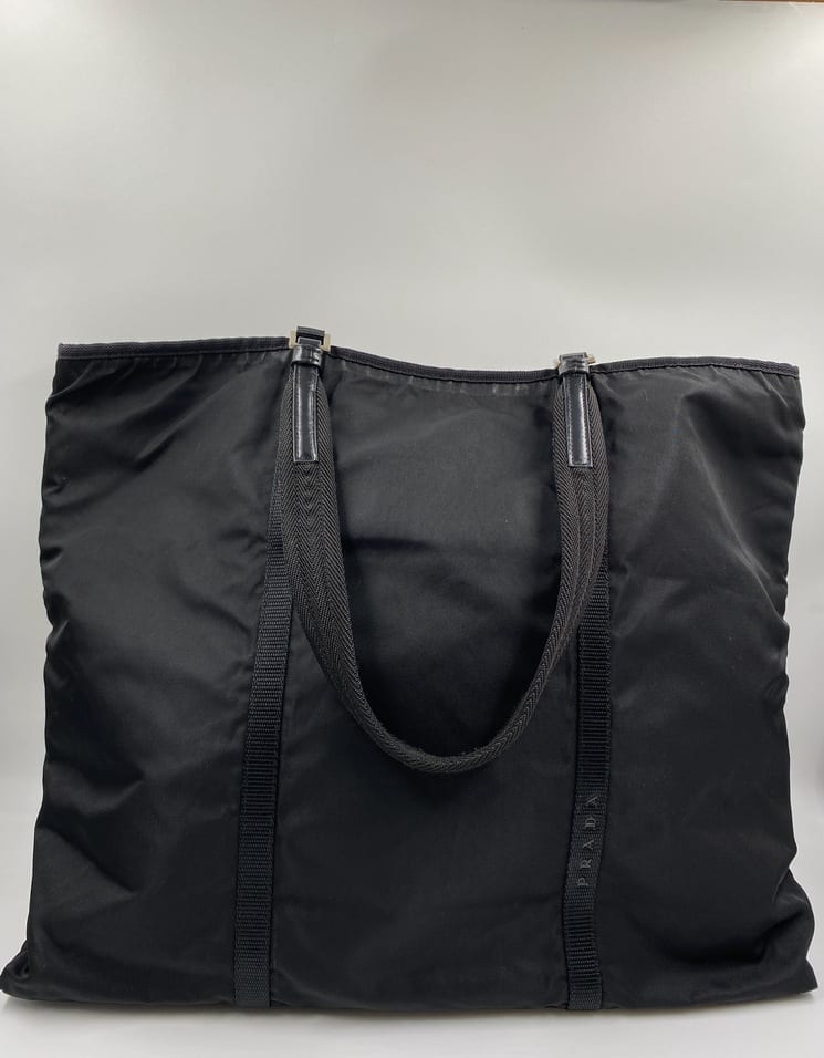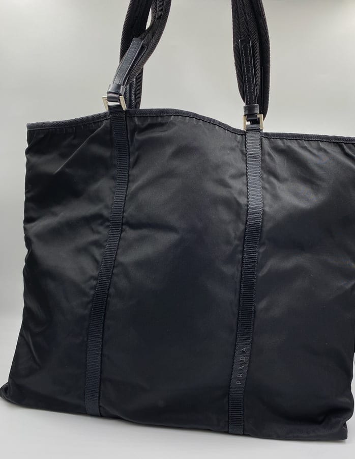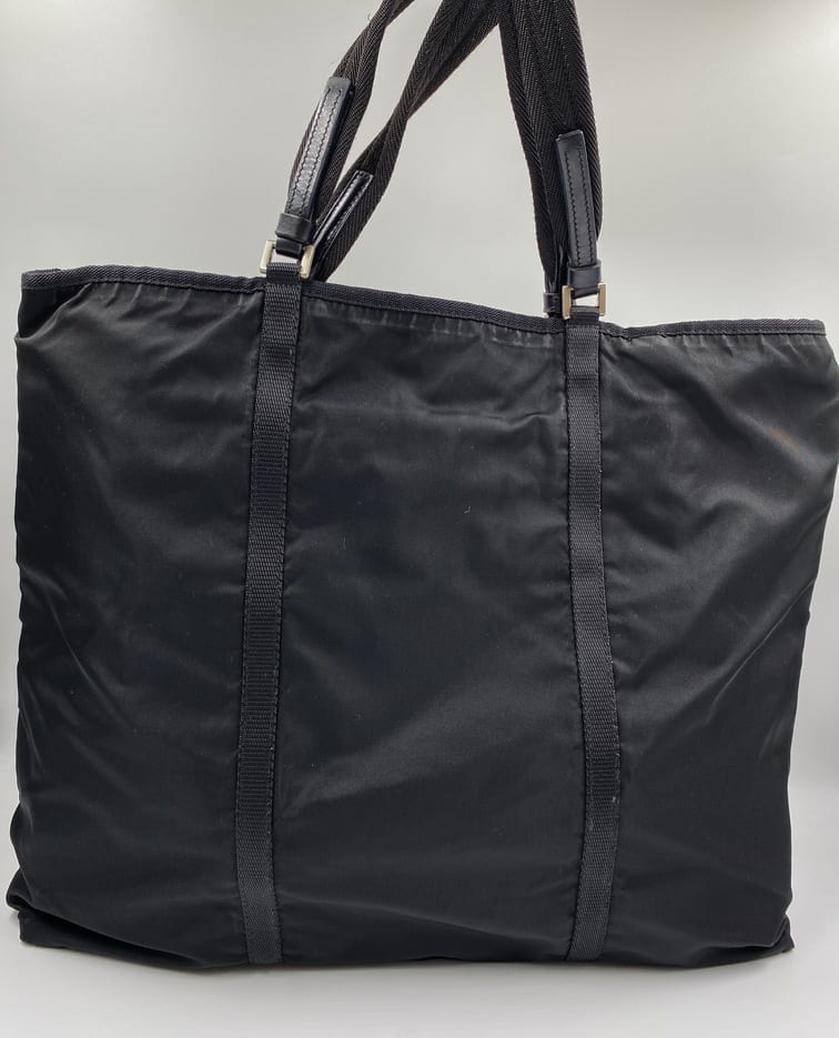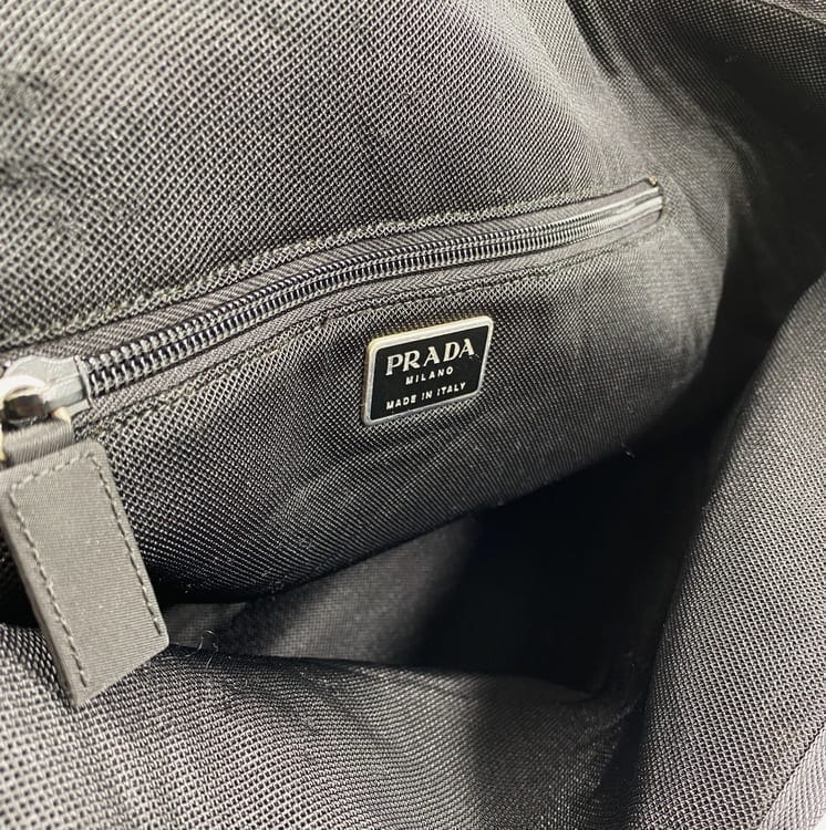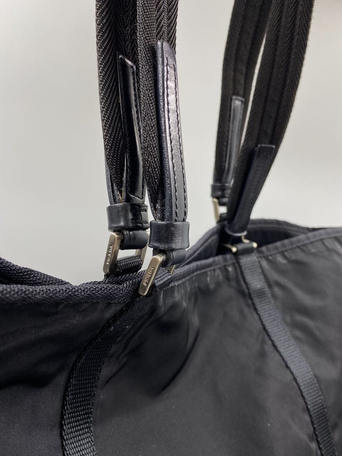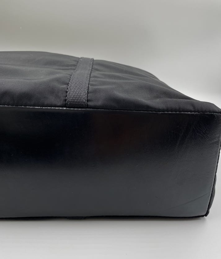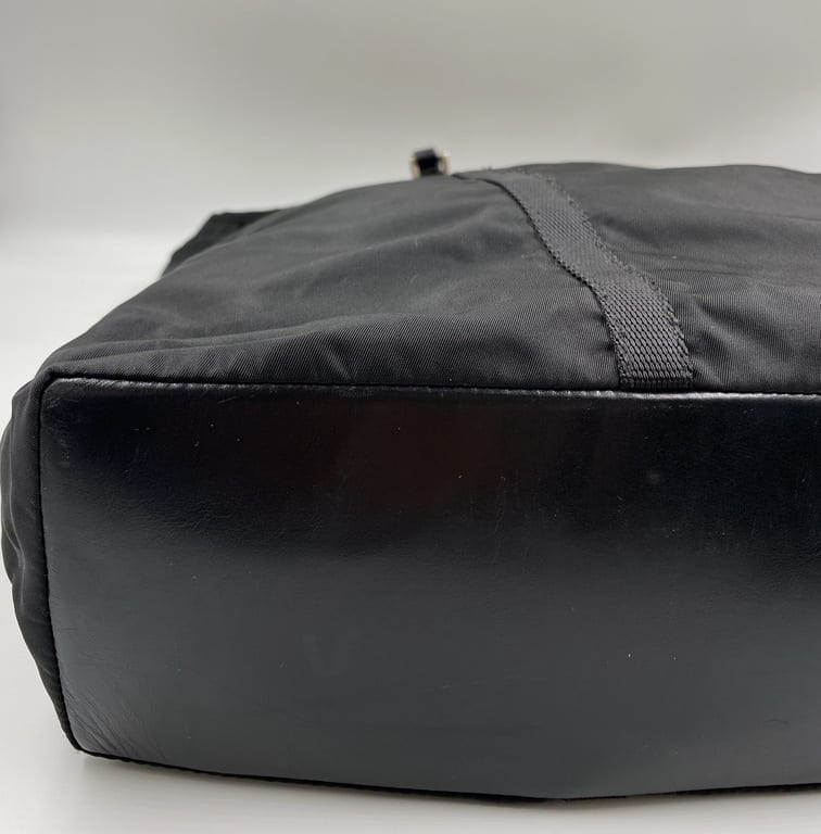 A great work or school Prada nylon tote for carrying books or a laptop. This bag is slightly padded to give your laptop some protection. There is a leather base also which ensures a longer lasting and hardwearing tote. Webbing shoulder straps which fit over the shoulder are reinforced with leather and feature Prada branded silver hardware. Inside there is a zipped pocket for valuables and also an additional purse.