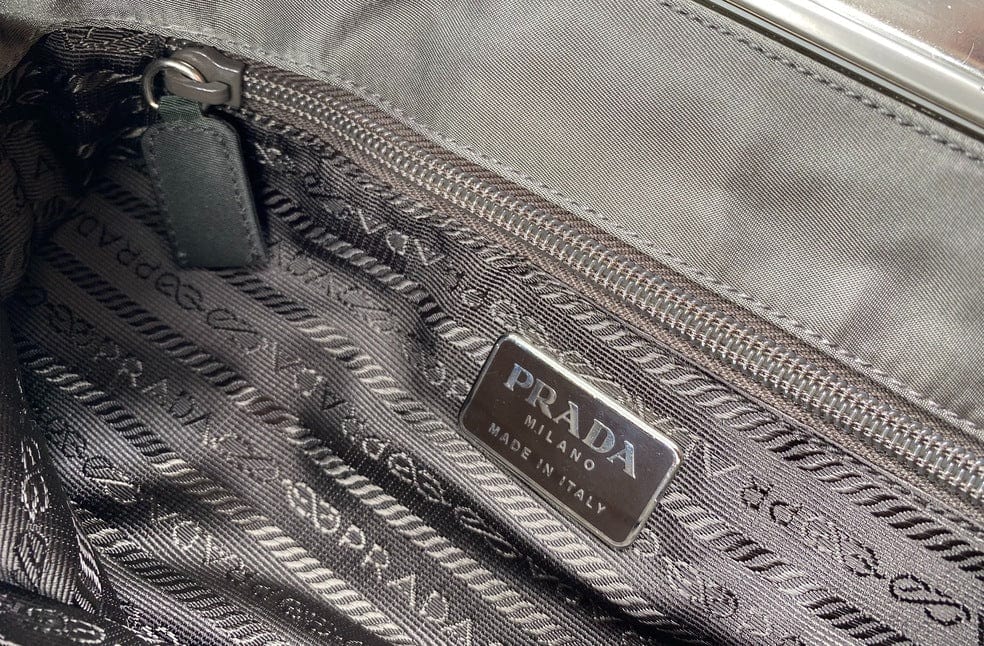 Inside features the Prada logo lining and an interior zipped pocket for valuables. Both inside and outside is stain free.