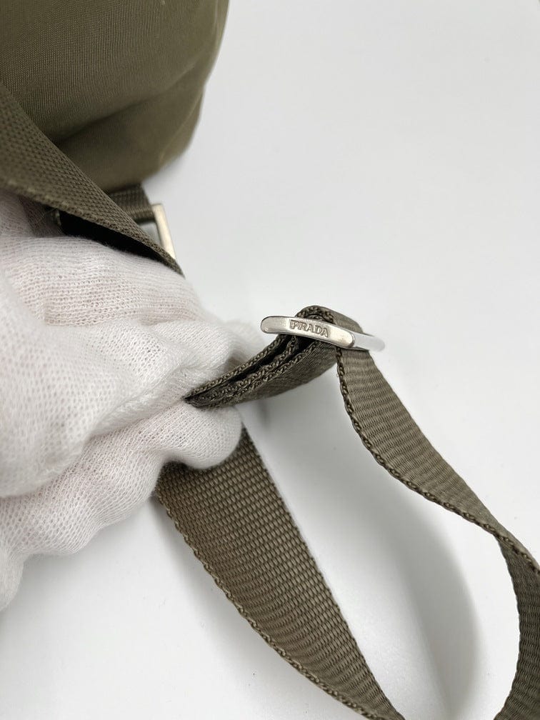 There are two adjustable webbing shoulder straps with Prada branded buckles.