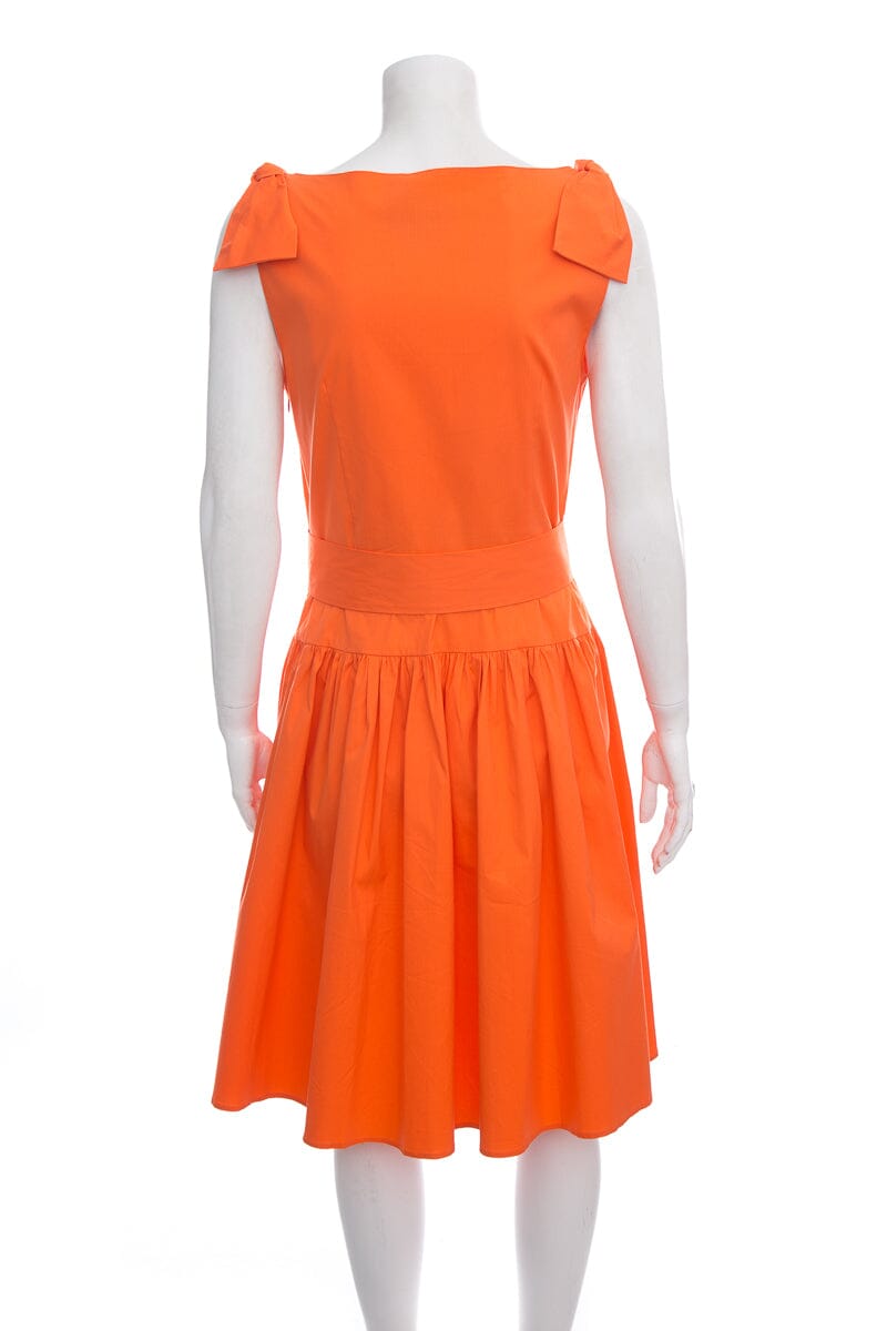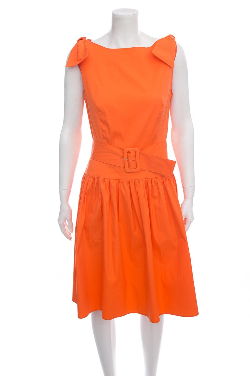 Prada Orange Cotton Midi Dress with Belt. This item is in good condition; brand tag is coming loose and some small marks are on belt.