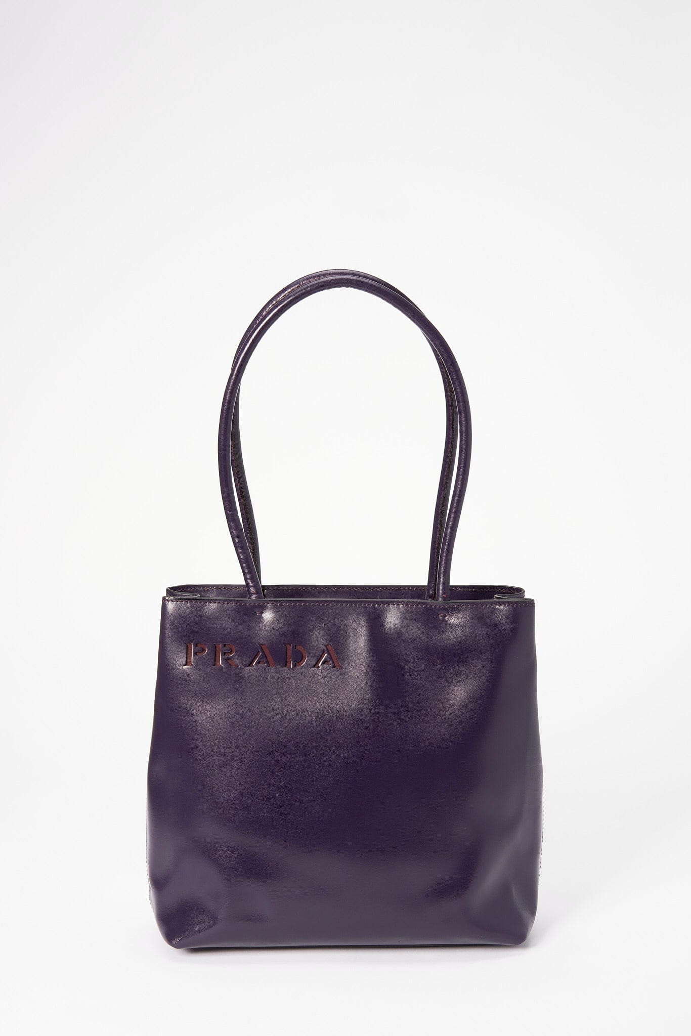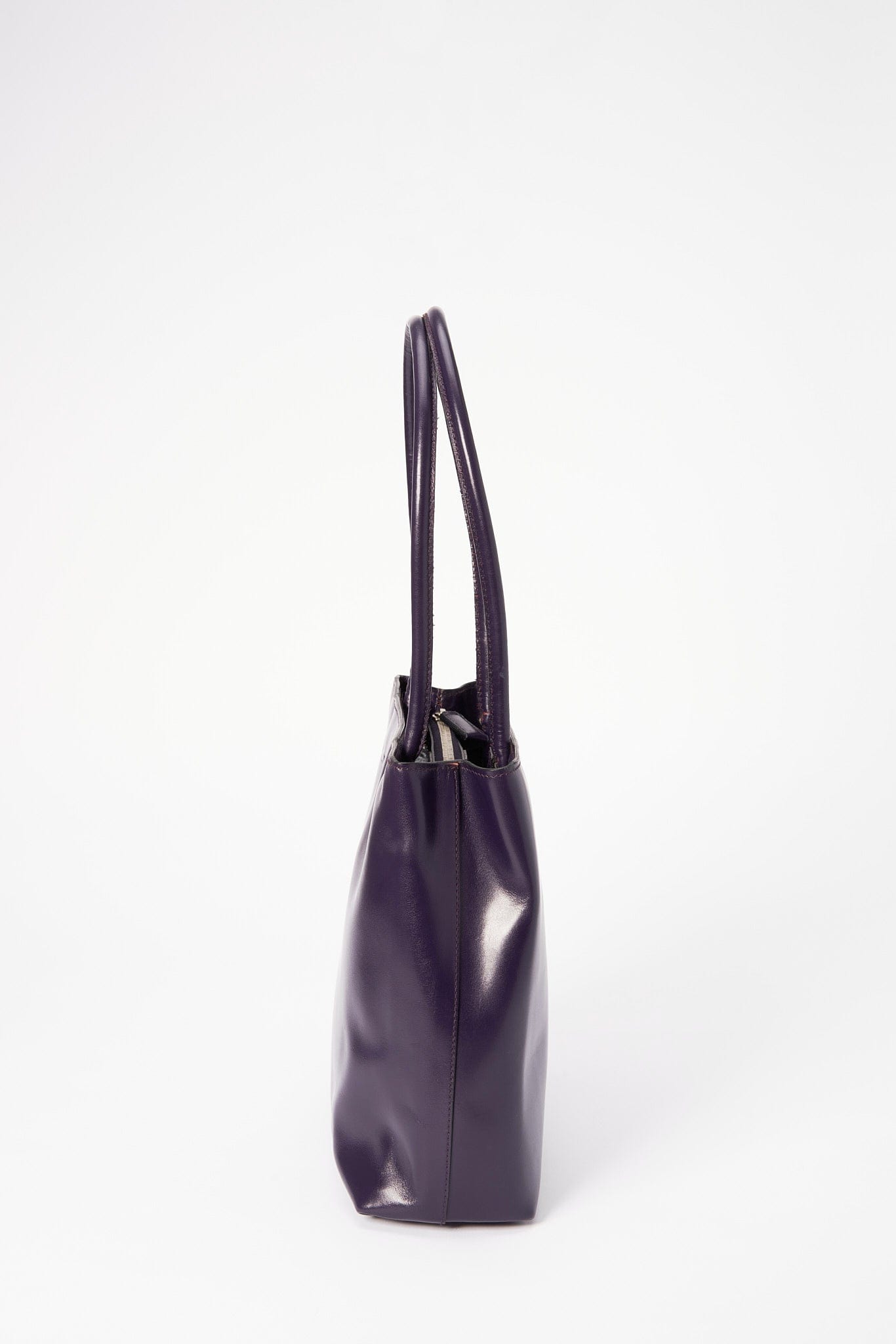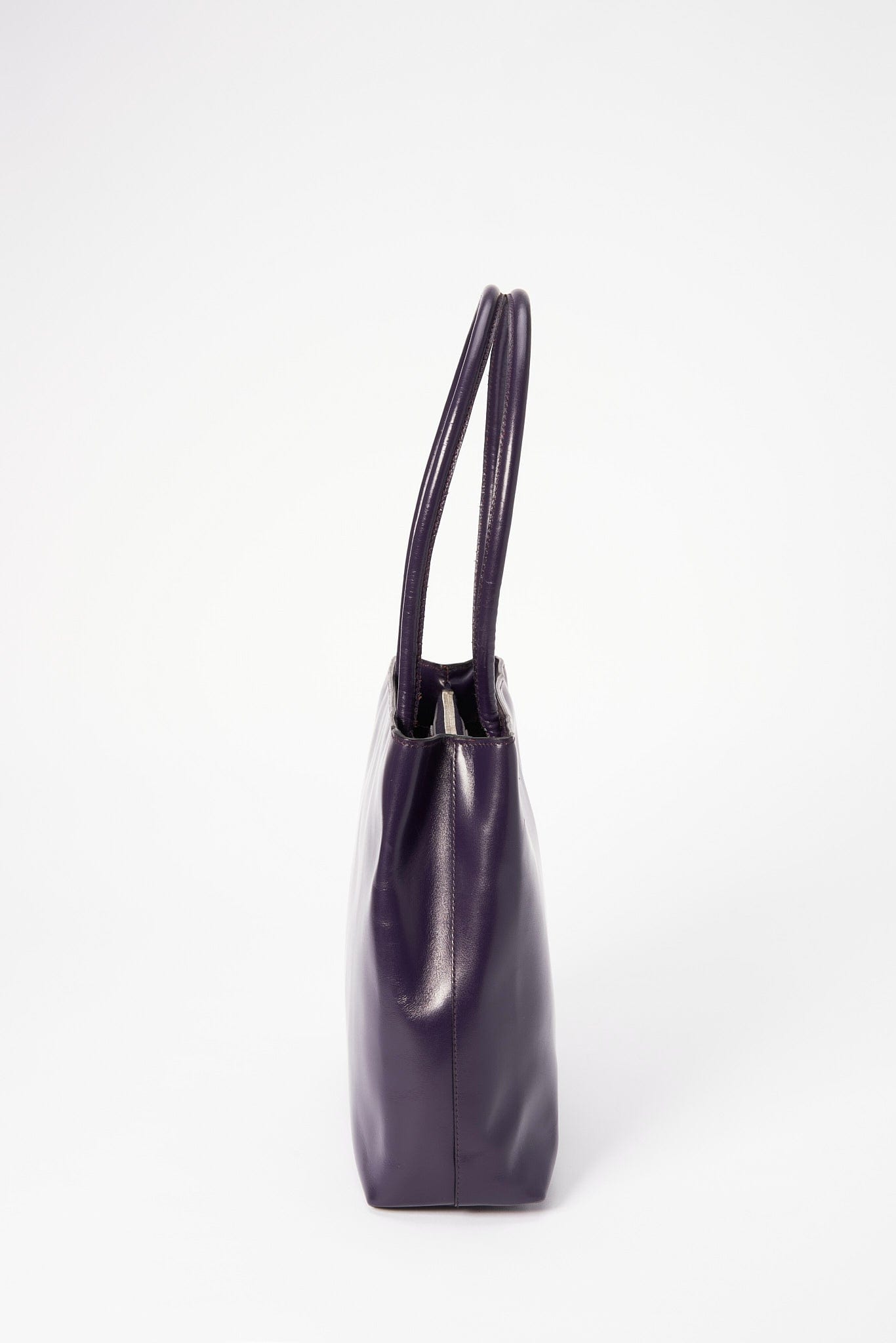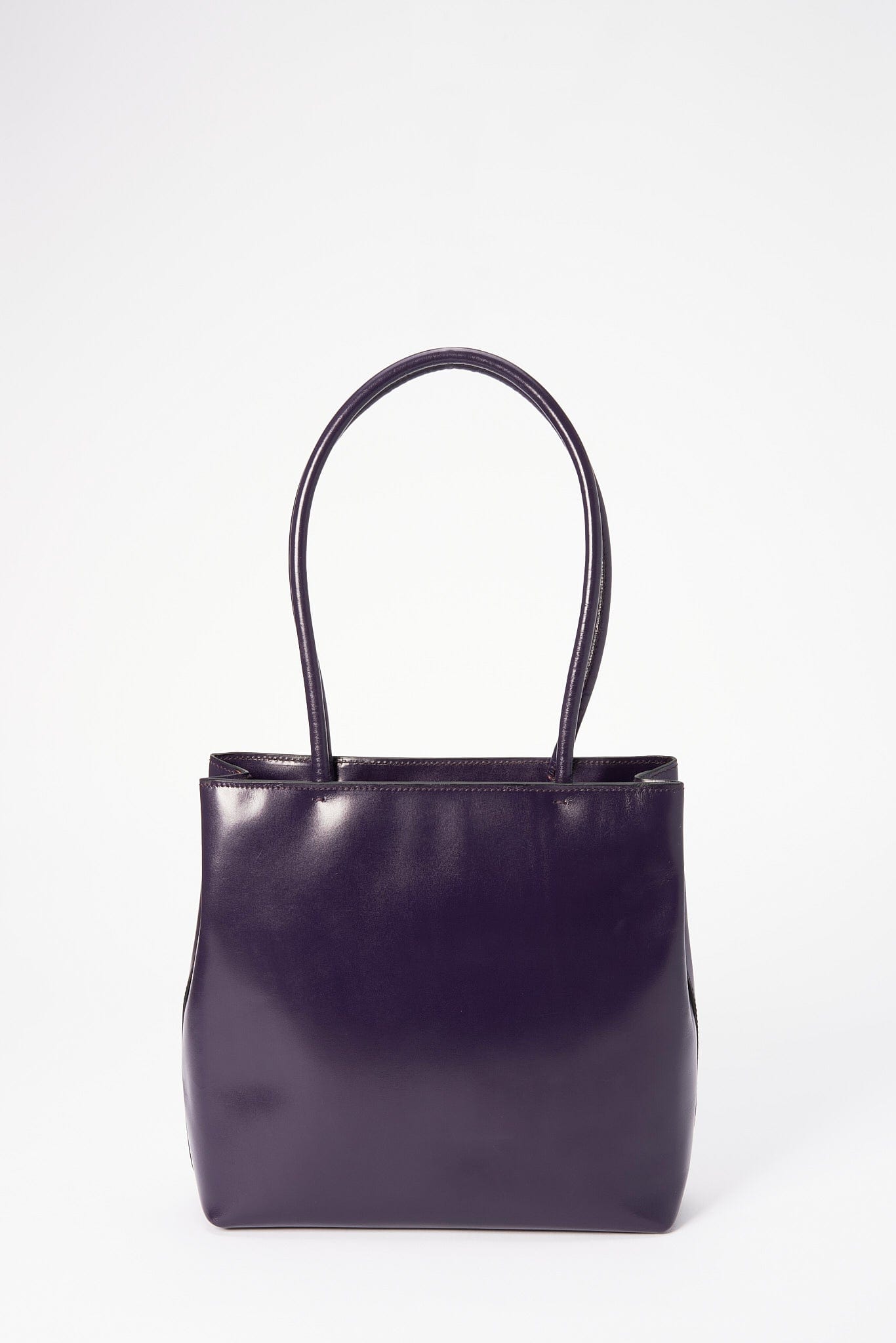 A super cool Prada 90’s tote in a high shine purple leather, this style is timeless and minimal.