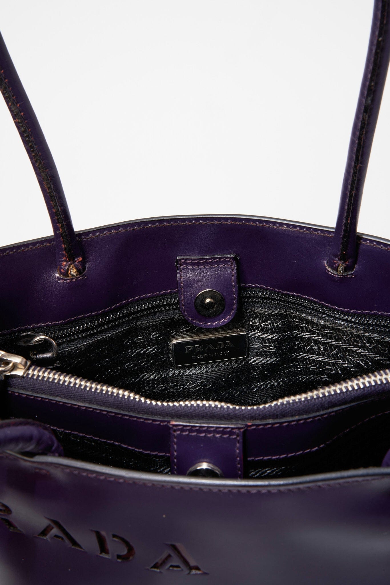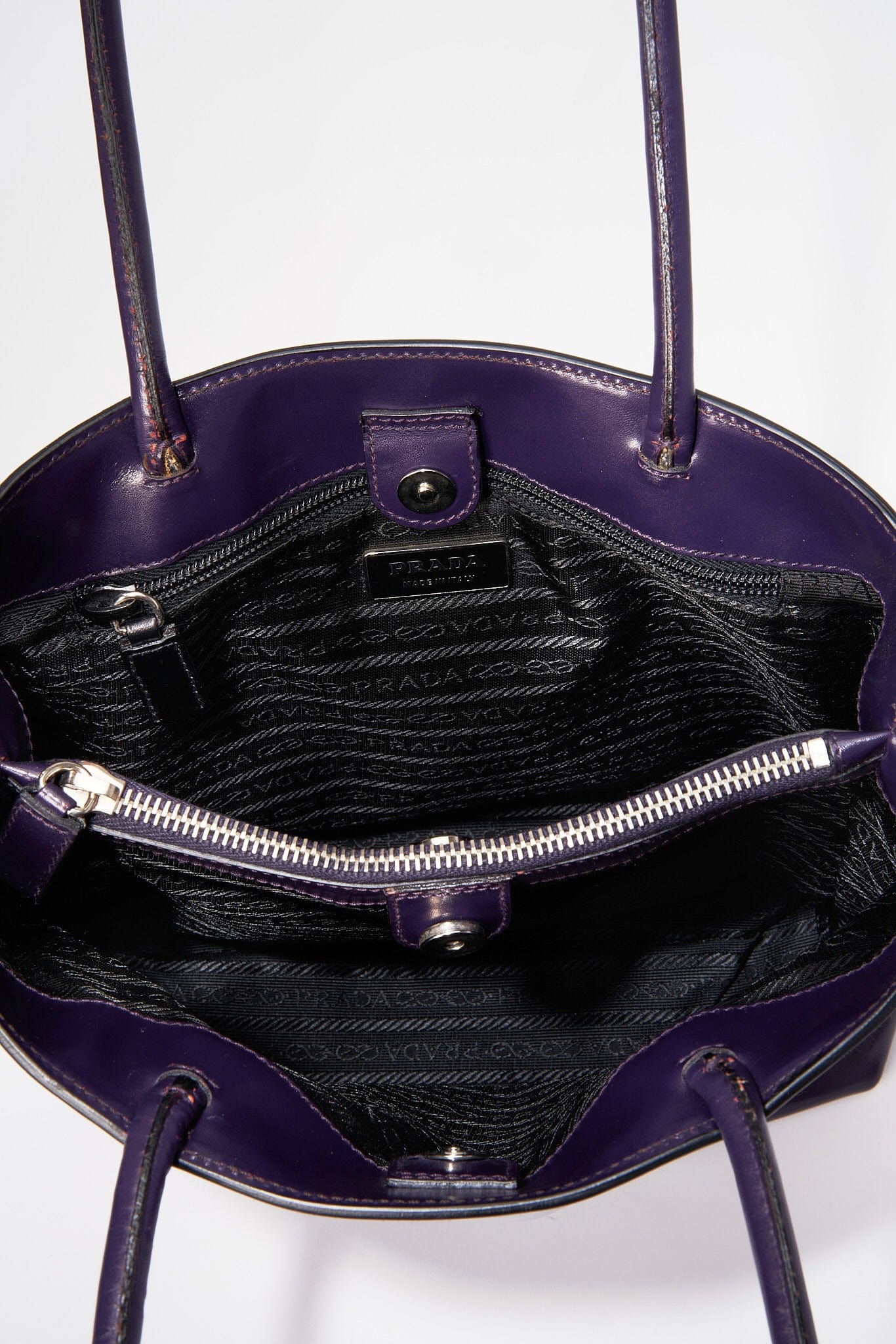 Inside there is a middle zipped compartment plus a further zipped pocket for your valuables. The bag is lined with the iconic Prada logo nylon lining.
