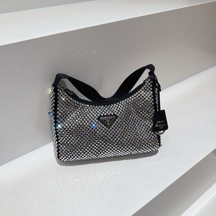 Prada Re-Edition 2000 Hobo Crystal Embellished Satin Mini